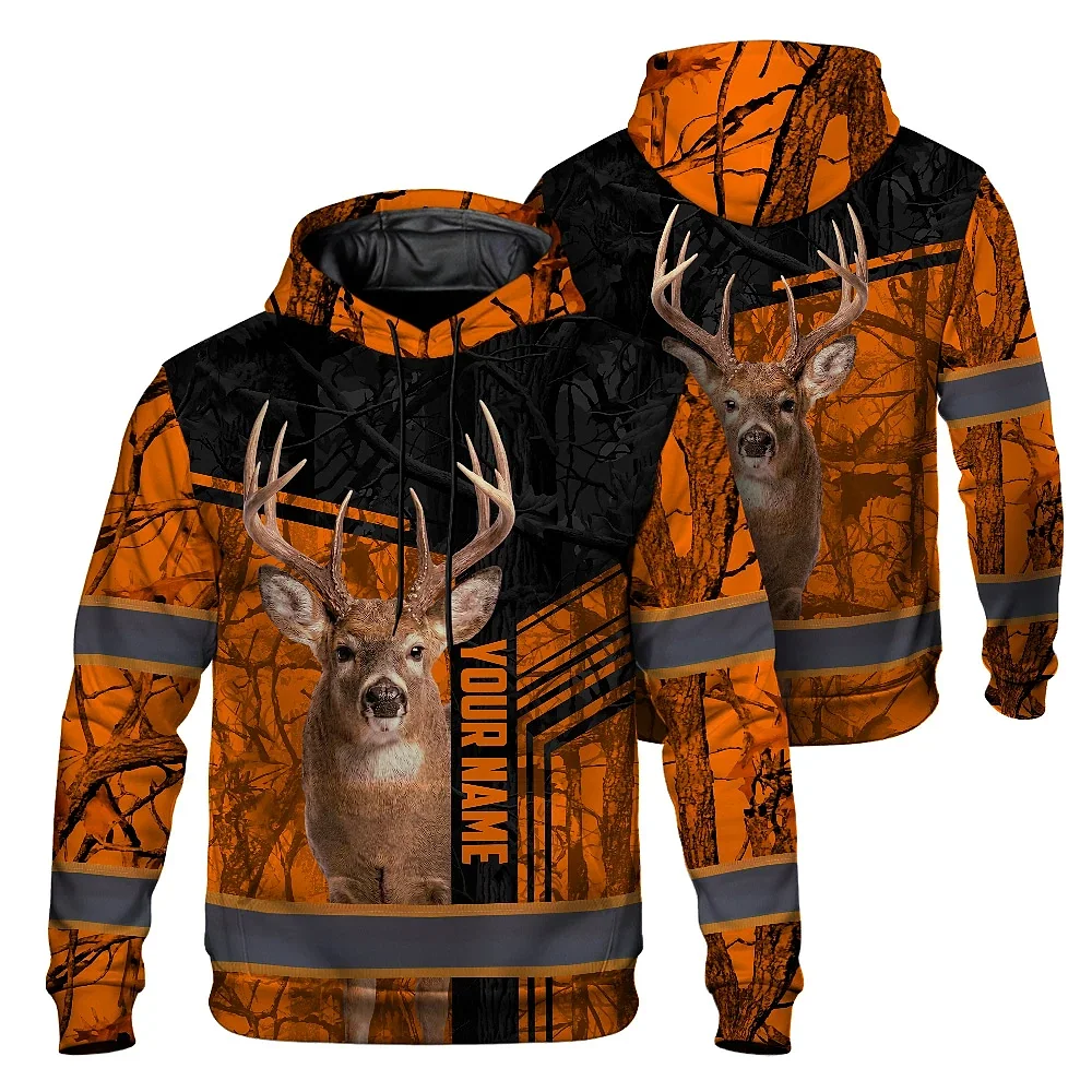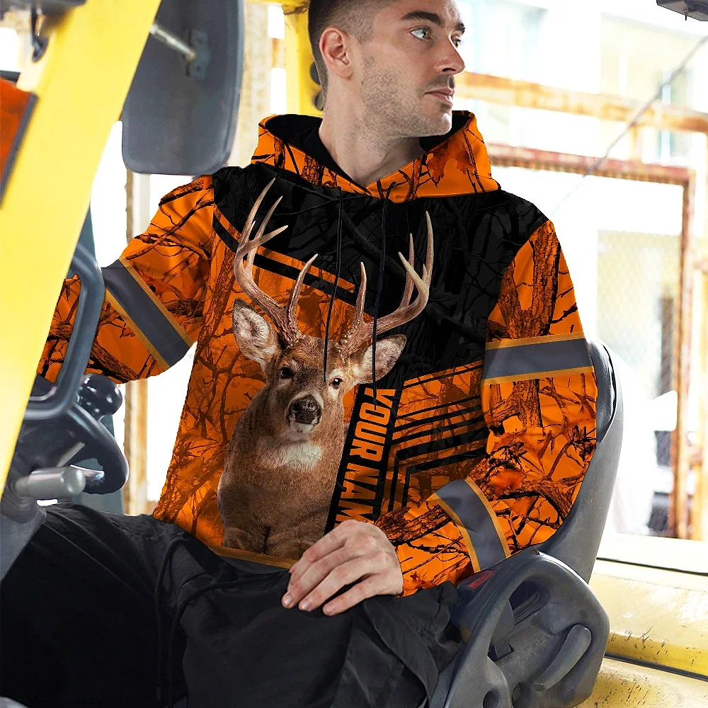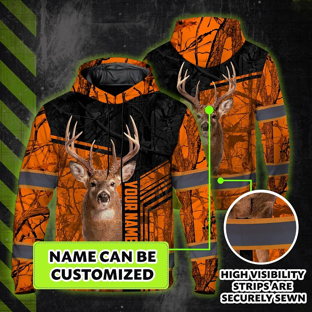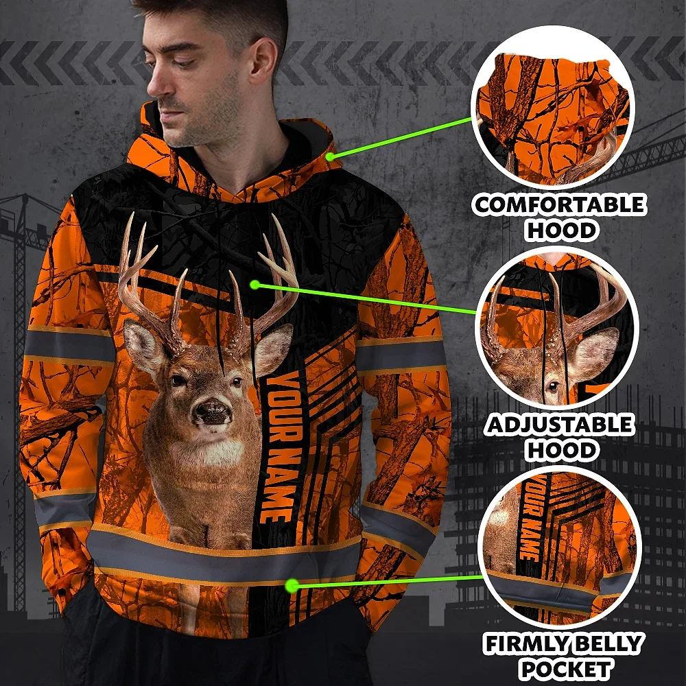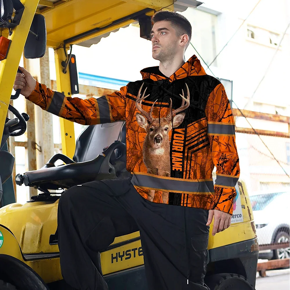 Hi Vis Hoodie Reflective Black And Orange Neon 2 Hunting Custom Name Safety Workwear For Company, Group, Team, Hunters, Hunting Lovers