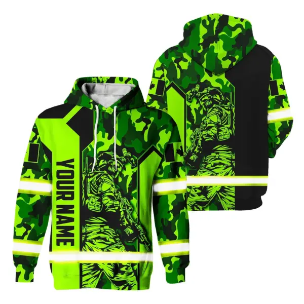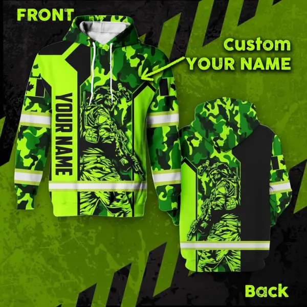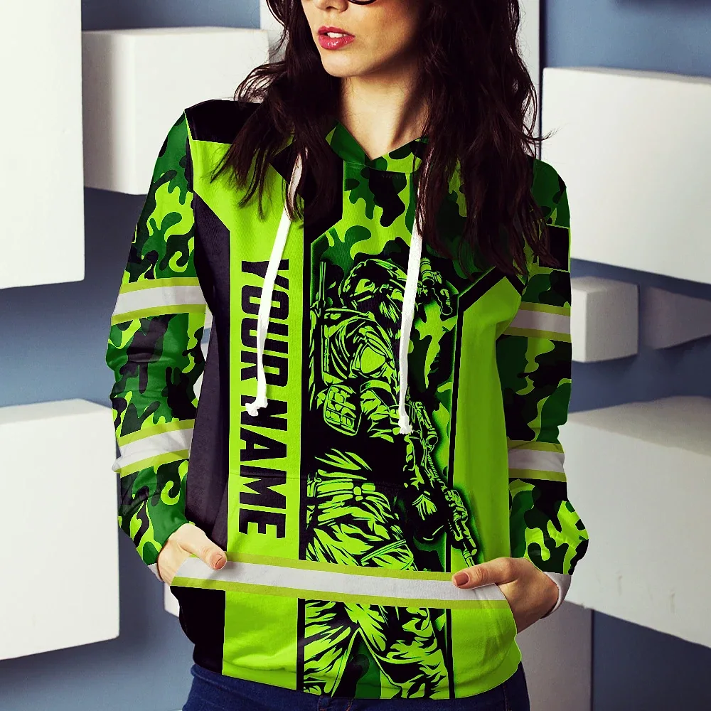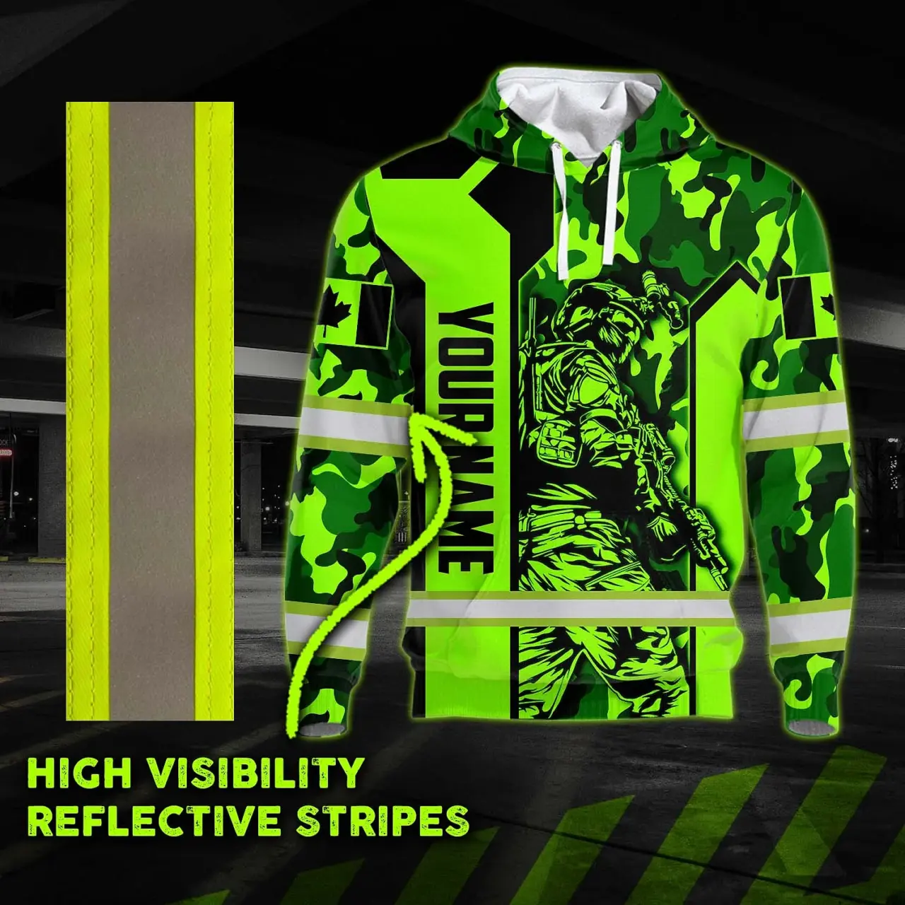 Hi Vis Hoodie Reflective Canada Flag Green Neon Veteran 2 Custom Name Safety Workwear For Worker, Operator, Patriotic