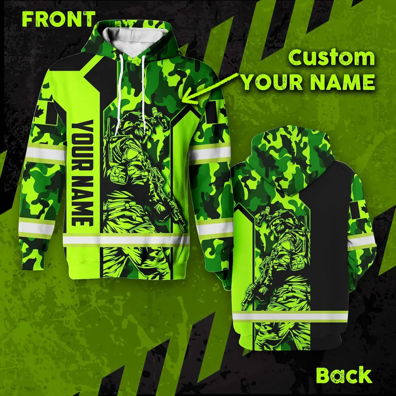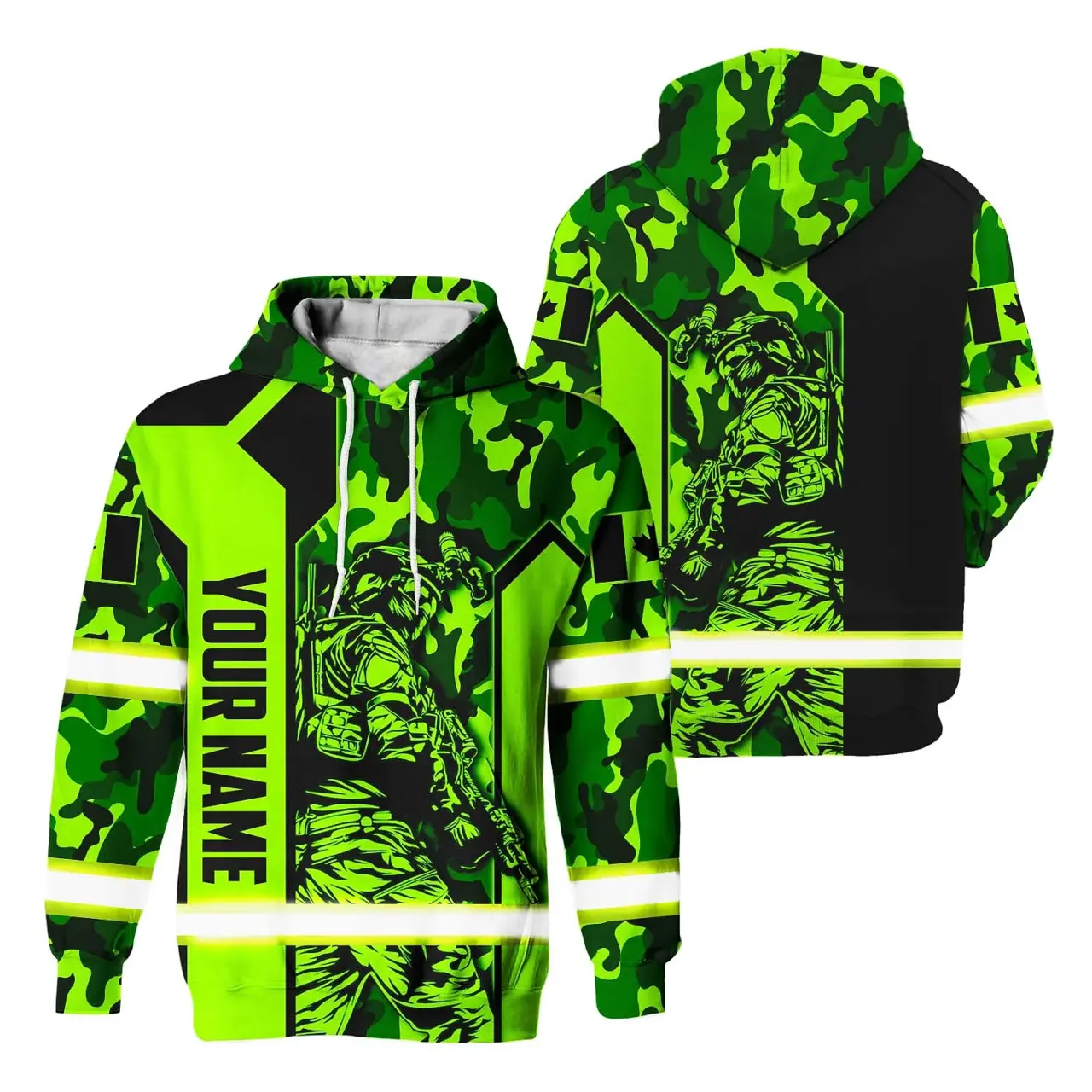 Be the first to review “Hi Vis Hoodie Reflective Canada Flag Green Neon Veteran 2 Custom Name Safety Workwear For Worker, Operator, Patriotic”