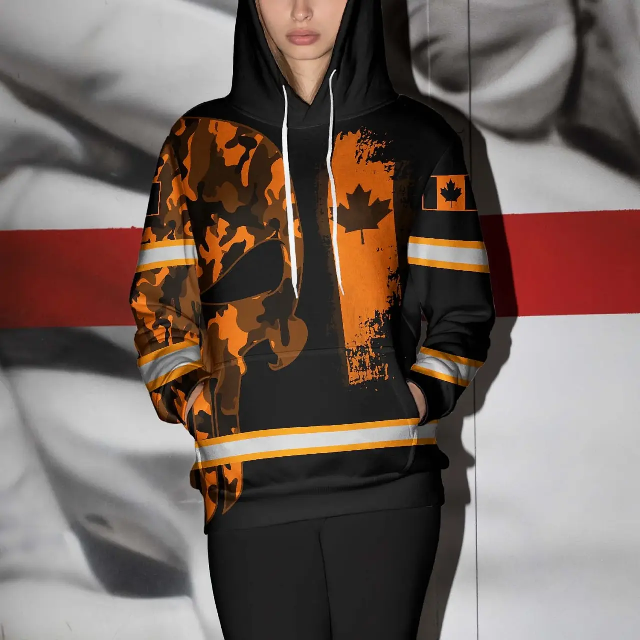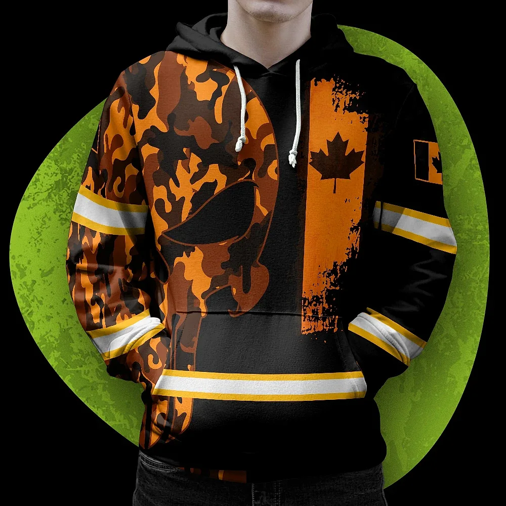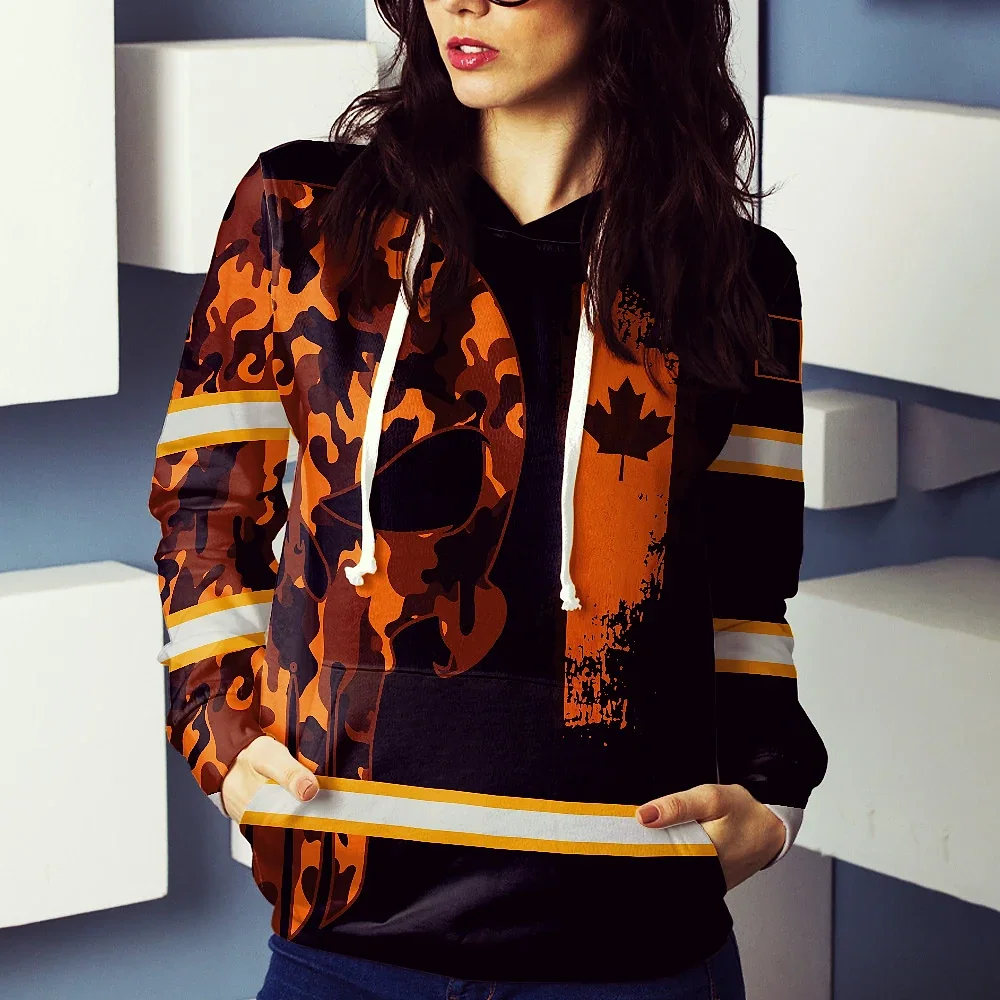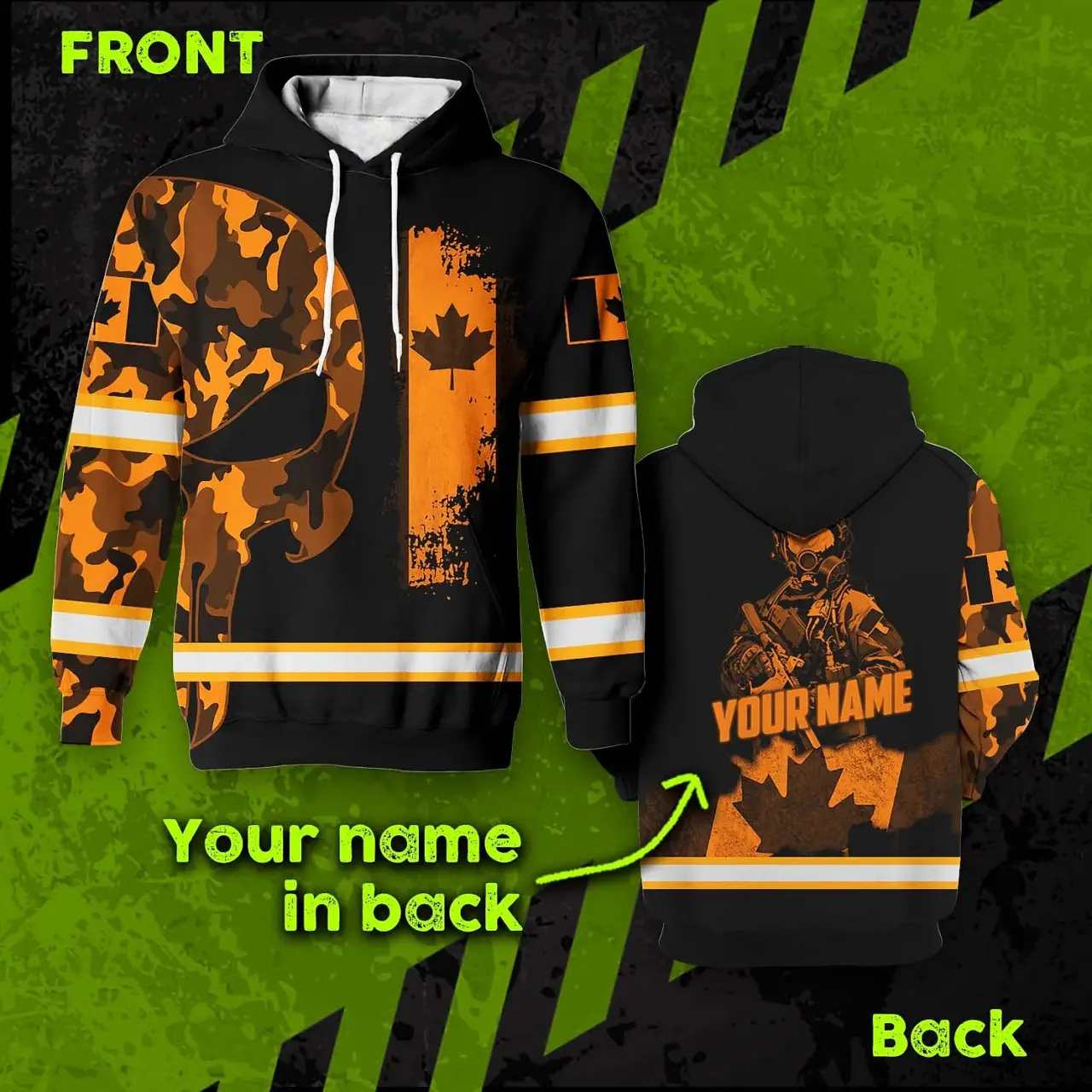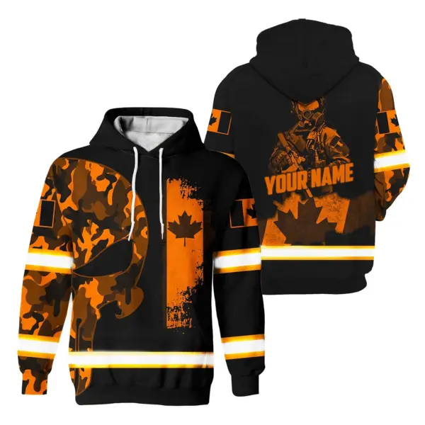 Hi Vis Hoodie Reflective Canada Flag Orange Neon Soldier Custom Name Safety Workwear For Worker, Operator, Patriotic