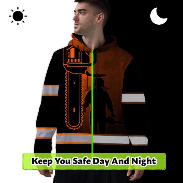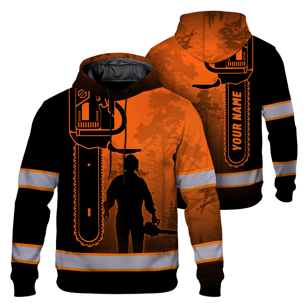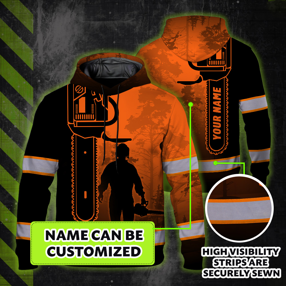 Hi Vis Hoodie Reflective Orange Chainsaw Logger Custom Name Safety Workwear For Workers, Runners