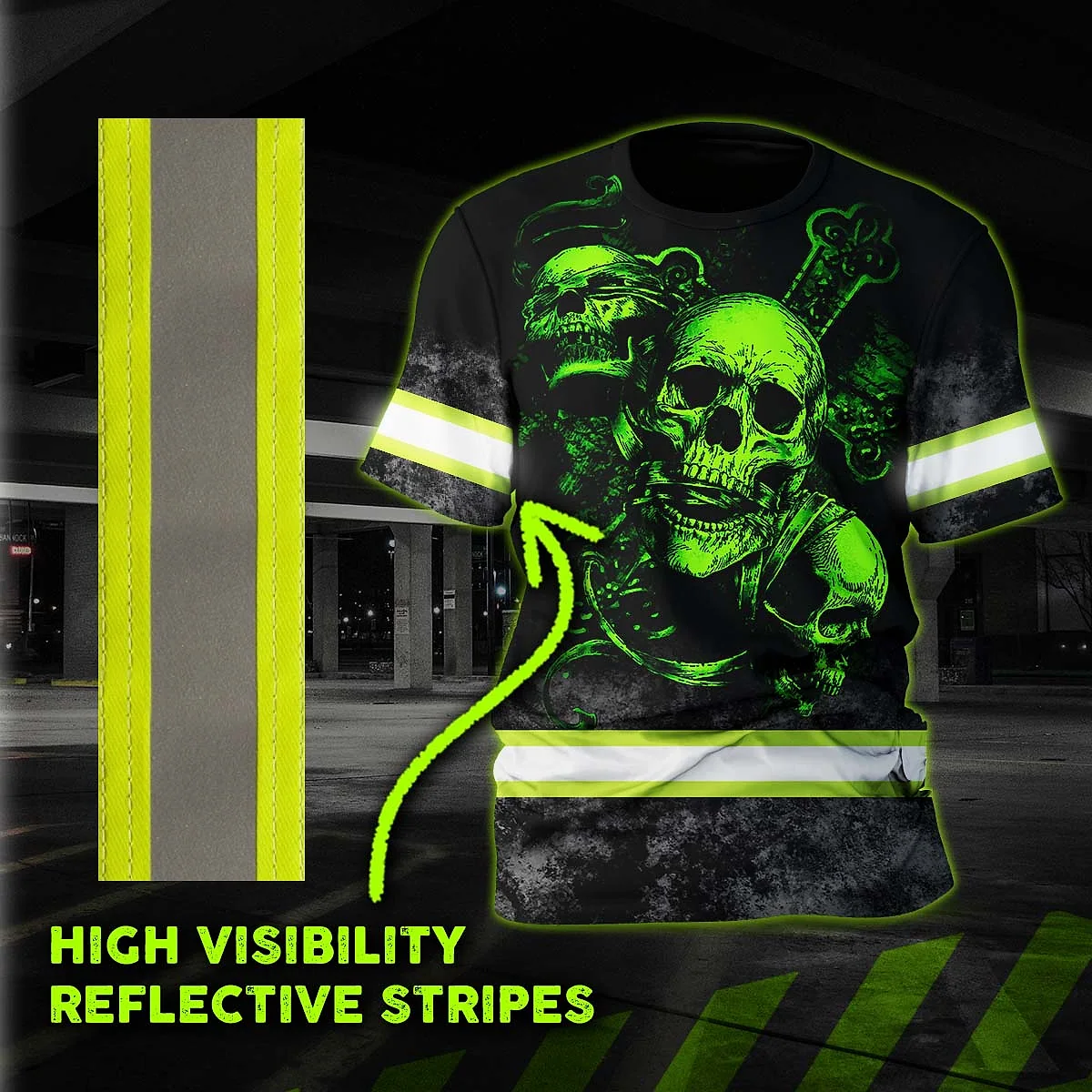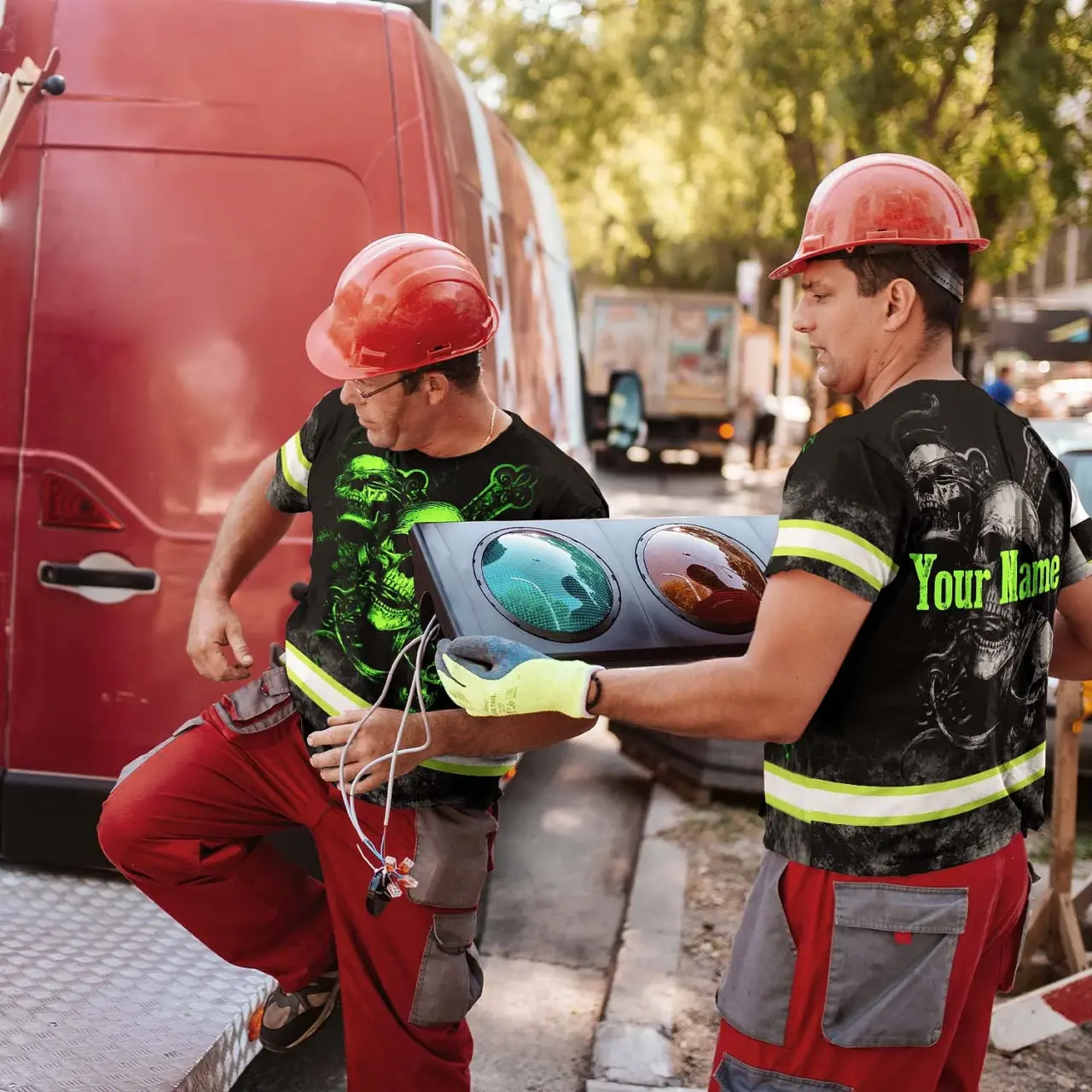 Hi Vis Hoodie Reflective Skull Custom Name Safety Workwear For Workers, Truckers, Operators