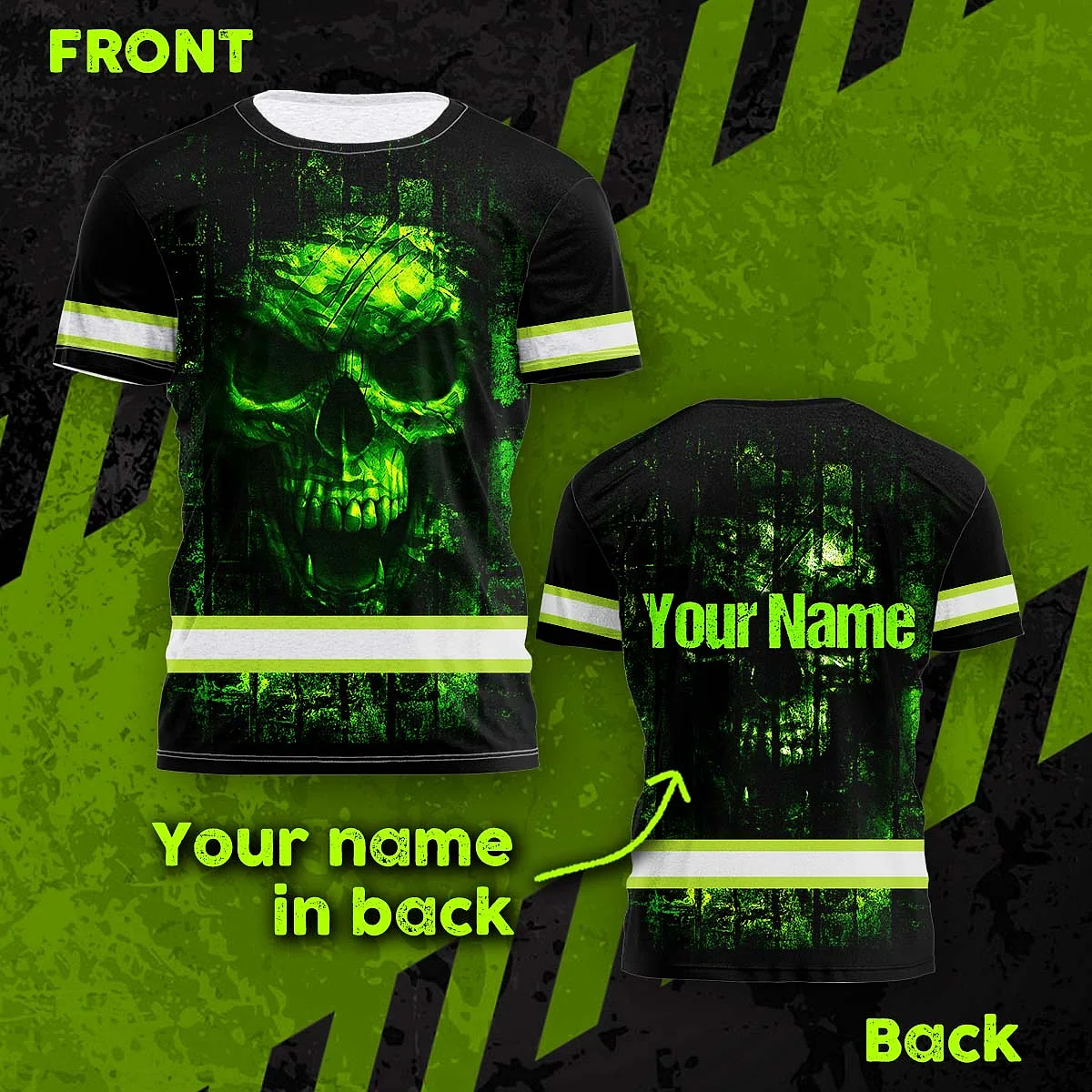 Select options This product has multiple variants. The options may be chosen on the product pageHi Vis Shirt Reflective Skull With US Flag Custom Name Safety Workwear For Skull Lover