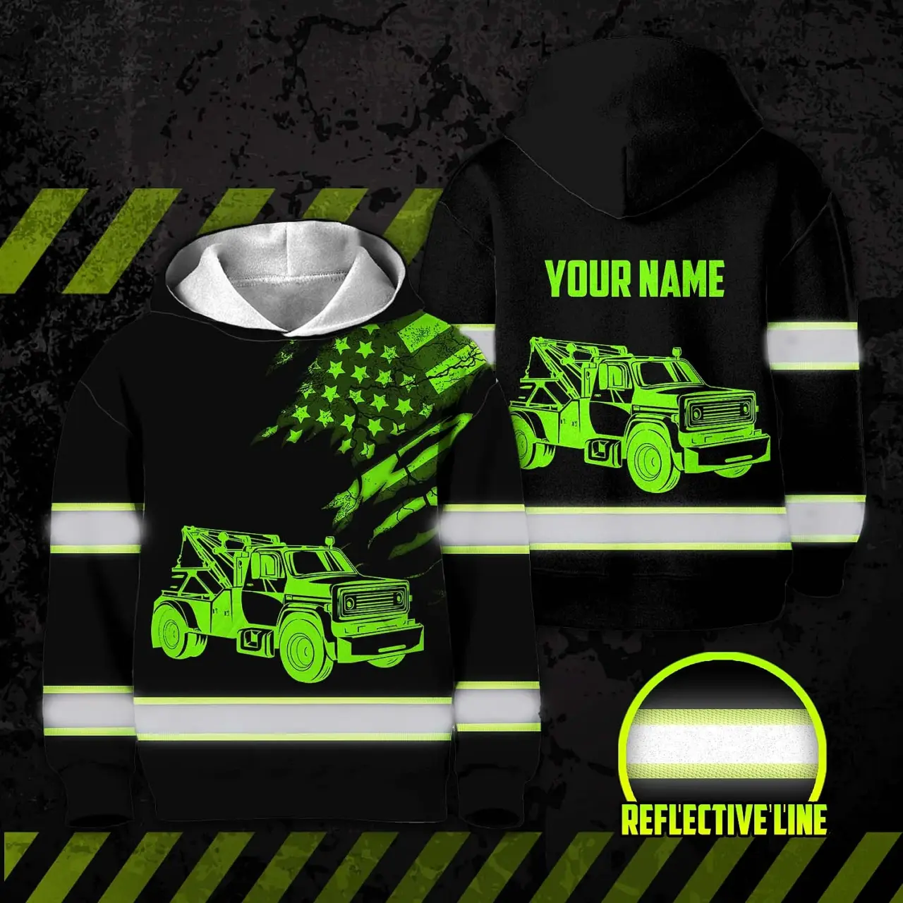 Hi Vis Hoodie Reflective Tapes Black Tow Truck Driver Custom Name For Kids