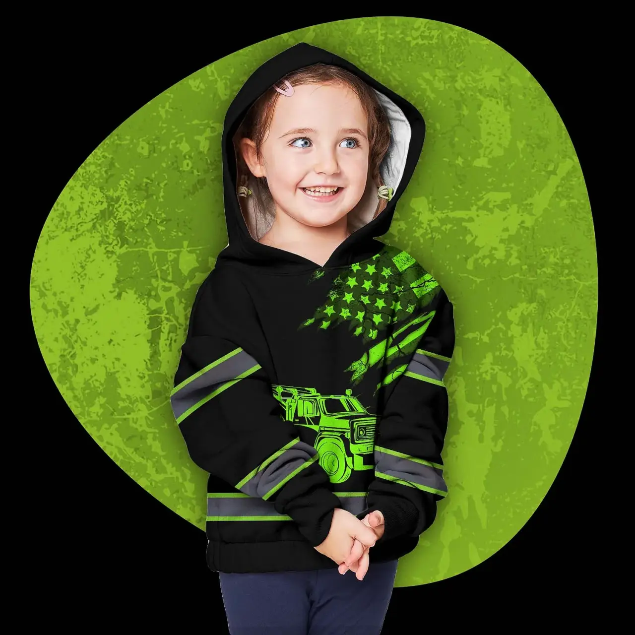 Be the first to review “Hi Vis Hoodie Reflective Tapes Black Tow Truck Driver Custom Name For Kids”