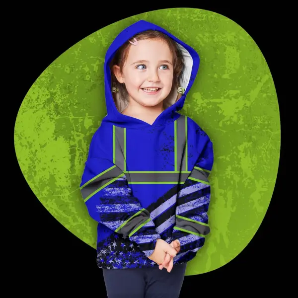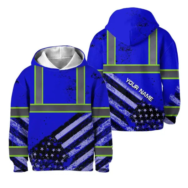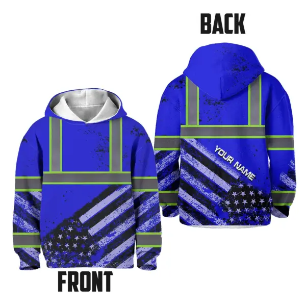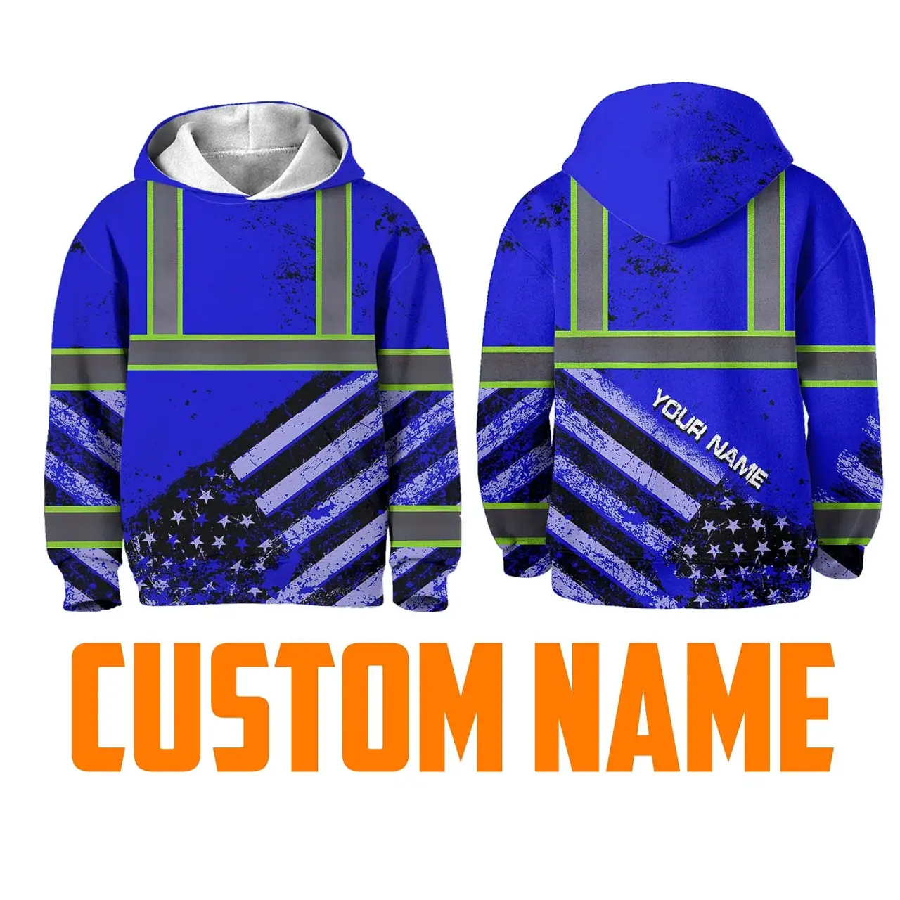 Hi Vis Hoodie Reflective Tapes Blue US Flag Paint Custom Name For Kids