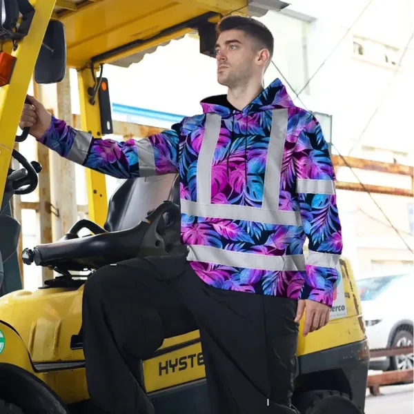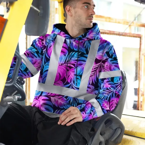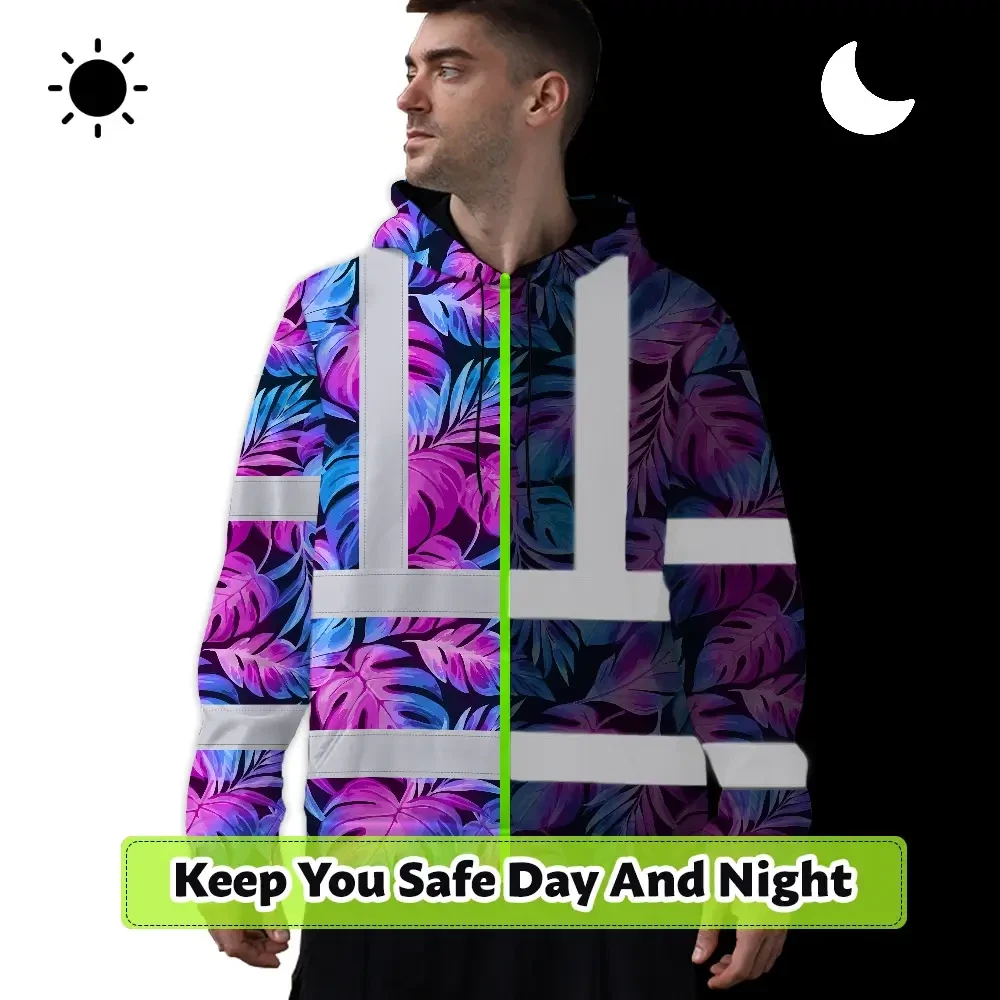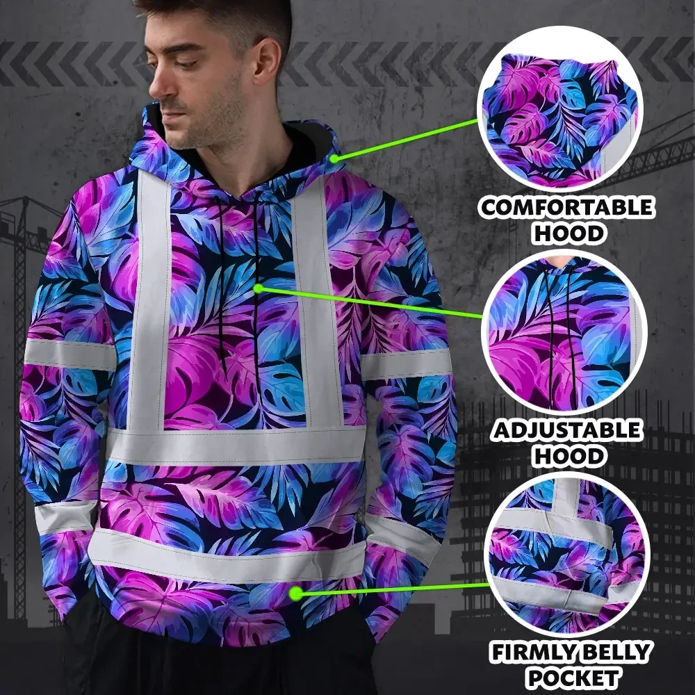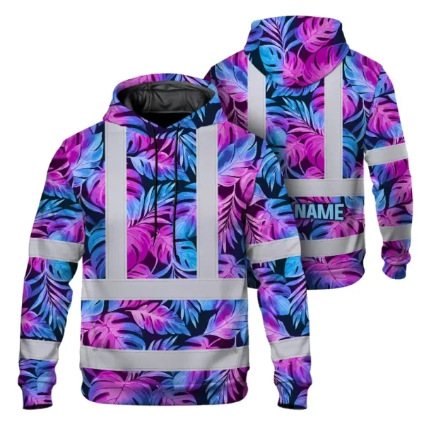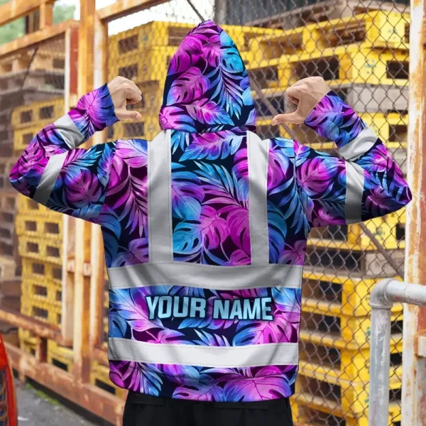 Hi Vis Hoodie Reflective Tapes Gradient Blue Violet Custom Name Safety Workwear For Workers, Truckers, Operators