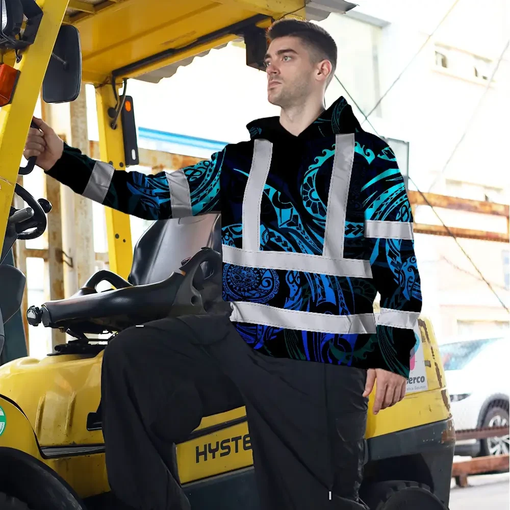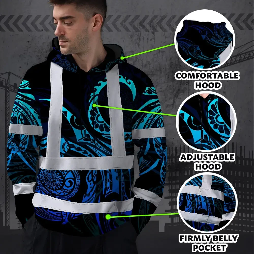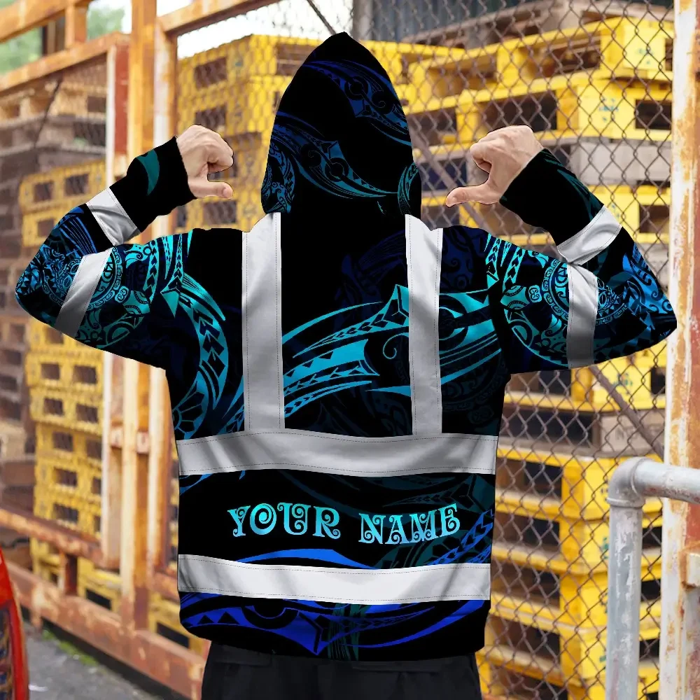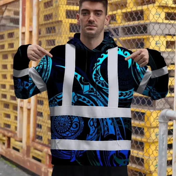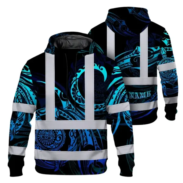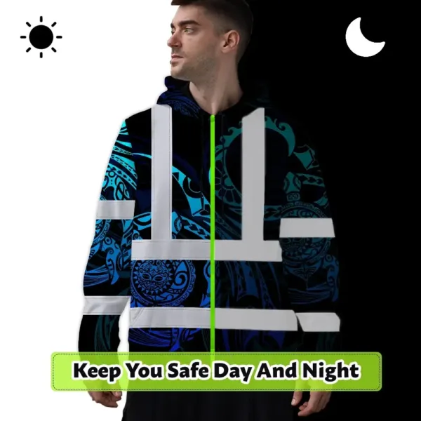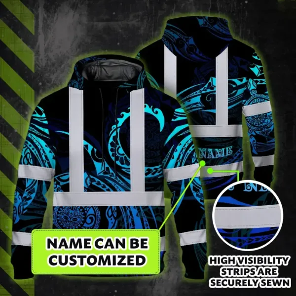 Hi Vis Hoodie Reflective Tapes Gradient Turtle Hawaiian Polynesian Tribal Custom Name Safety Workwear For Workers, Truckers, Operators