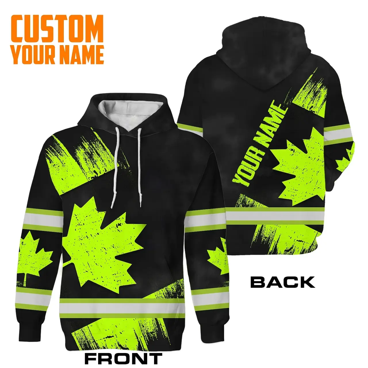 Be the first to review “Hi Vis Hoodie Reflective Tapes Green Black Canada Flag Custom Name Safety Workwear For Worker, Operator, Patriotic”