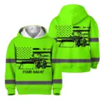 Hi Vis Hoodie Reflective Tapes Green Gradient Semi Truck Driver Custom Name For Kids