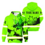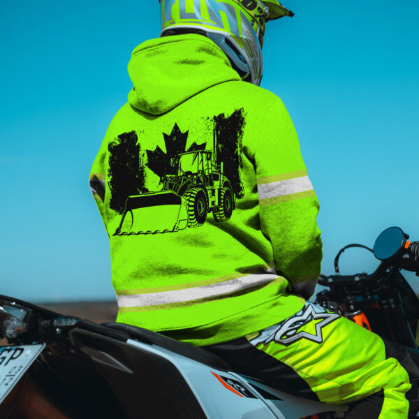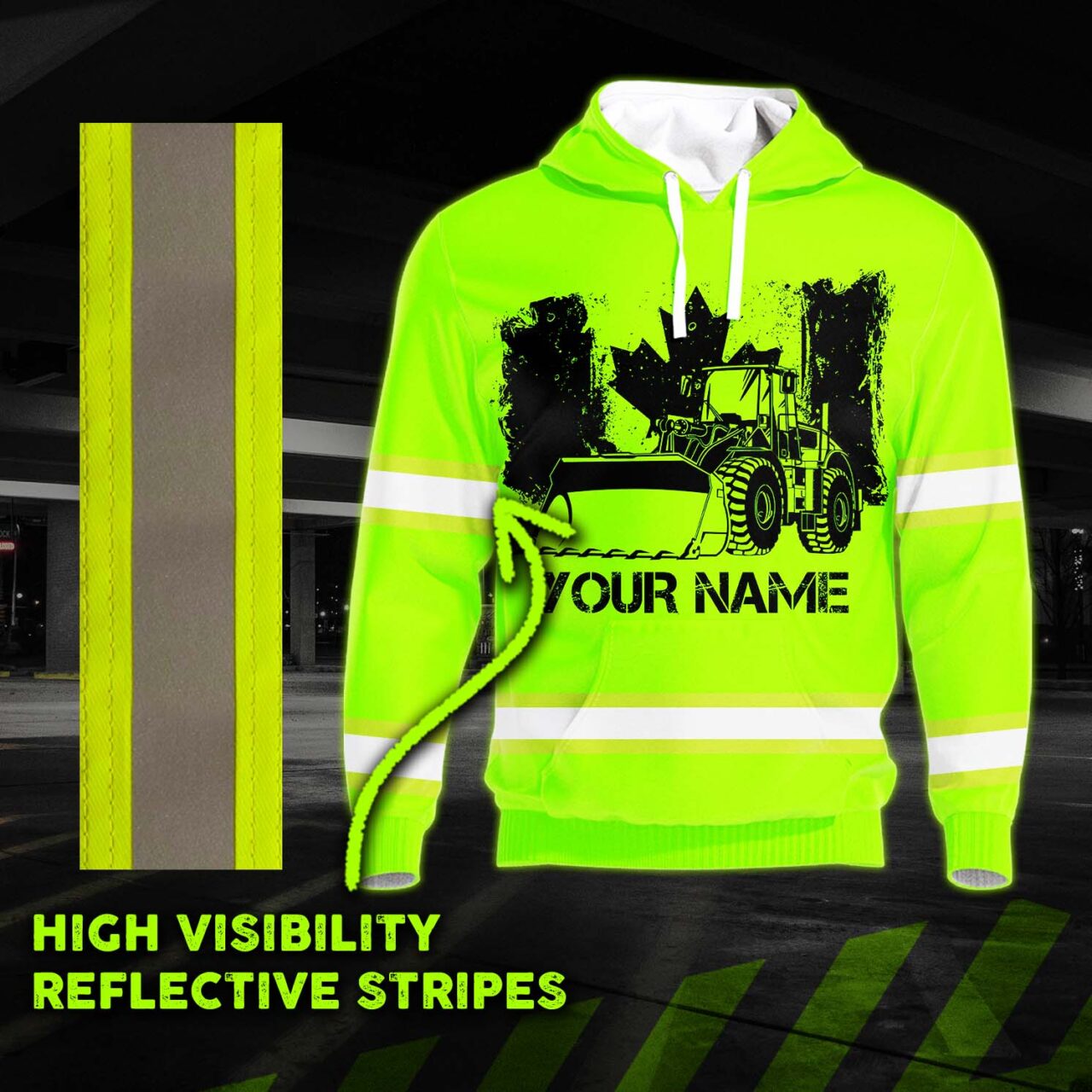 Hi Vis Hoodie Reflective Tapes Green Loader Operator Canada Flag Custom Name Safety Workwear For Operators, Workers, Runners, Cyclists