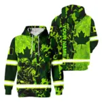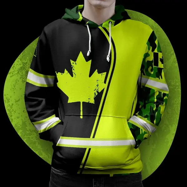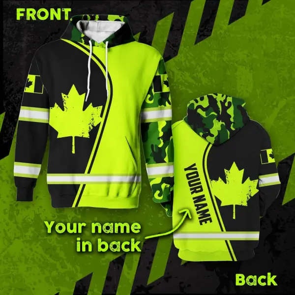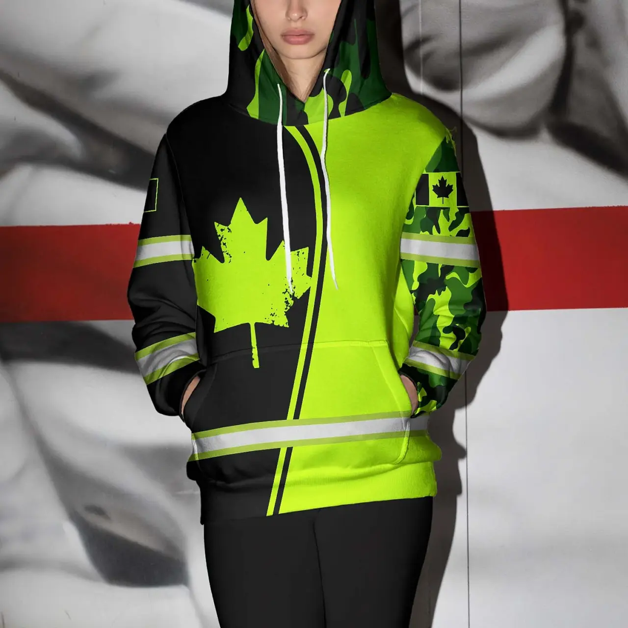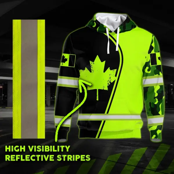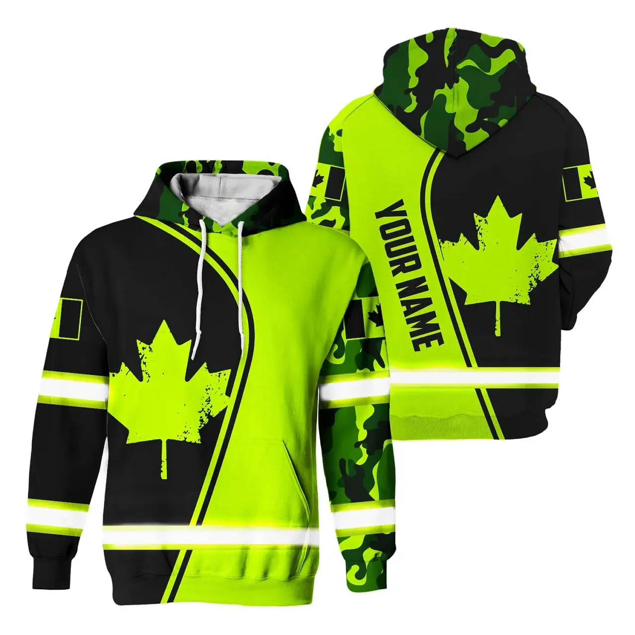 Hi Vis Hoodie Reflective Tapes Green Neon Canada Flag Camo Construction Custom Name Safety Workwear For Worker, Operator, Patriotic