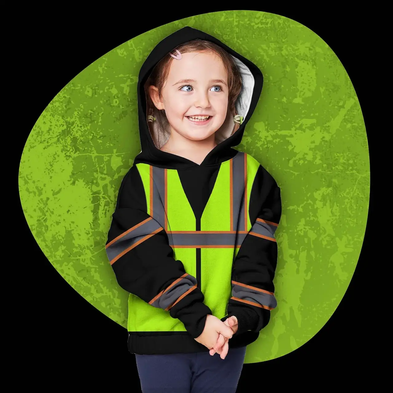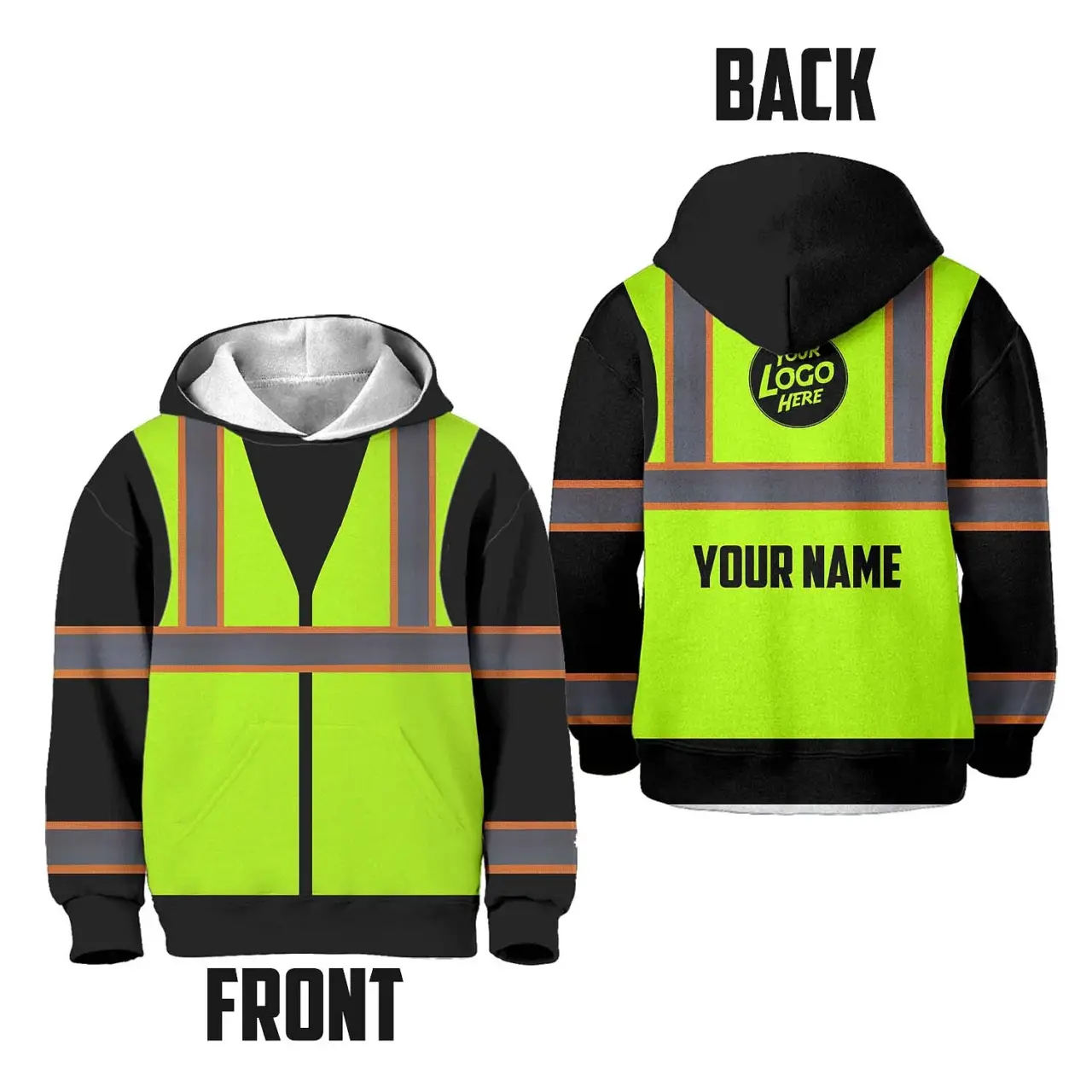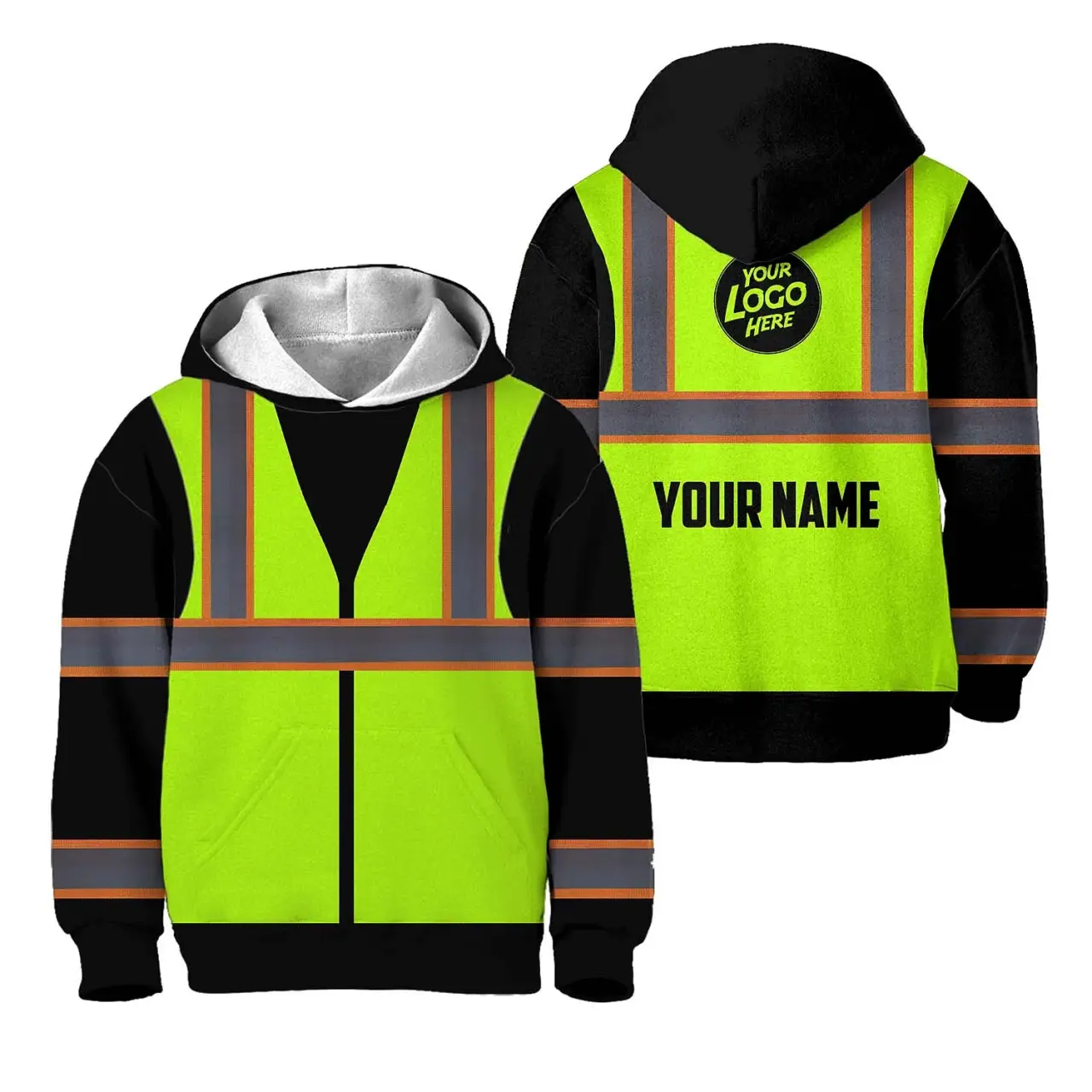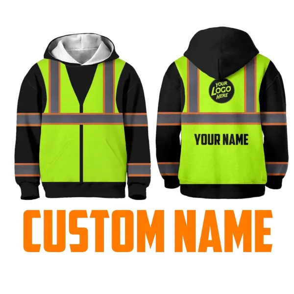 Hi Vis Hoodie Reflective Tapes Green Neon Custom Name For Kids