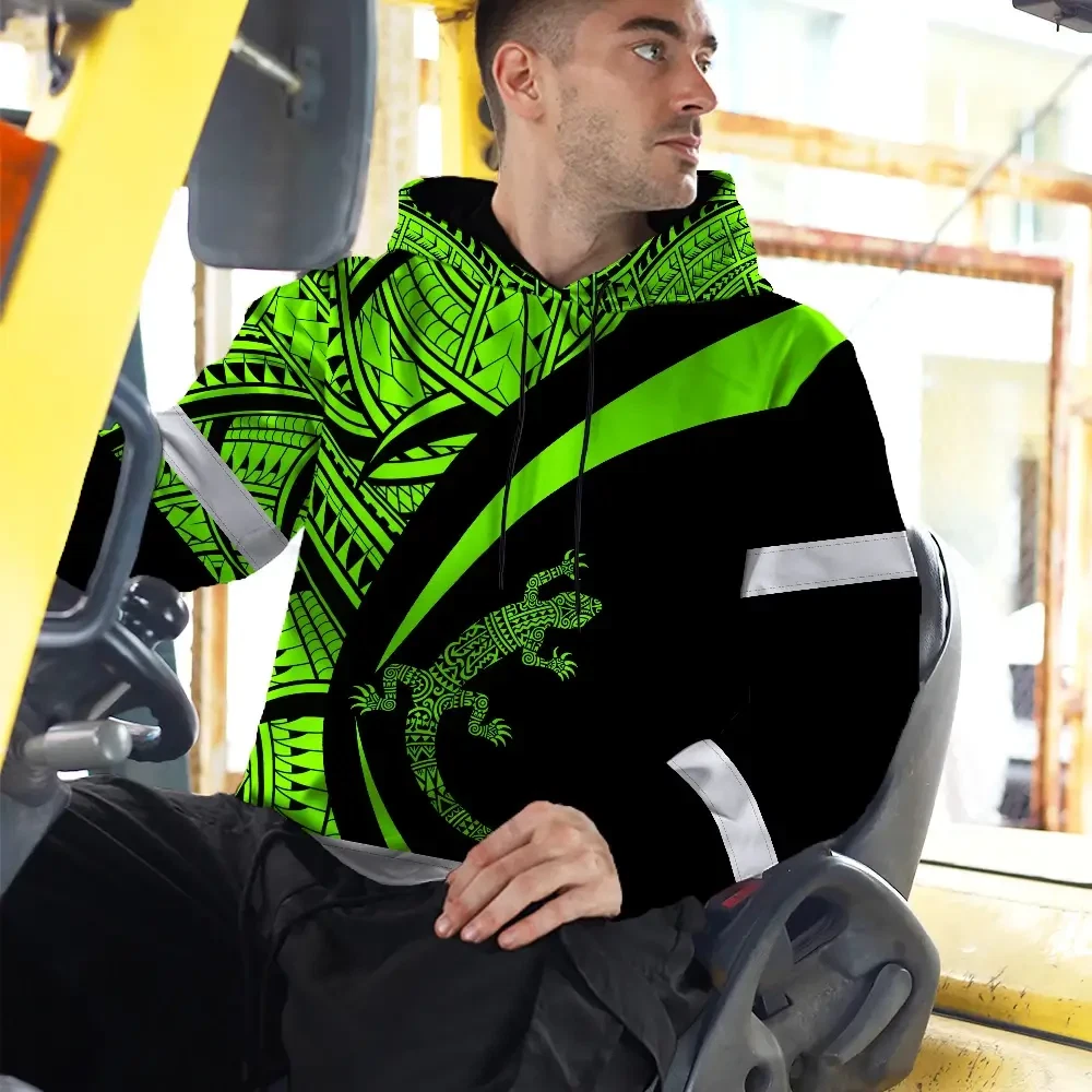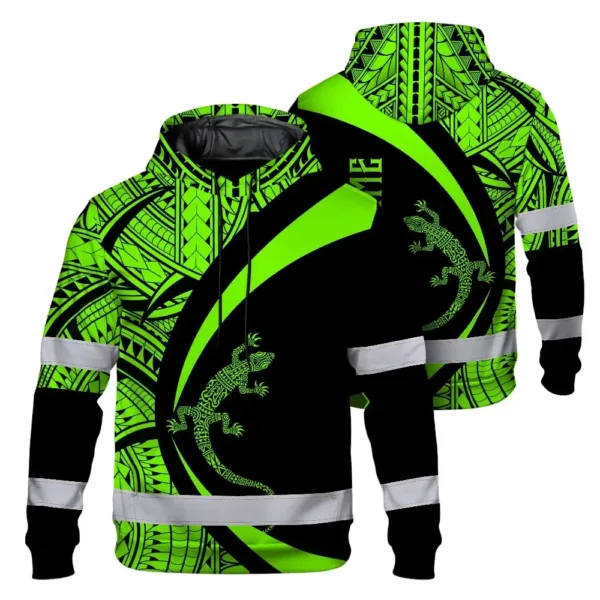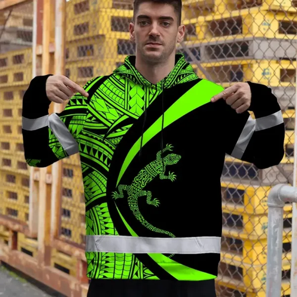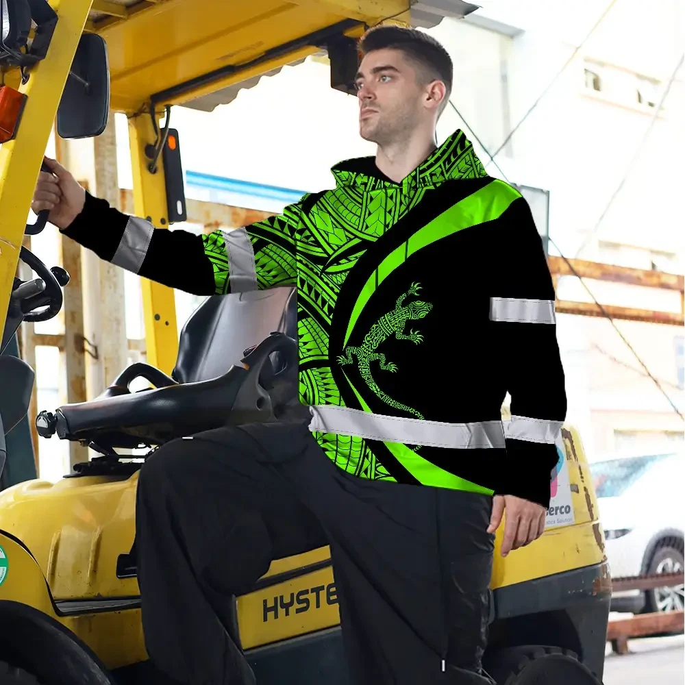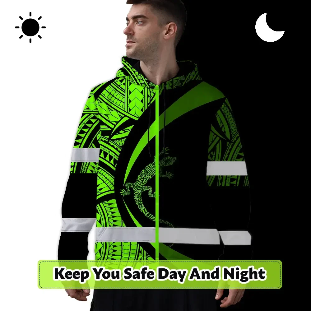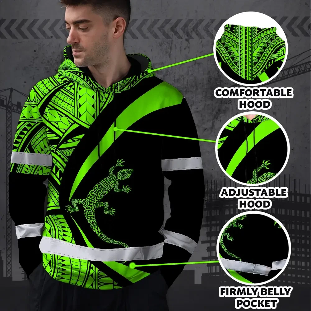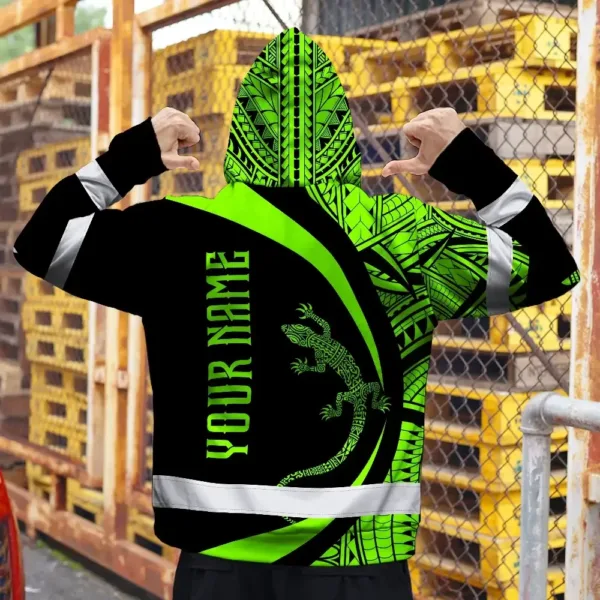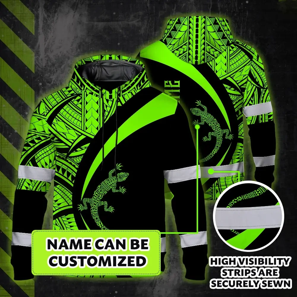 Hi Vis Hoodie Reflective Tapes Green Neon Hawaii Custom Name Safety Workwear For Workers, Truckers, Operators
