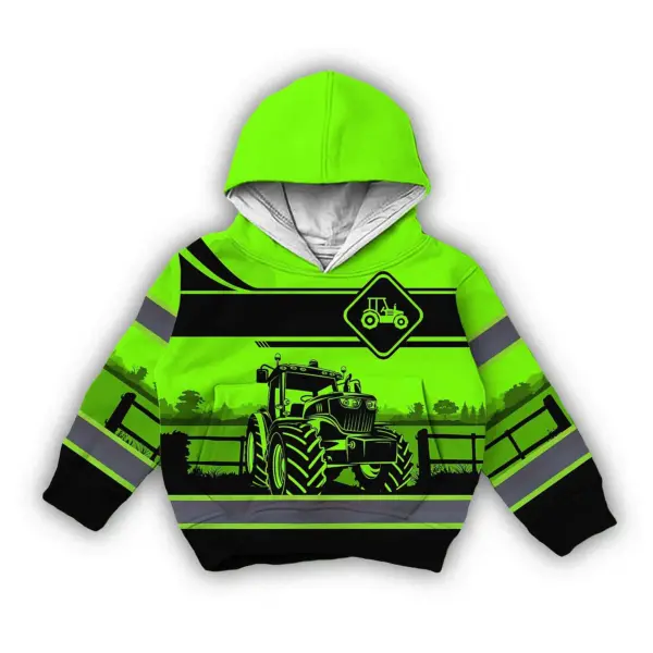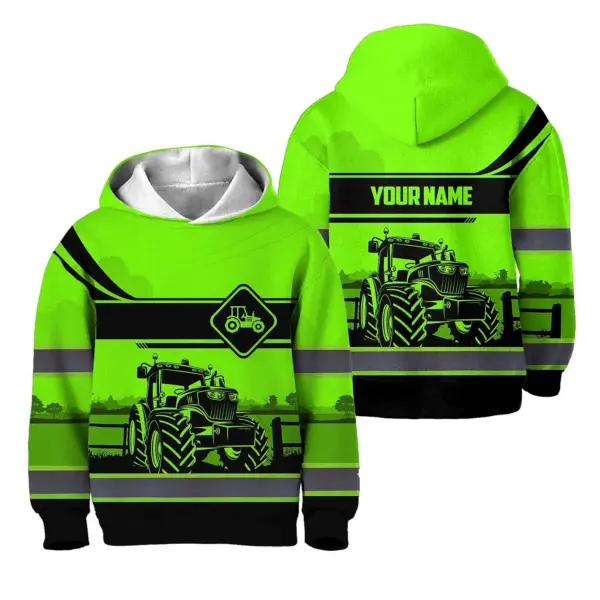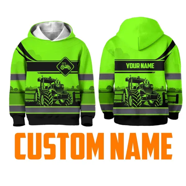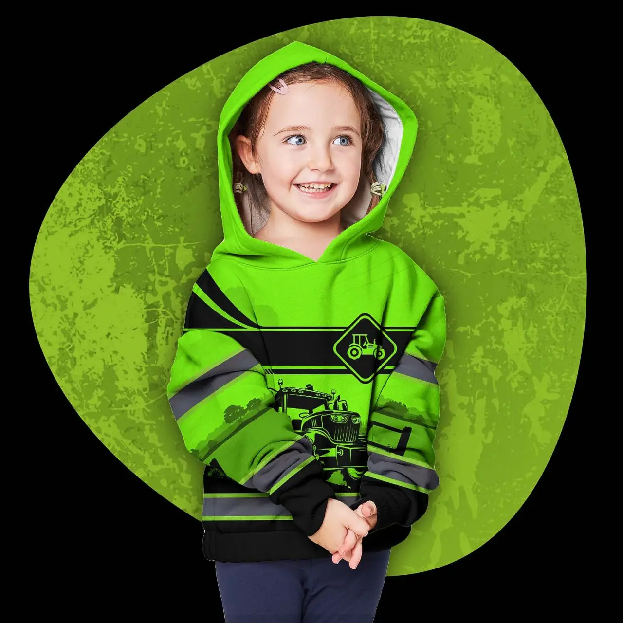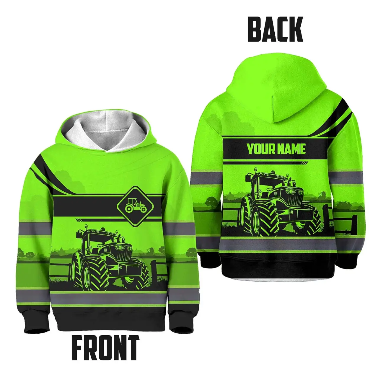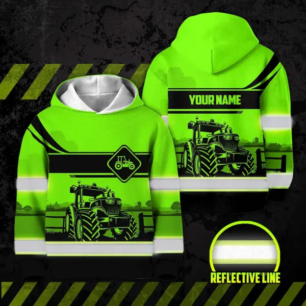 Hi Vis Hoodie Reflective Tapes Green Neon Tractor On The Farm Custom Name For Kids