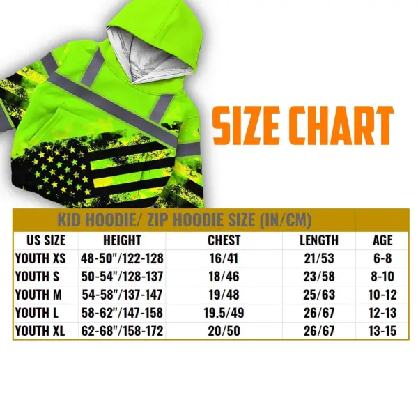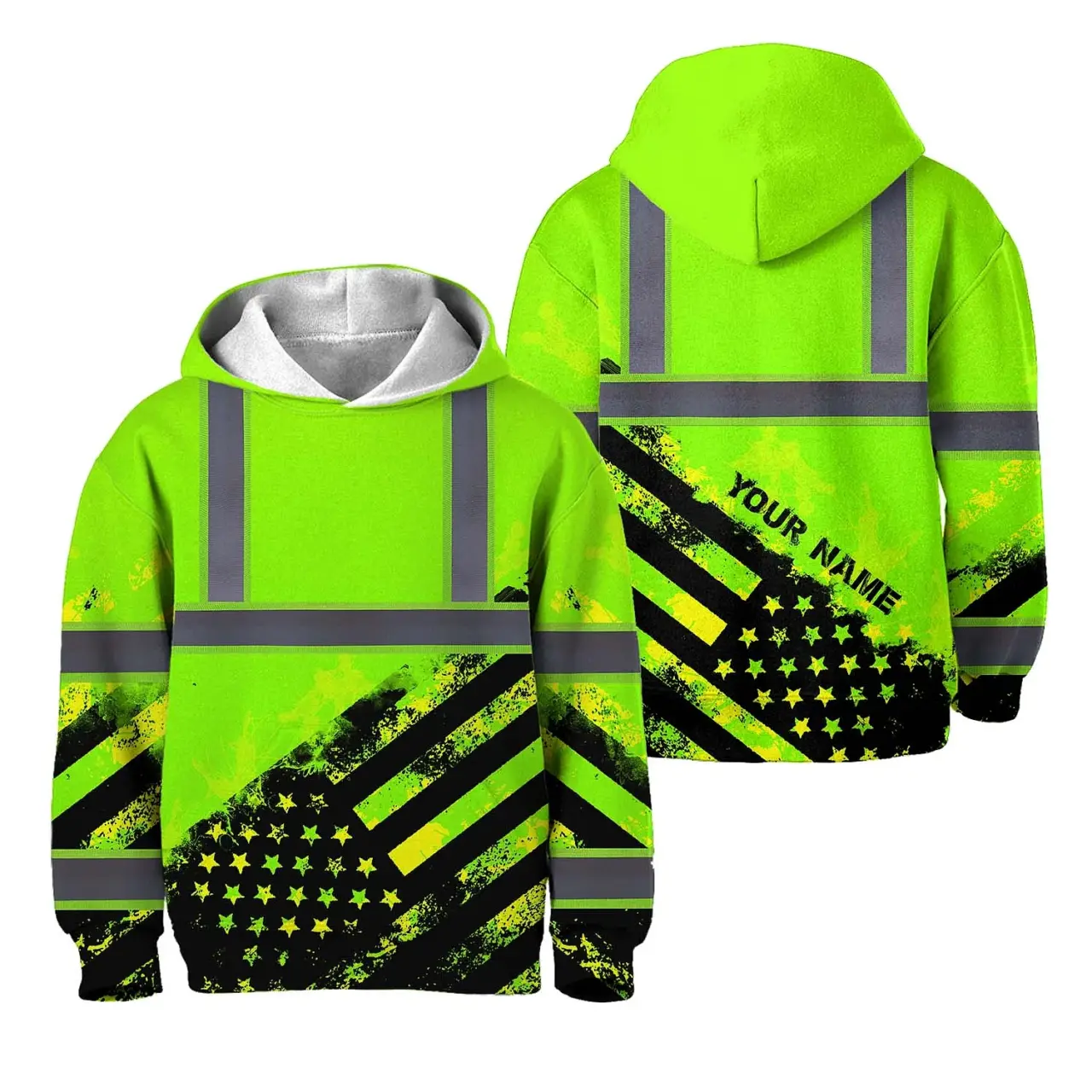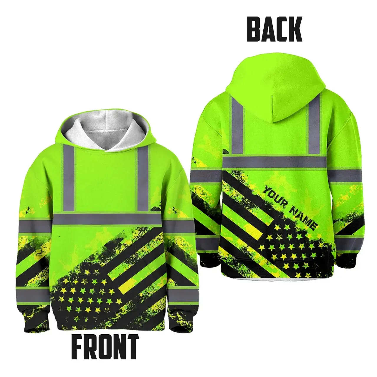 Hi Vis Hoodie Reflective Tapes Green US Flag Custom Name For Kids