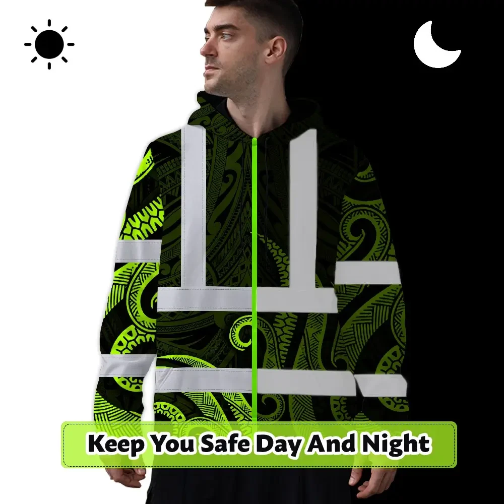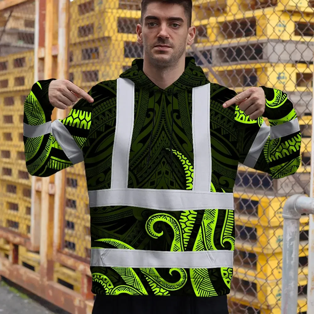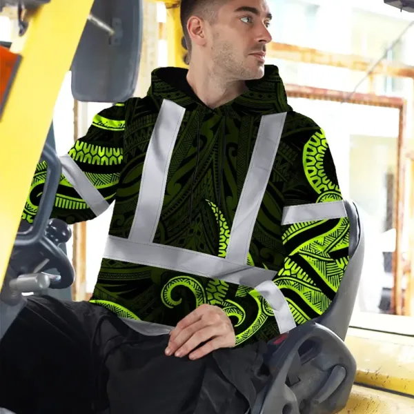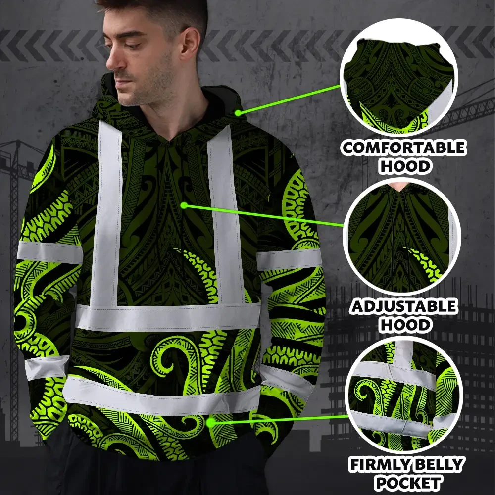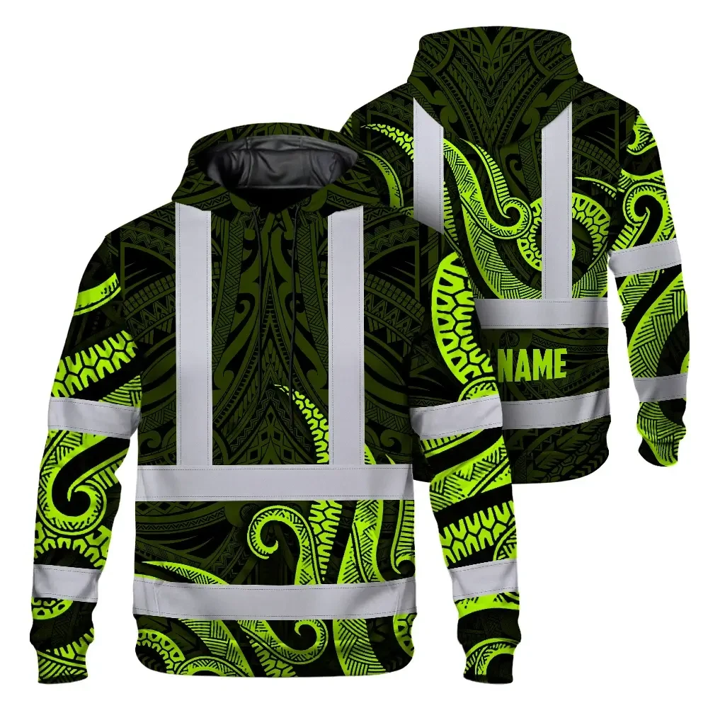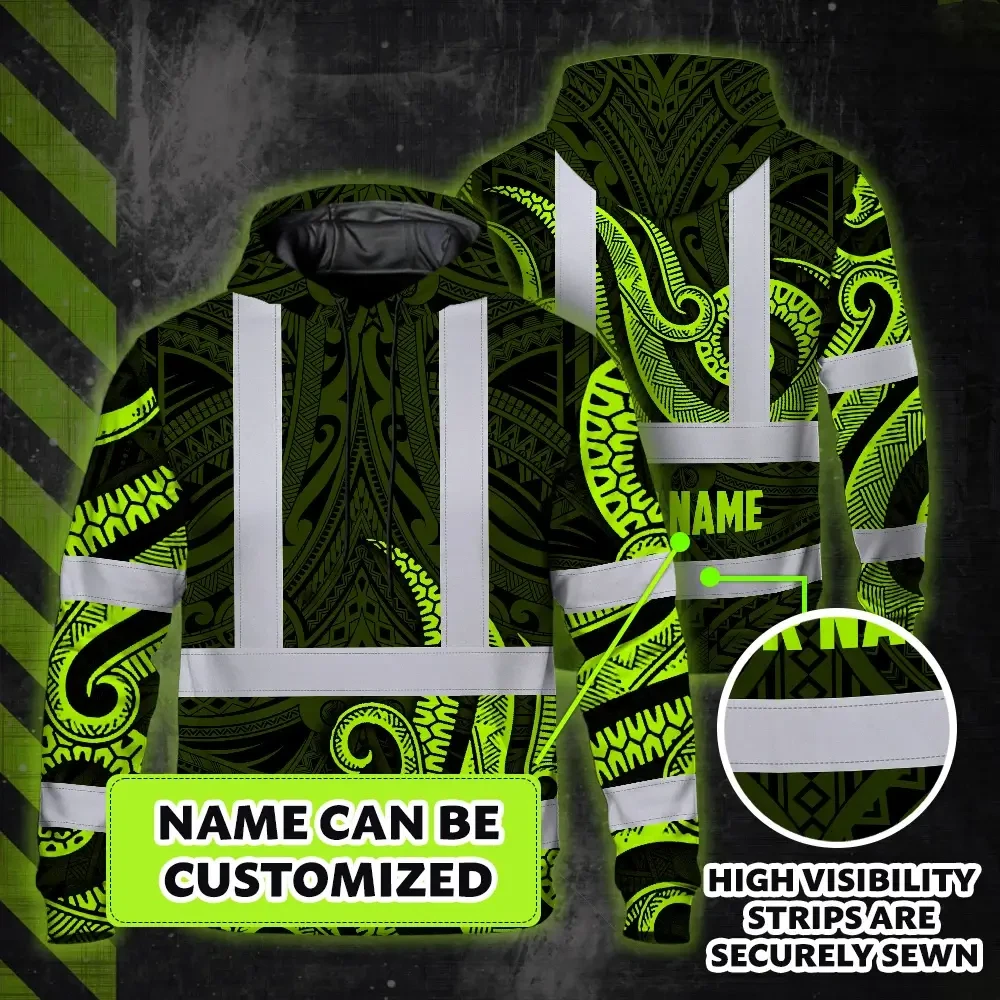 Hi Vis Hoodie Reflective Tapes Hawaiian Polynesian Tribal Custom Name Safety Workwear For Workers, Truckers, Operators