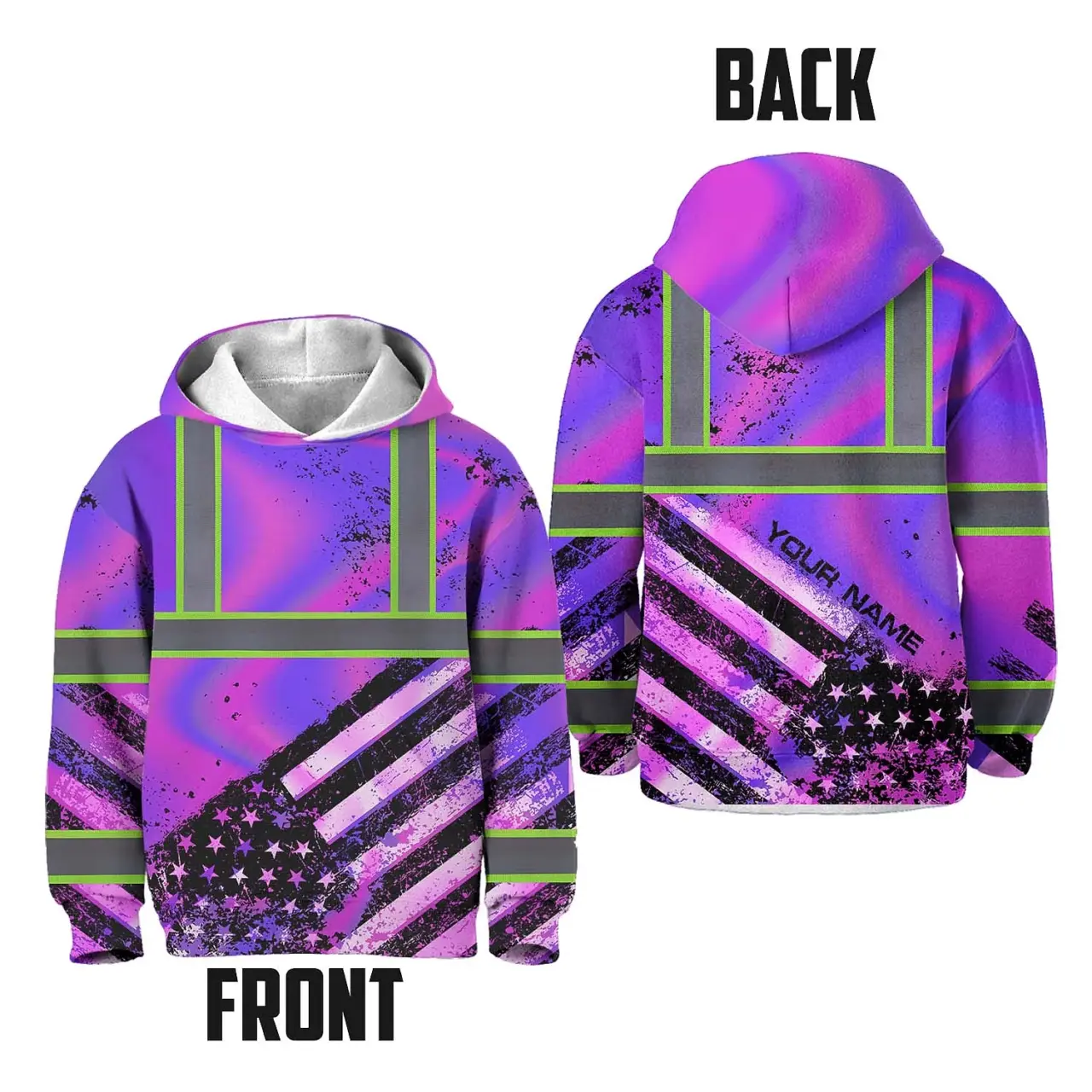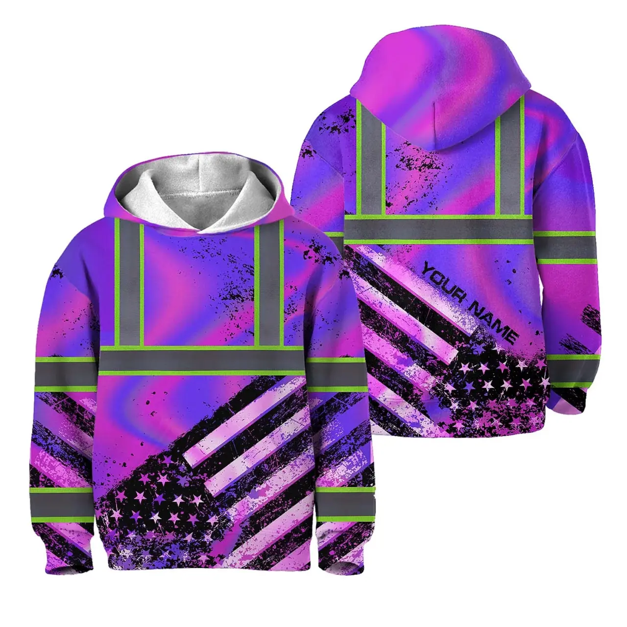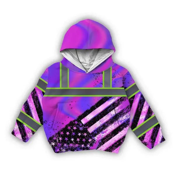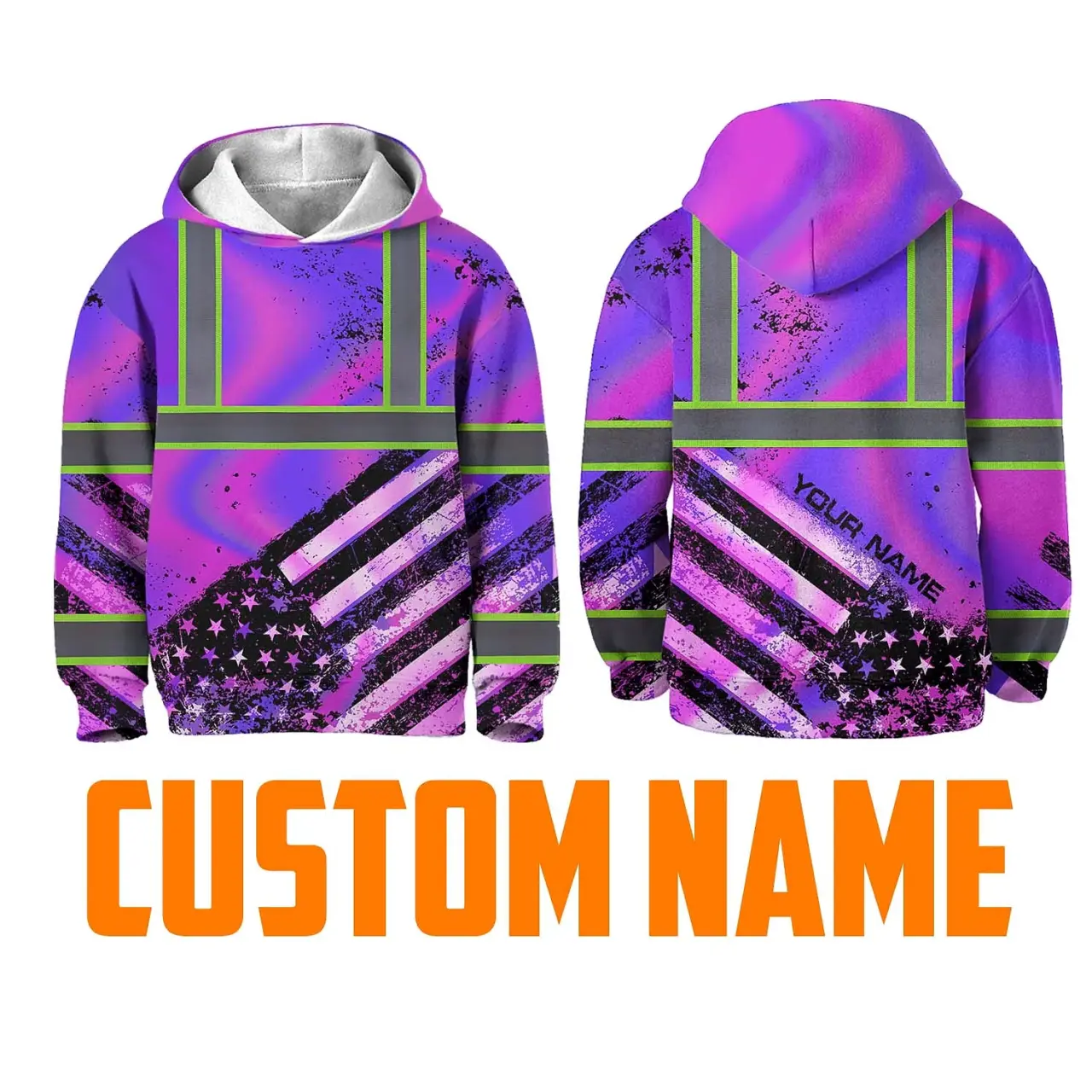 Hi Vis Hoodie Reflective Tapes Hologram US Flag Paint Custom Name For Kids