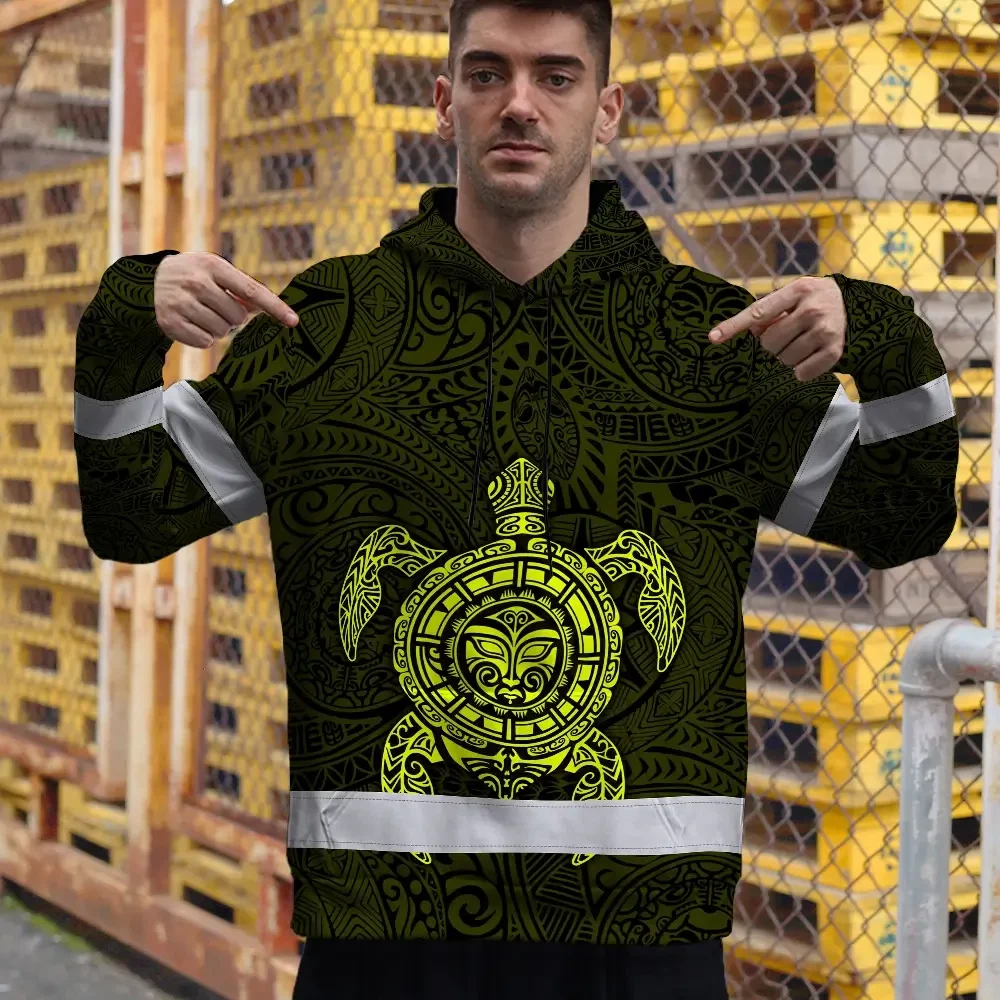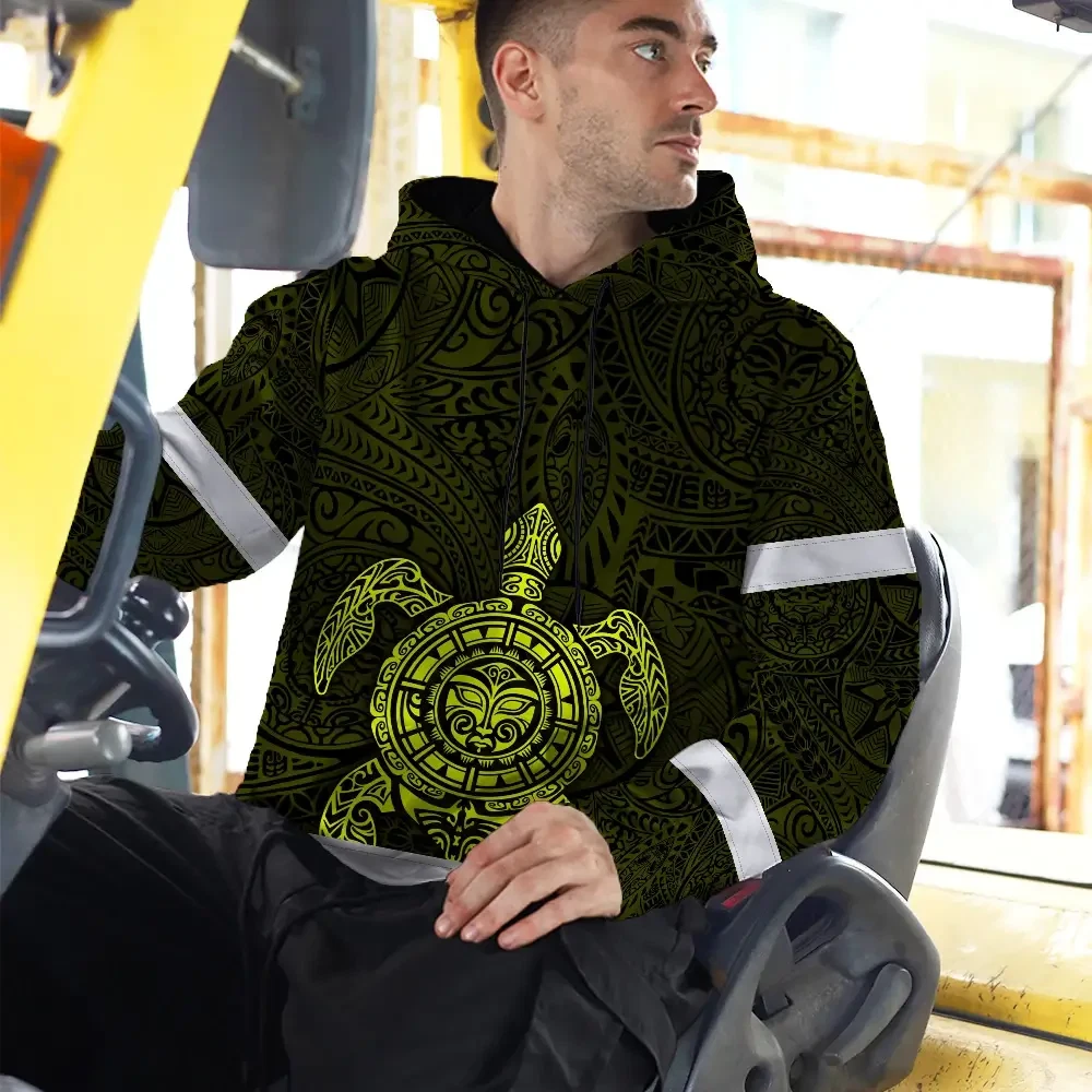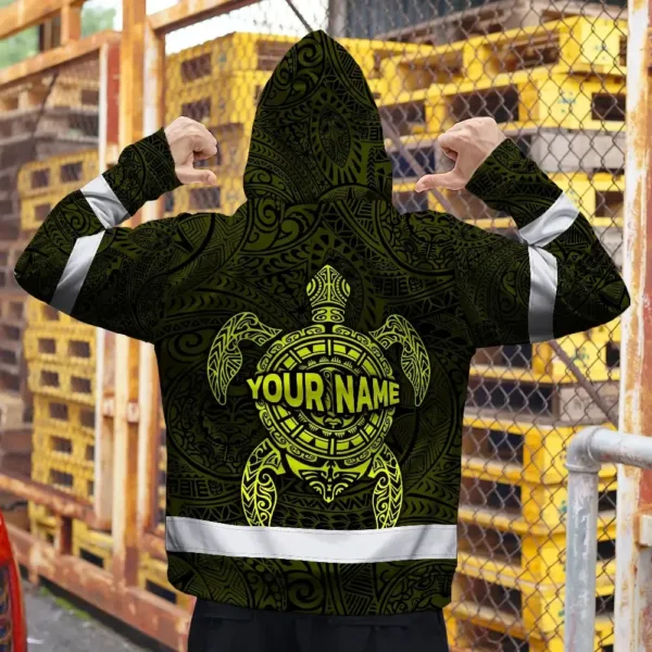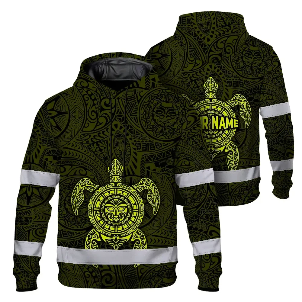 Hi Vis Hoodie Reflective Tapes Lime Neon Hawaii Turtle Custom Name Safety Workwear For Workers, Truckers, Operators