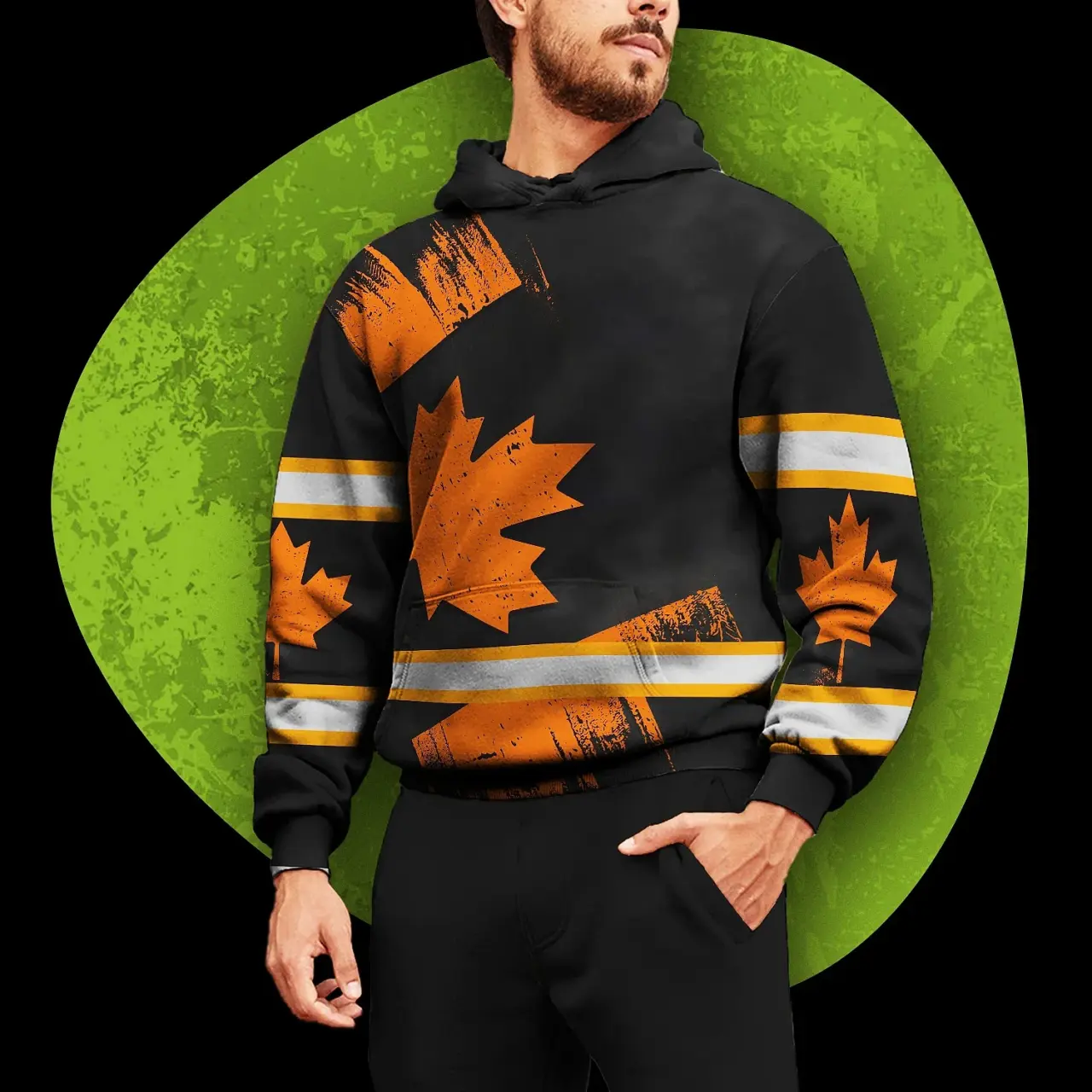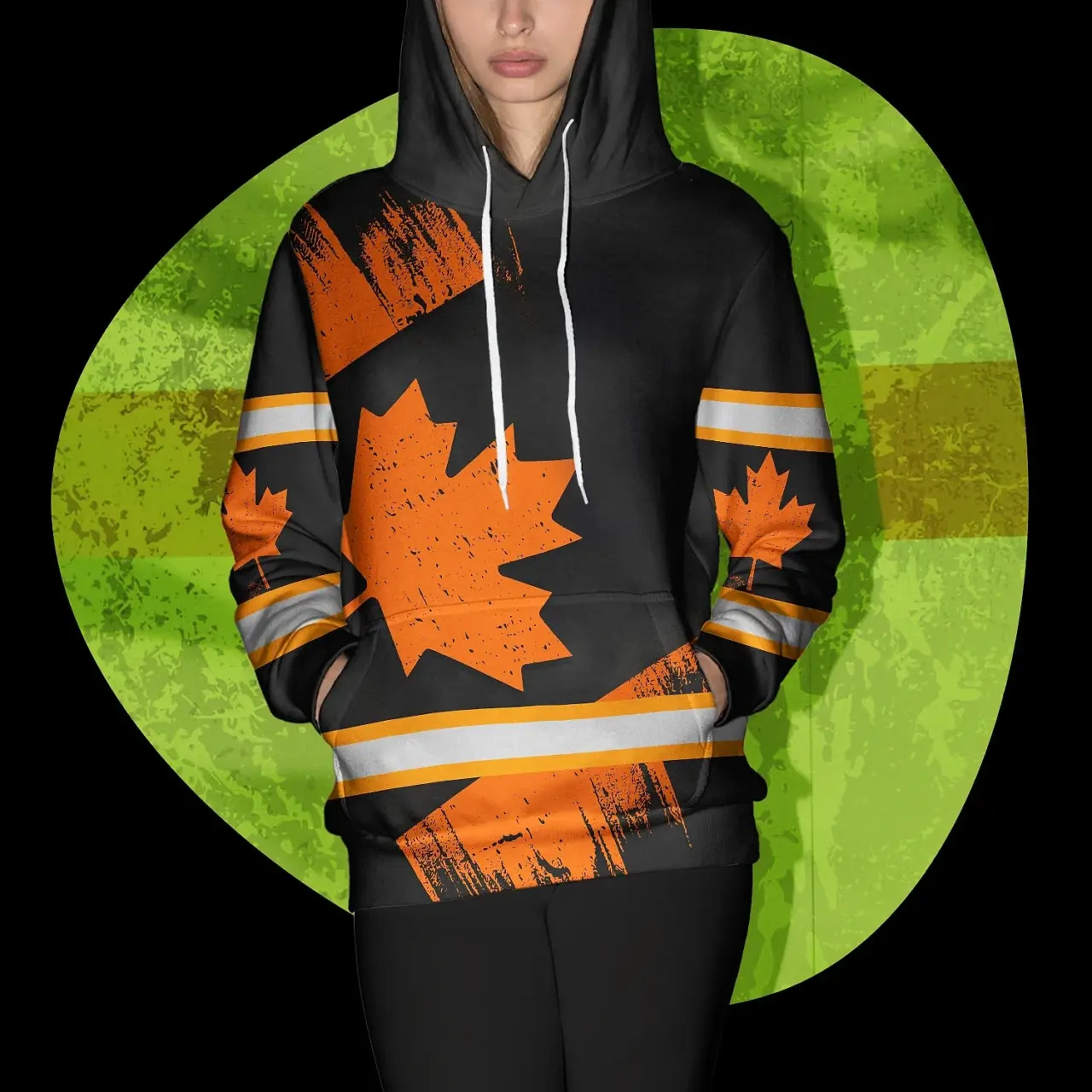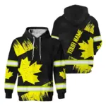 Hi Vis Hoodie Reflective Tapes Orange Black Canada Flag Custom Name Safety Workwear For Worker, Operator, Patriotic