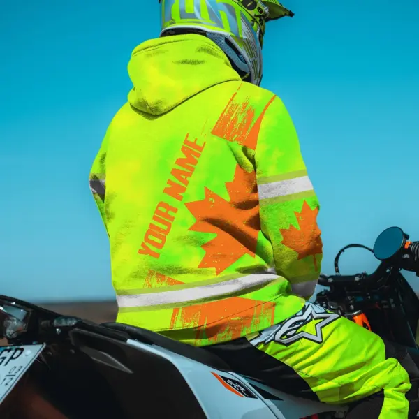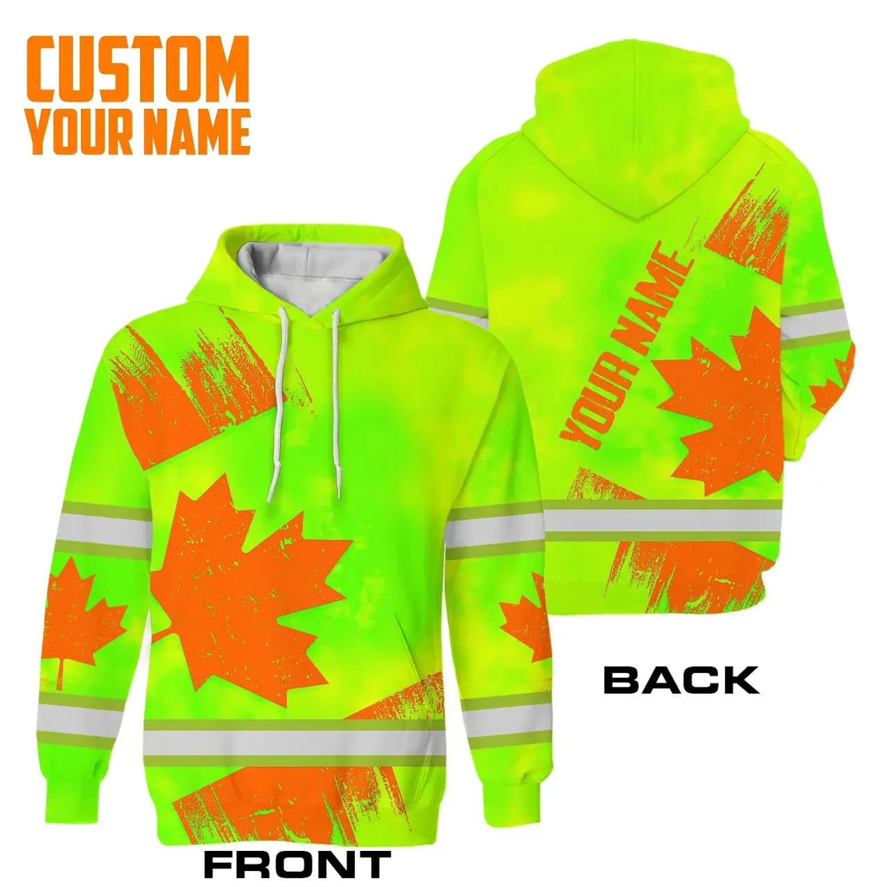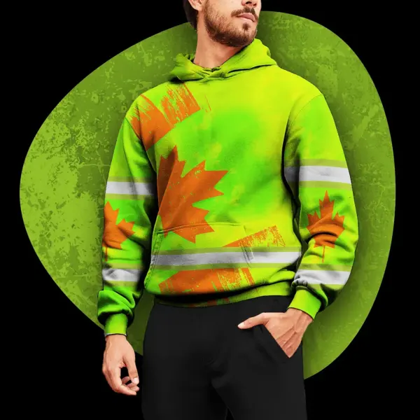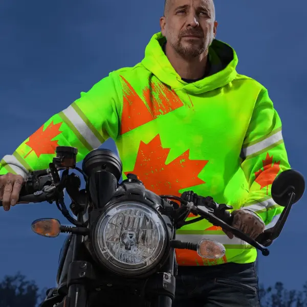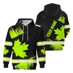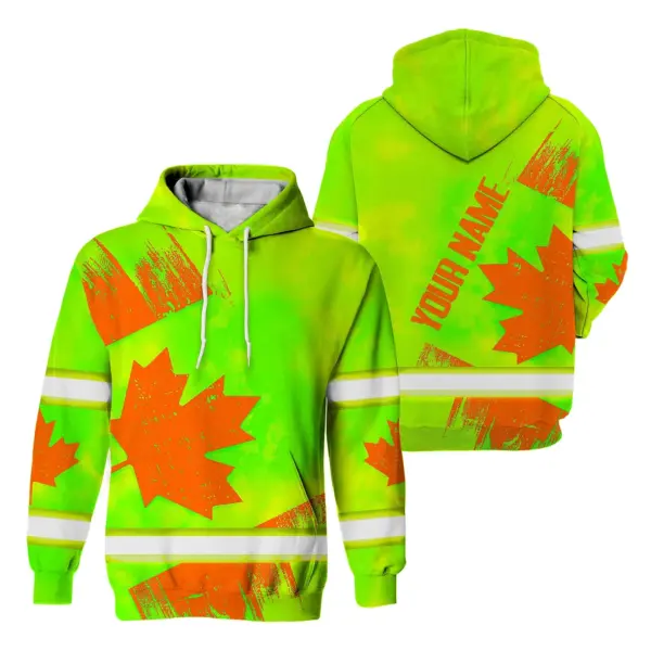 Hi Vis Hoodie Reflective Tapes Orange Green Canada Flag Custom Name Safety Workwear For Worker, Operator, Patriotic