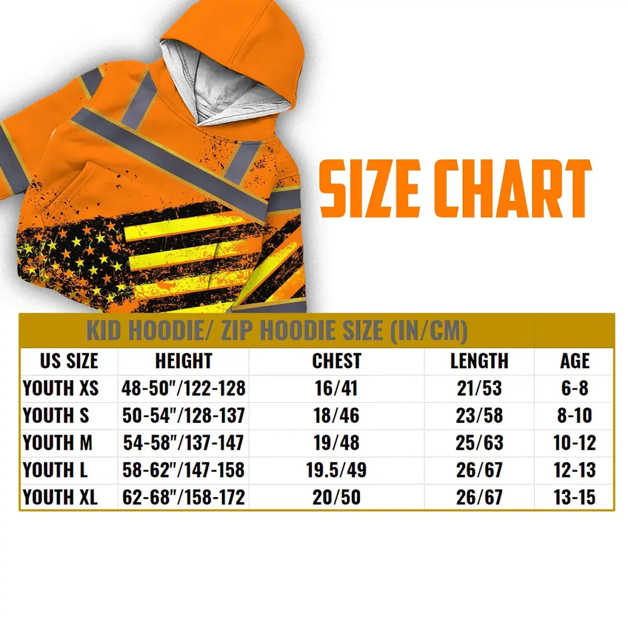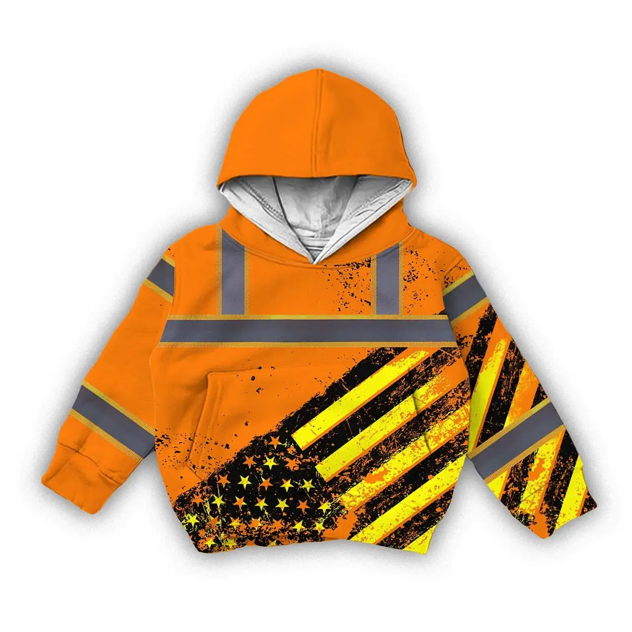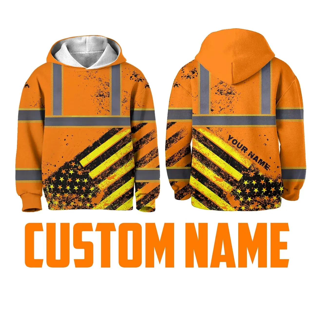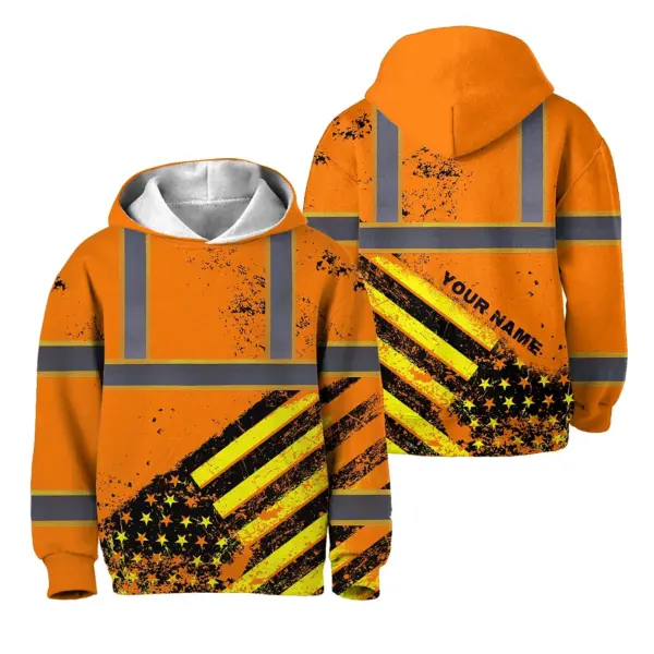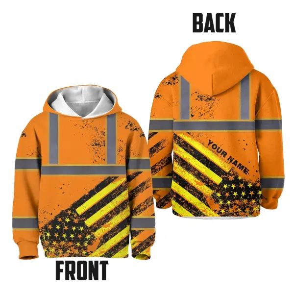 Hi Vis Hoodie Reflective Tapes Orange USA Flag Custom Name For Kids