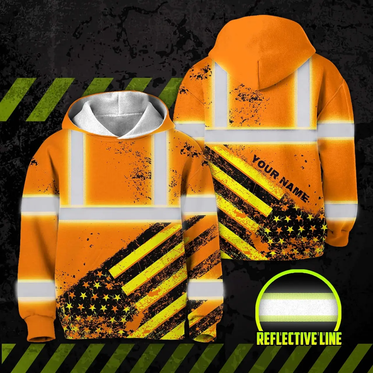 Select options This product has multiple variants. The options may be chosen on the product pagePatriotic Reflective Safety Hoodie – Custom Name Hi Vis Workwear