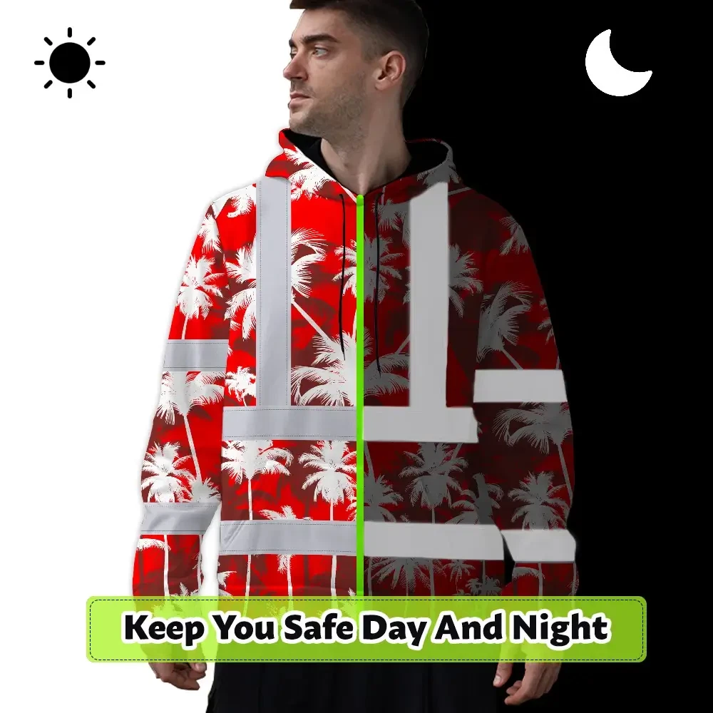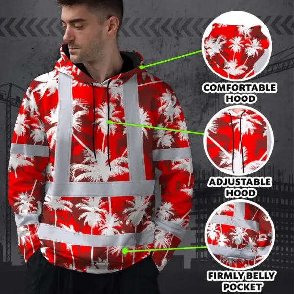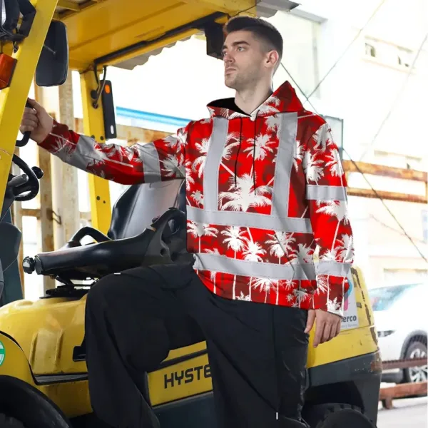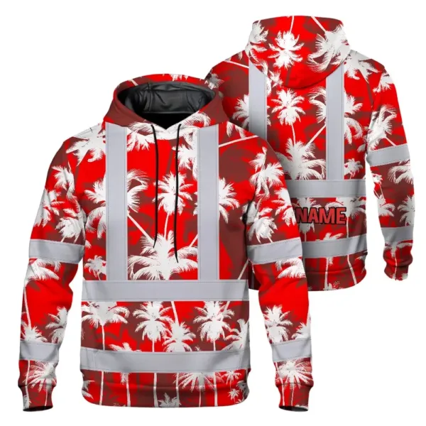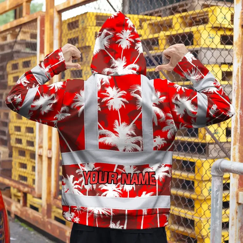 Hi Vis Hoodie Reflective Tapes Red Neon Flowers Custom Name Safety Workwear For Workers, Truckers, Operators