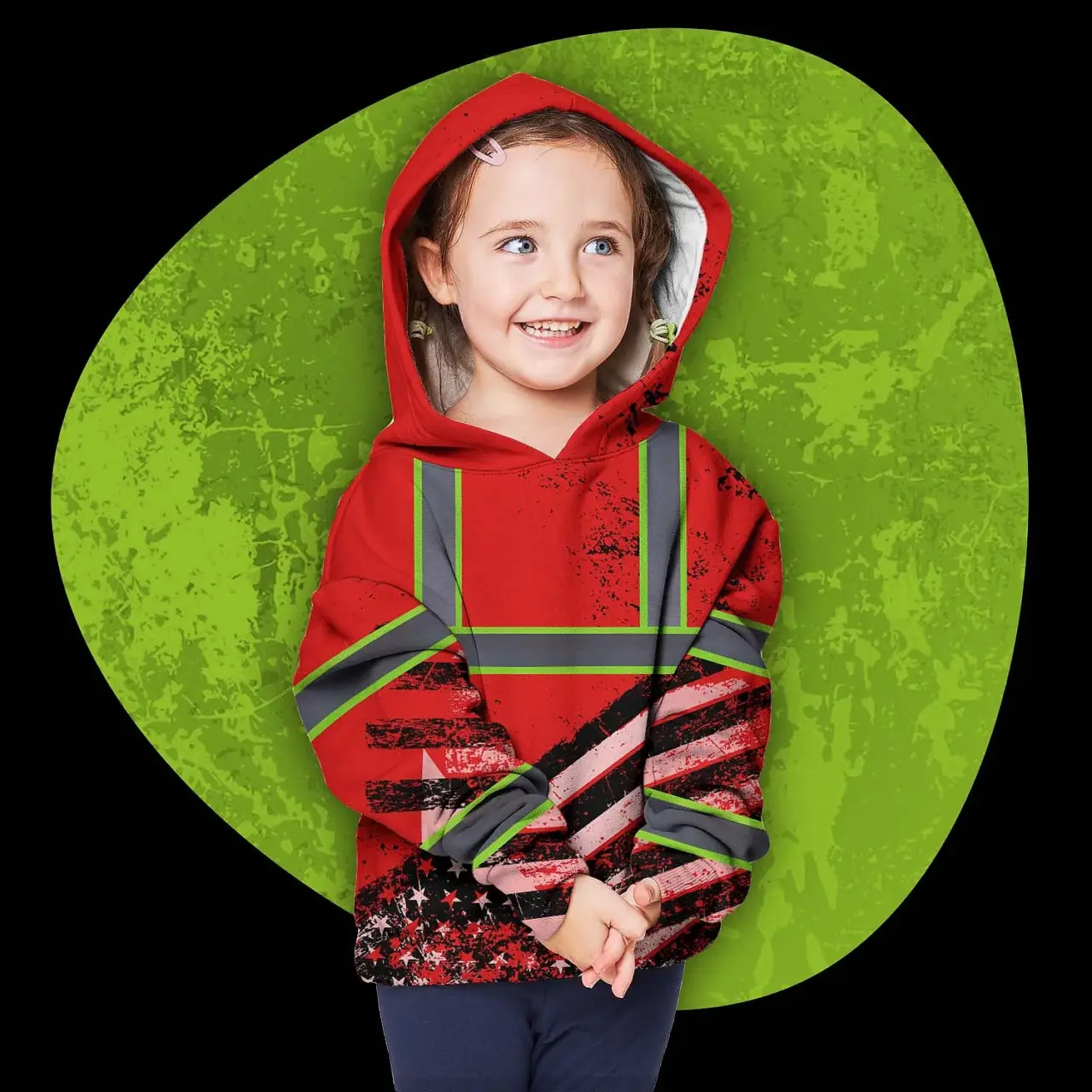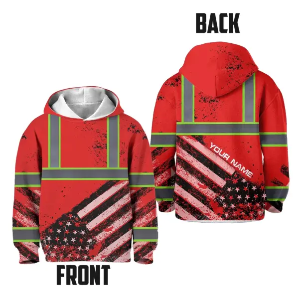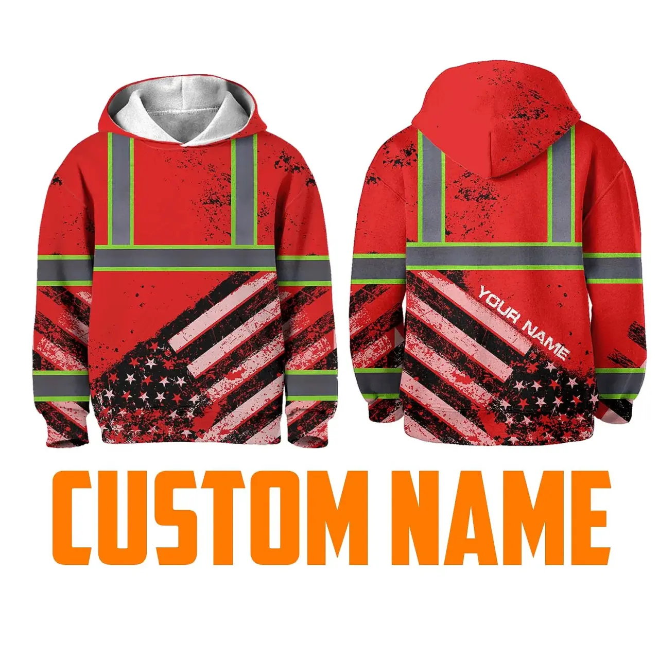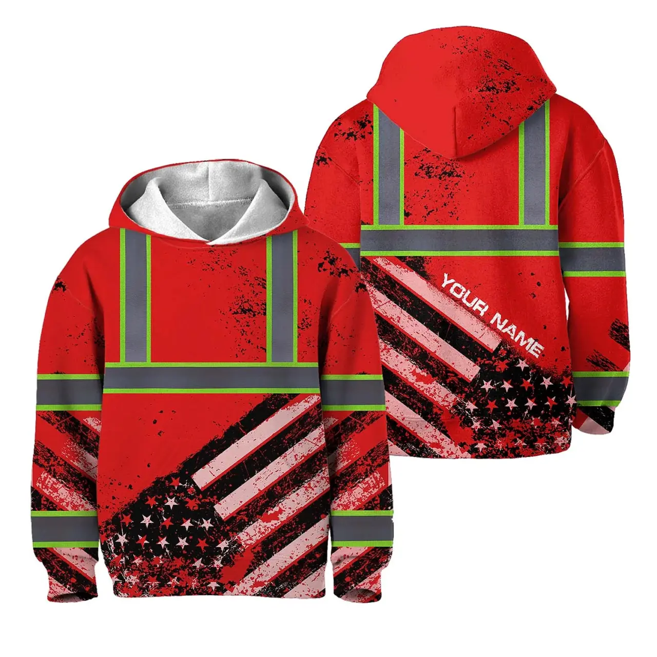 Hi Vis Hoodie Reflective Tapes Red US Flag Paint Custom Name For Kids