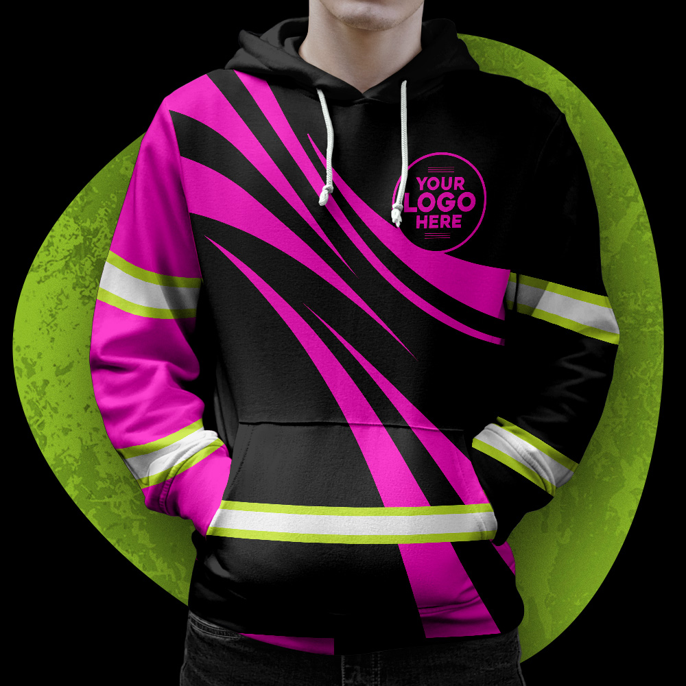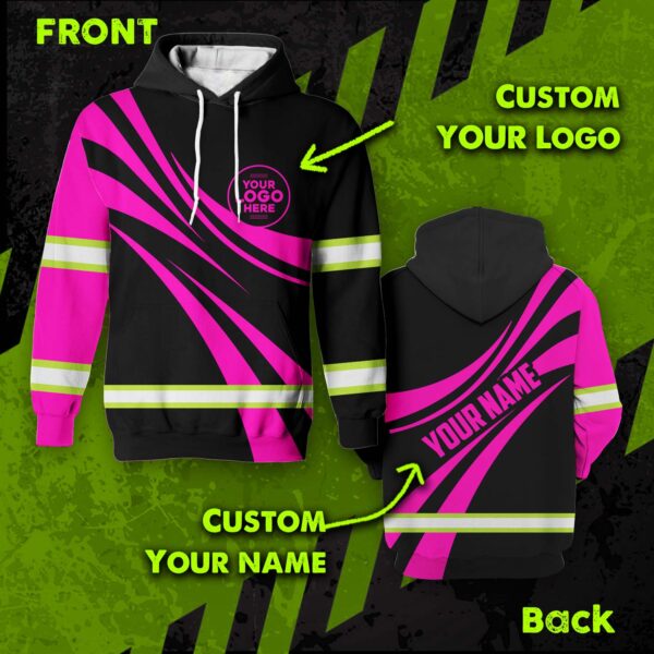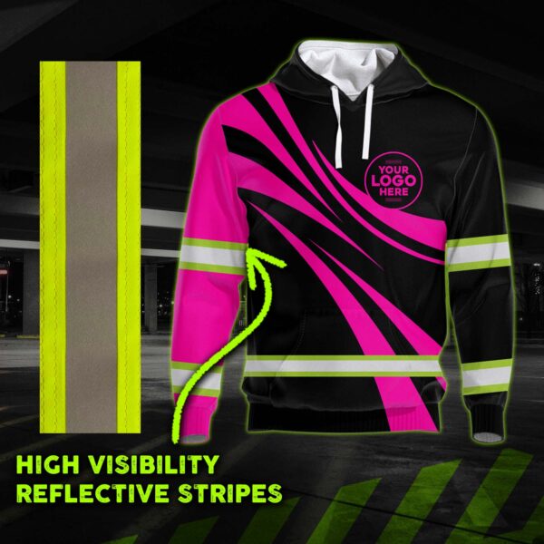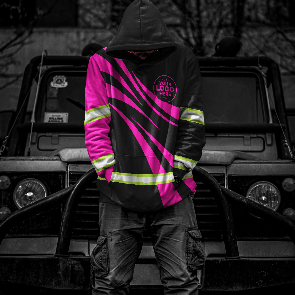 Hi Vis Hoodie Reflective Tapes Uniform Pink Neon Black Custom Logo And Name Safety Workwear For Workers, Runners, Cyclists, Patriotic