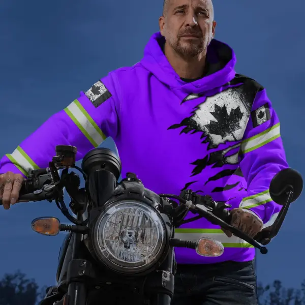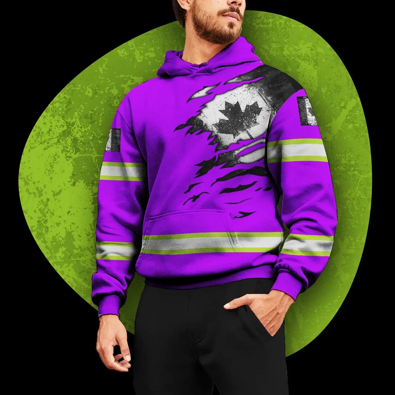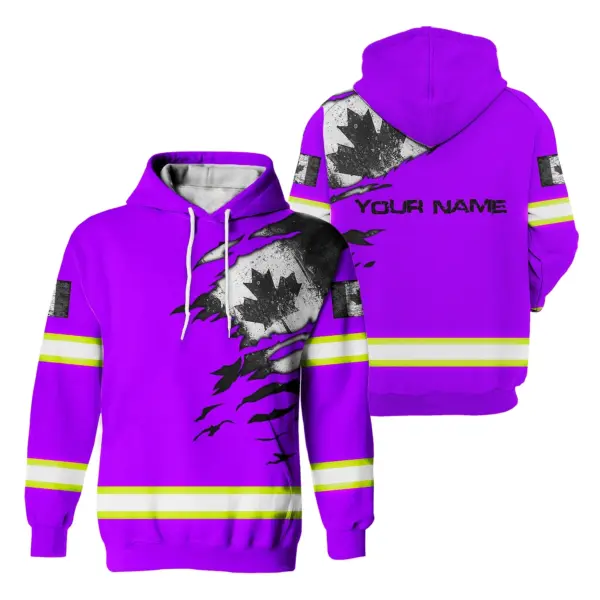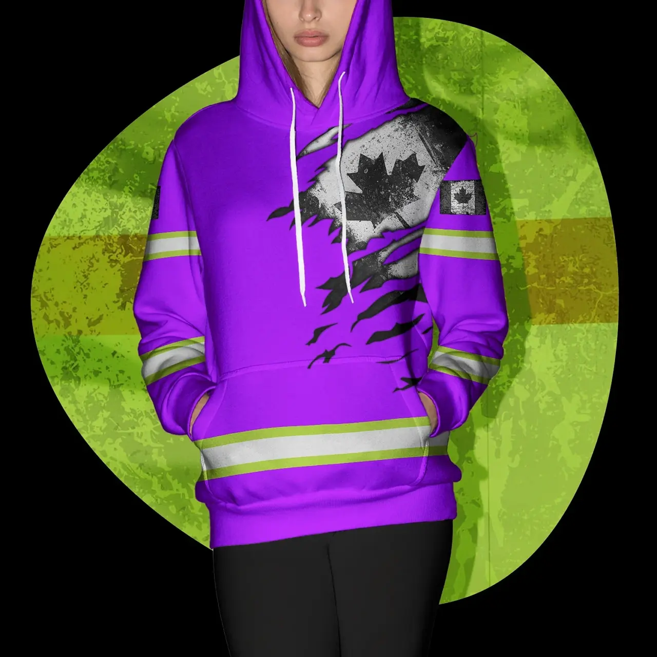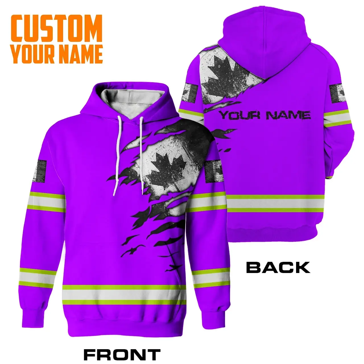 Hi Vis Hoodie Reflective Tapes Violet Neon Scratch Canada Flag Custom Name Safety Workwear For Worker, Operator, Patriotic