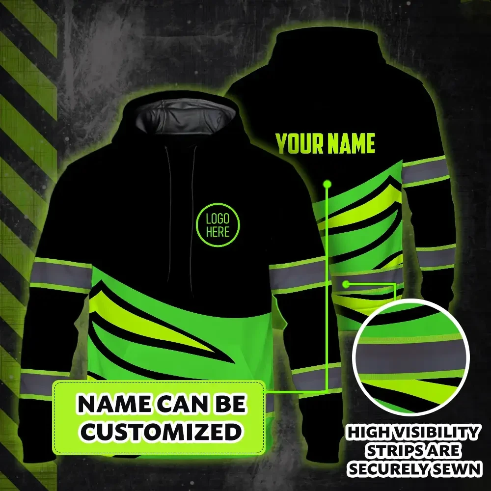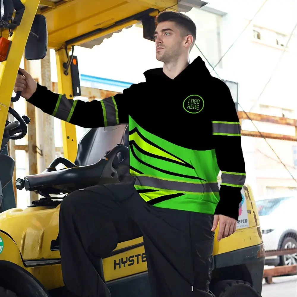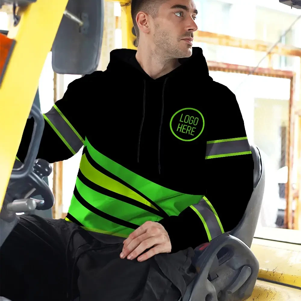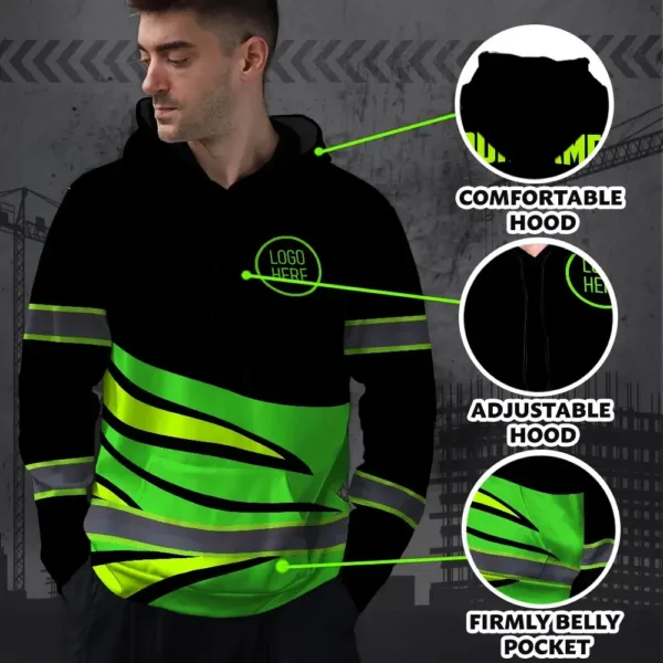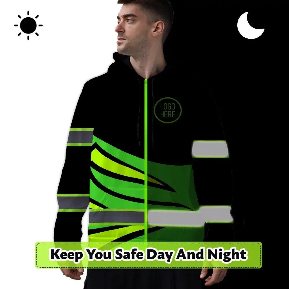 Customized Hi Vis Reflective Black Green Hoodie Company Uniforms With Logo & Name