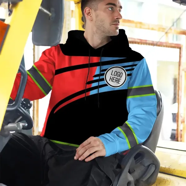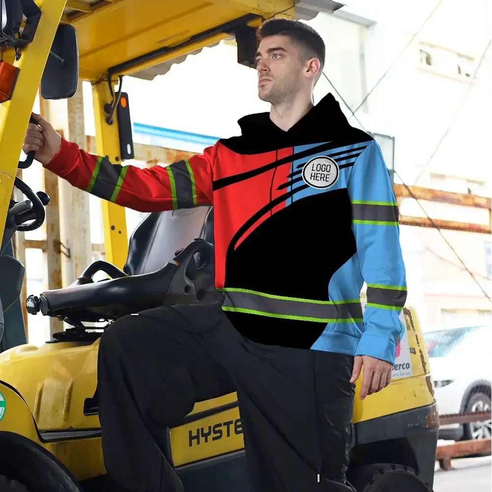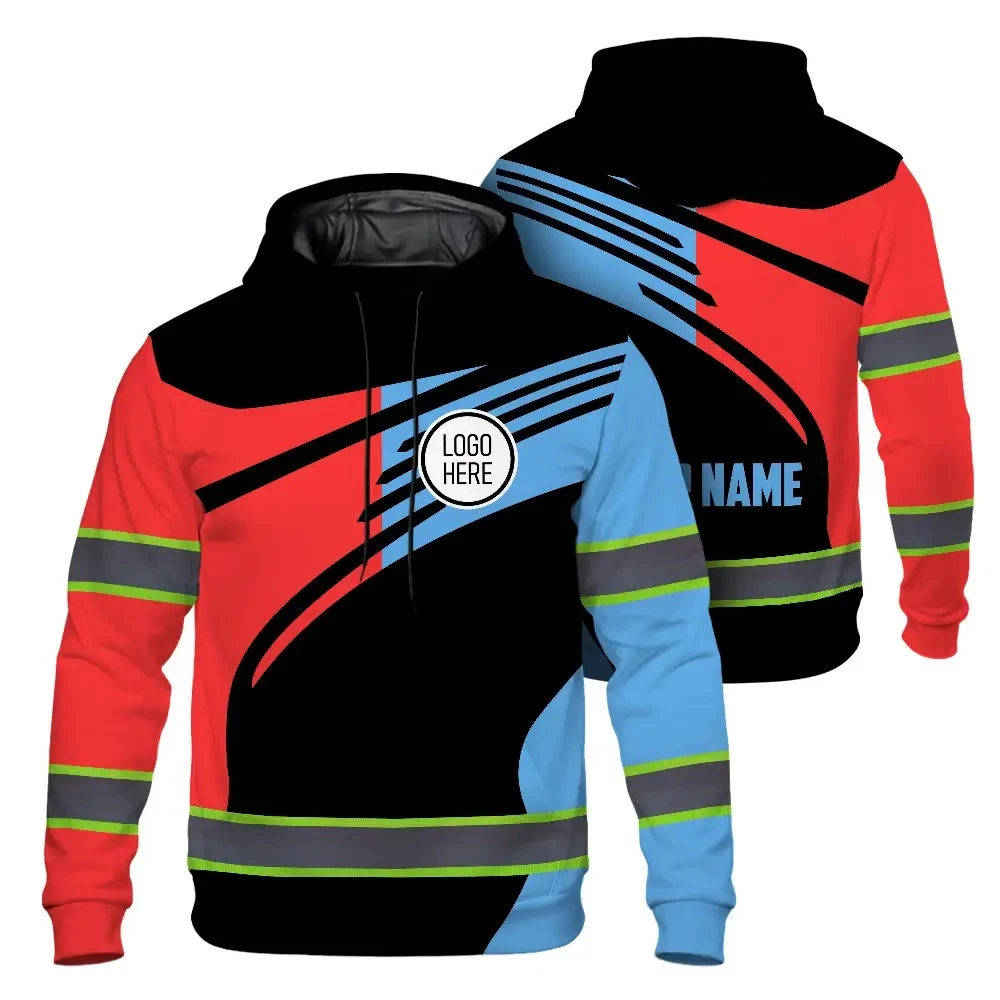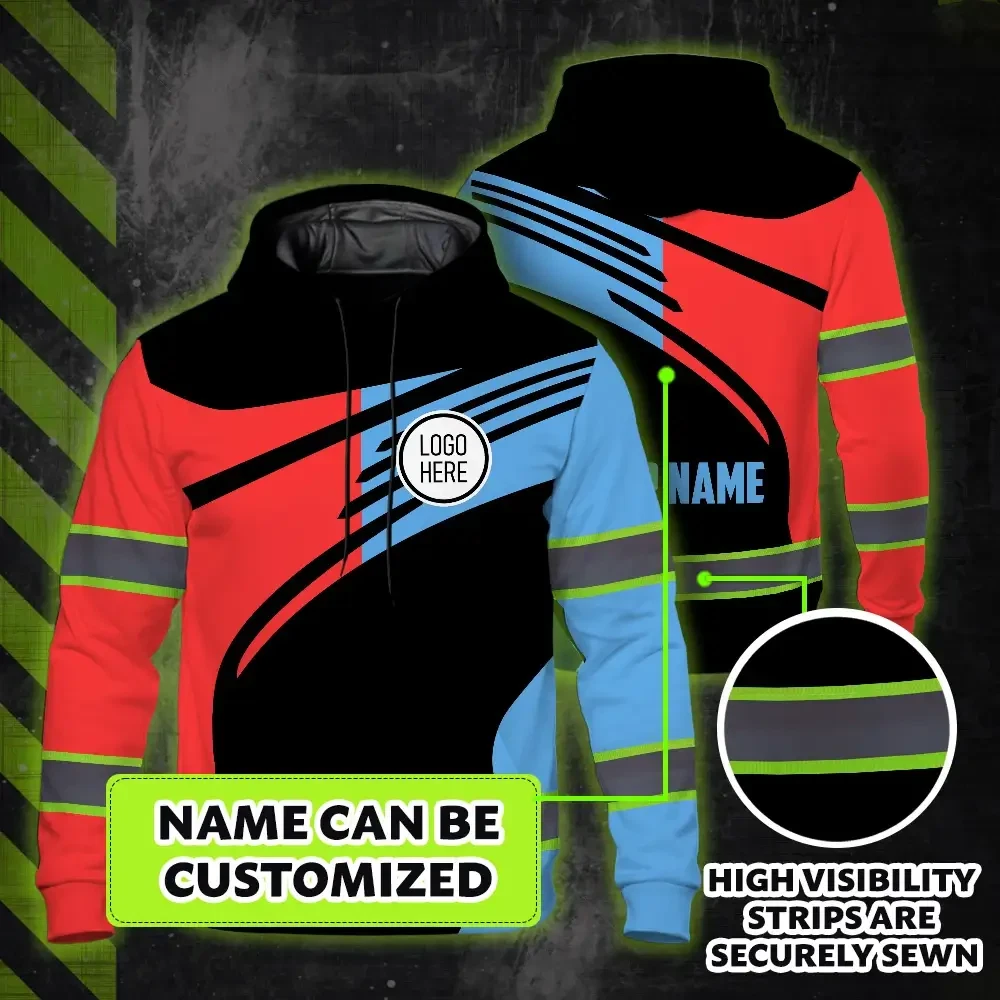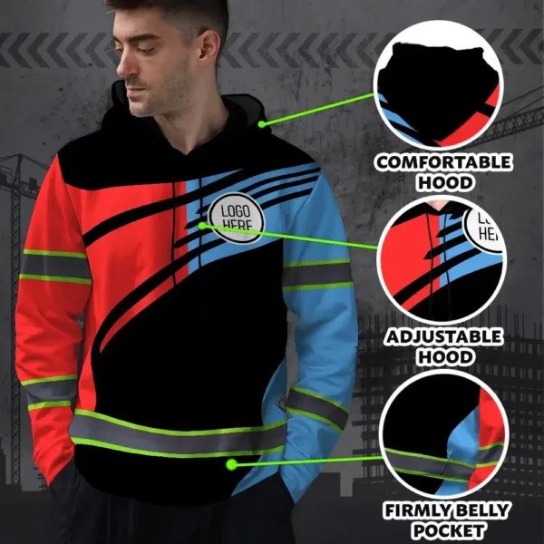 Hi Vis Hoodie Uniform Reflective Black Red Blue Neon Custom Name And Logo Safety Workwear For Company, Group, Team