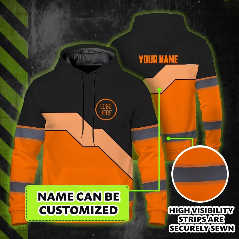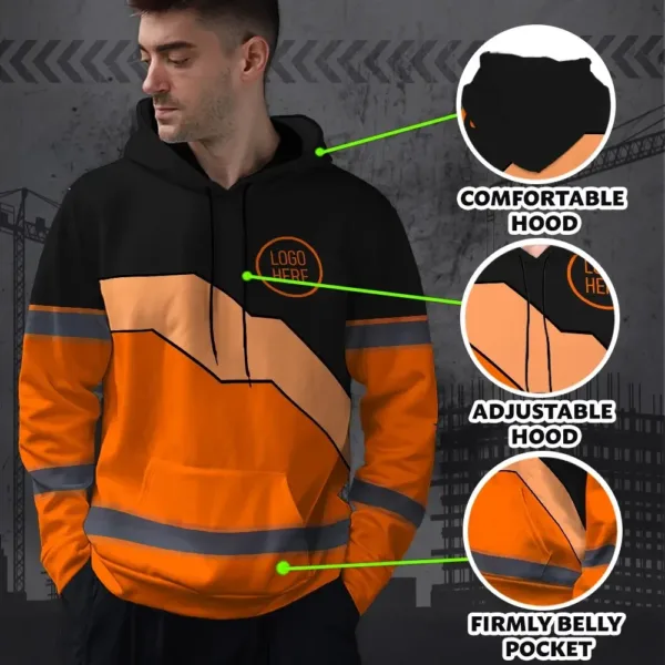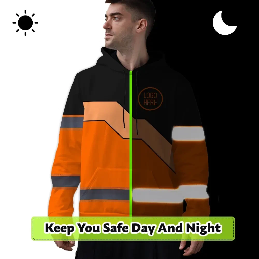 Hi Vis Hoodie Uniform Reflective Orange Neon Custom Name And Logo Safety Workwear For Company, Group, Team
