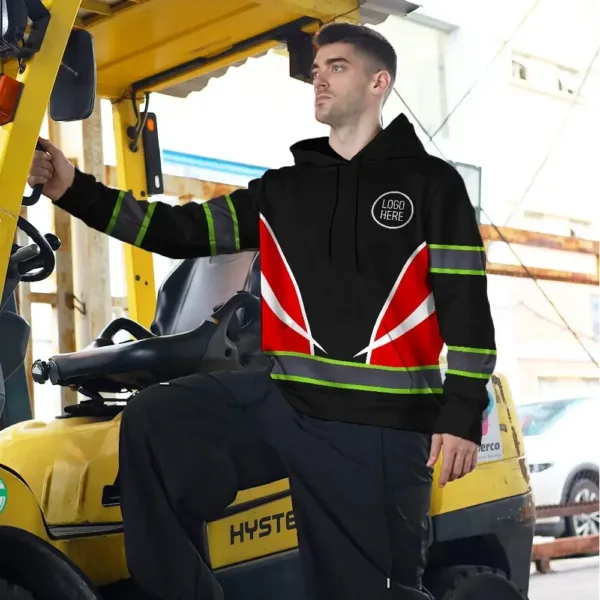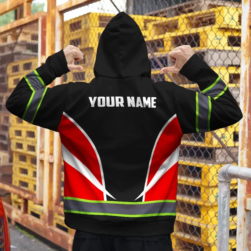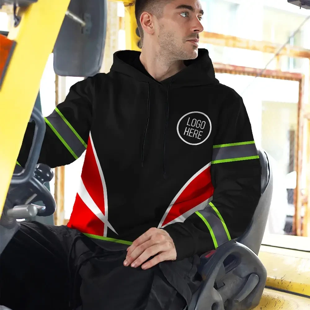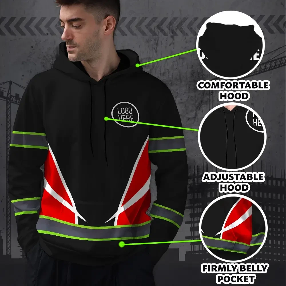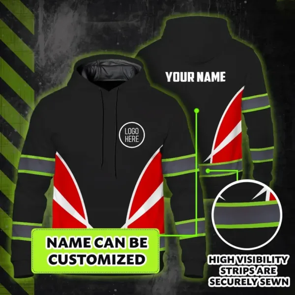 Hi Vis Hoodie Uniform Reflective White Red Neon Custom Name And Logo Safety Workwear For Company, Group, Team