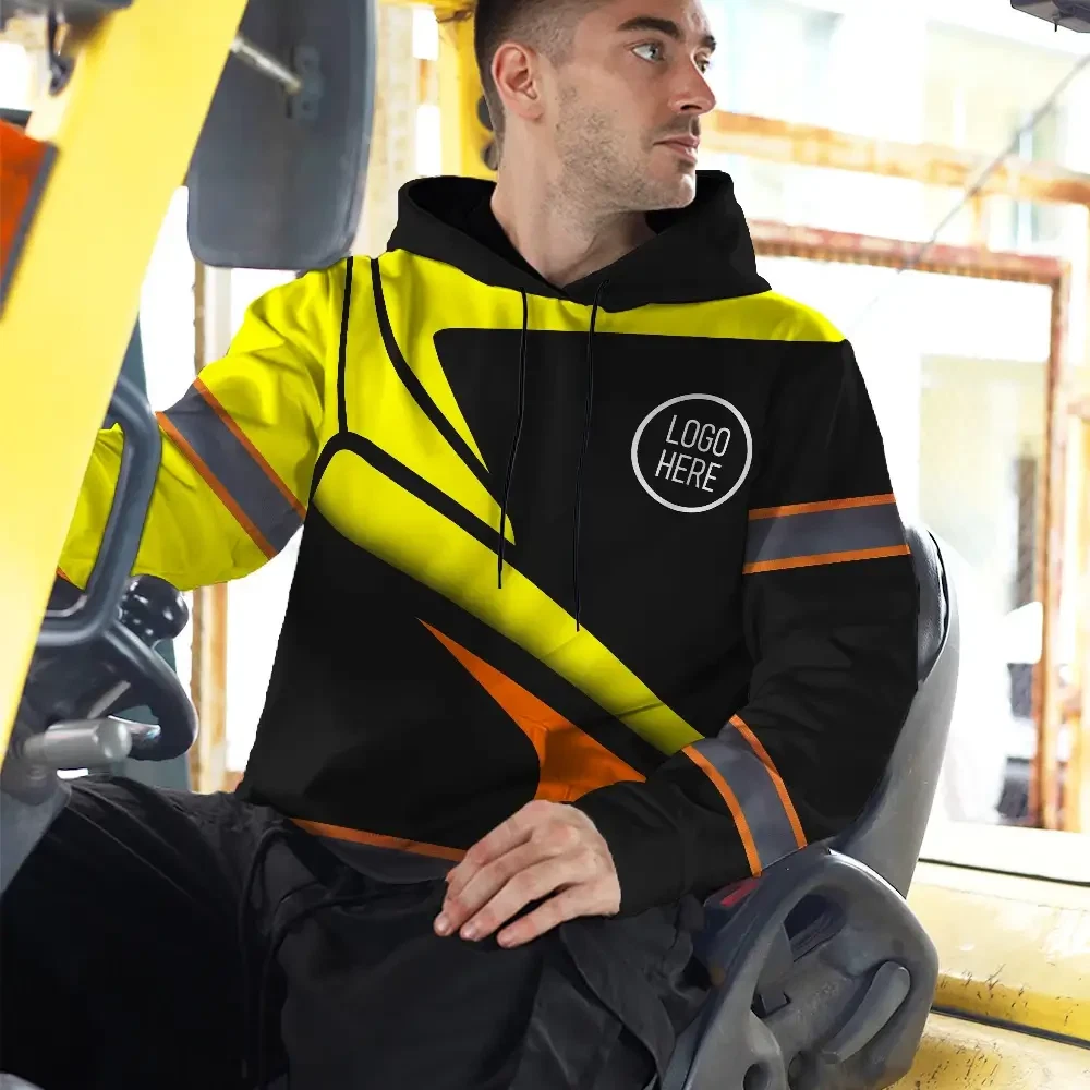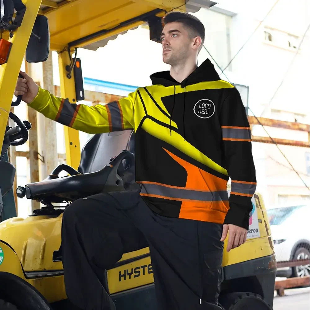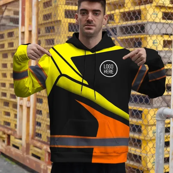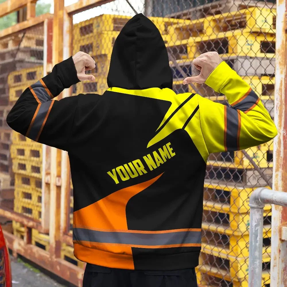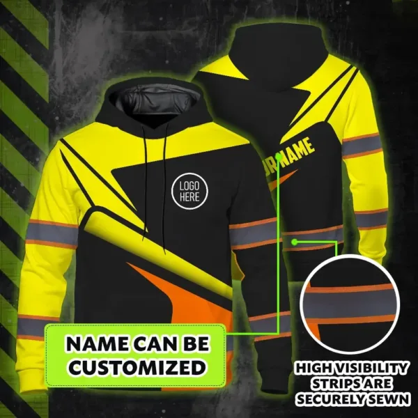 Hi Vis Hoodie Uniform Reflective Yellow Orange Neon Custom Name And Logo Safety Workwear For Company, Group, Team