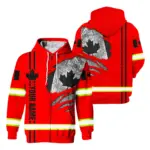 Hi Vis Jacket Reflective Black Red Canada Flag Scratch Custom Name Safety Workwear For Worker, Operator, Patriotic