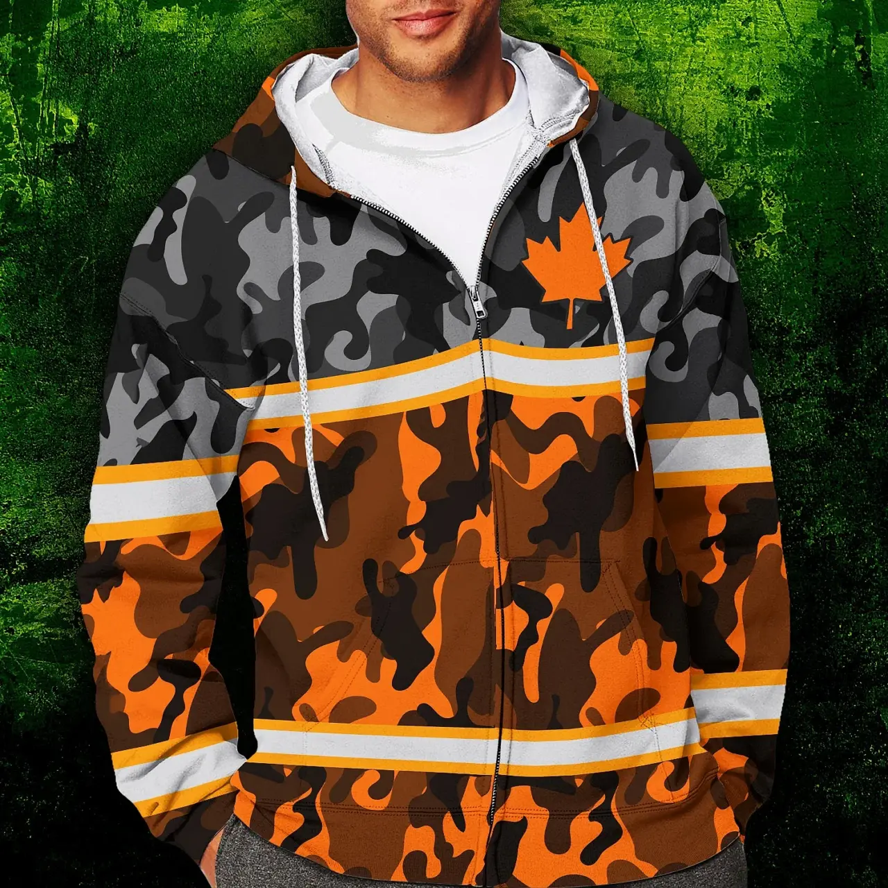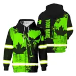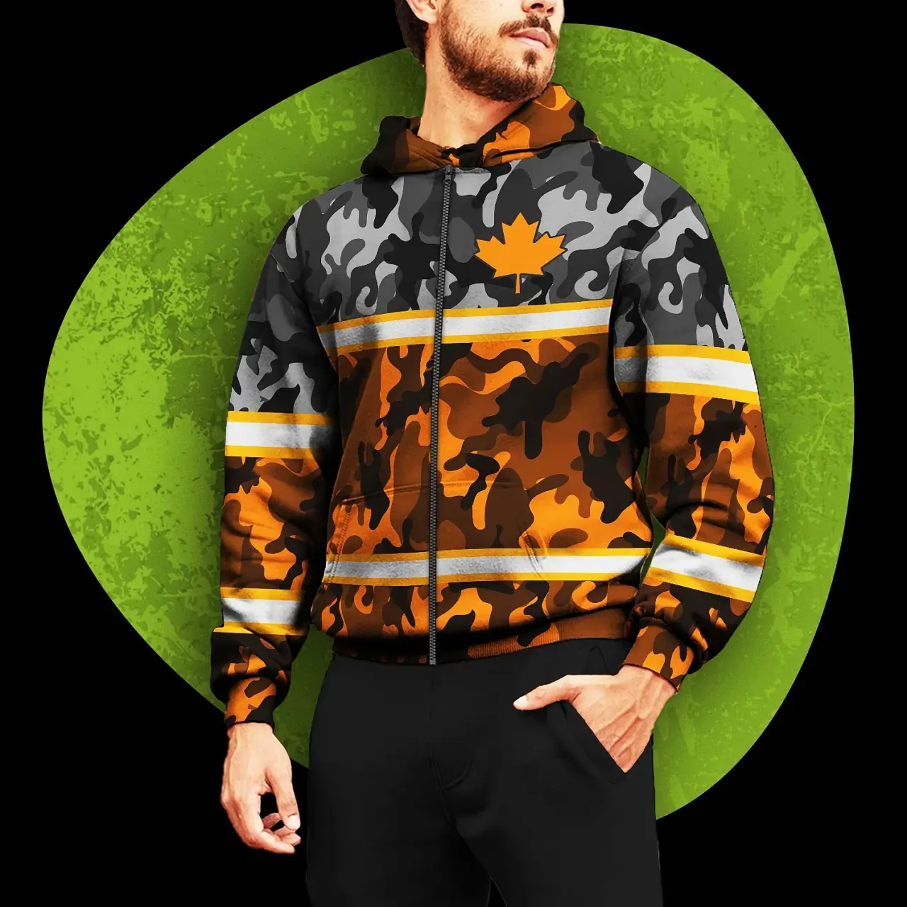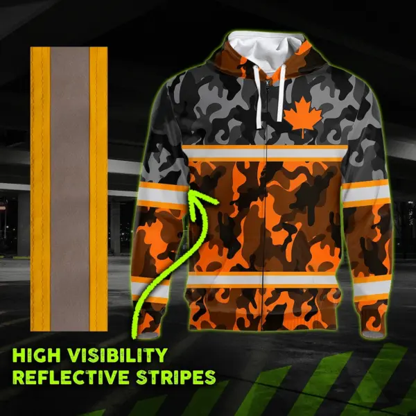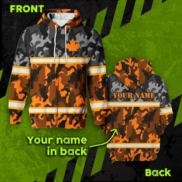 Hi Vis Jacket Reflective Camo Orange Neon Canada Flag Custom Name Safety Workwear For Worker, Operator, Patriotic