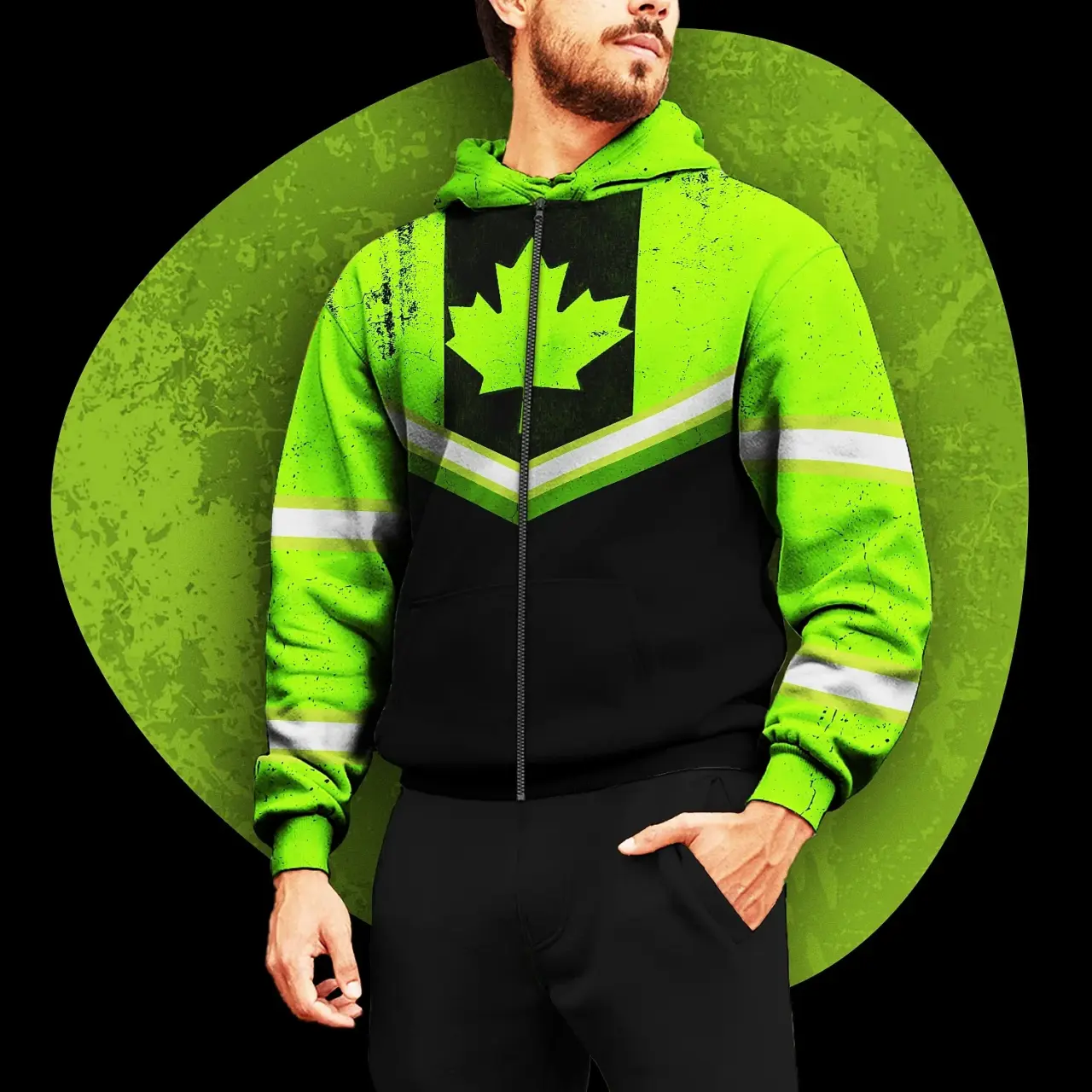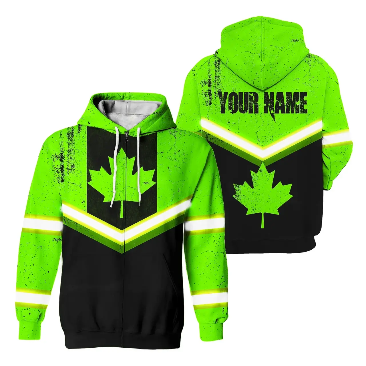 Be the first to review “Hi Vis Jacket Reflective Green Neon Canada Flag 2 Custom Name Safety Workwear For Worker, Operator, Patriotic”