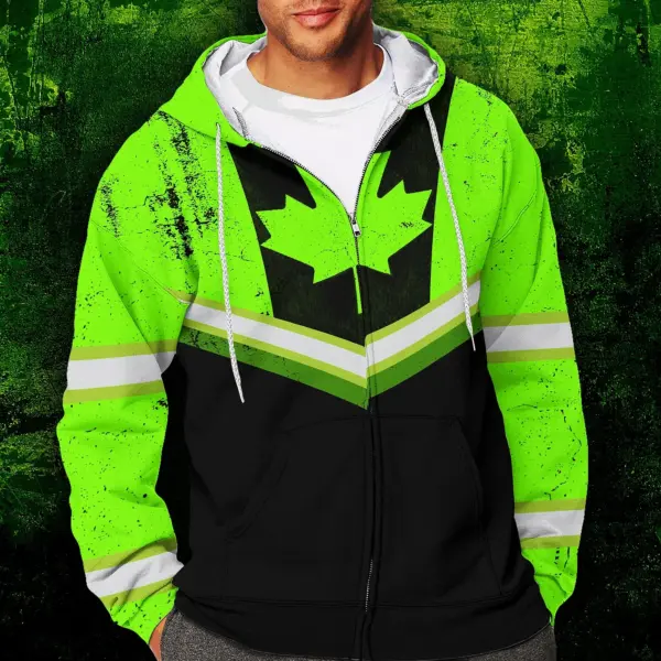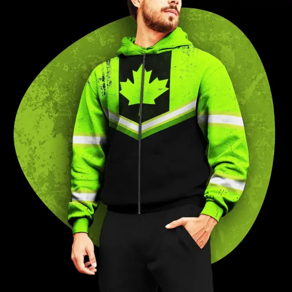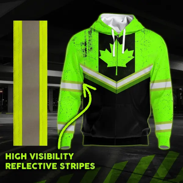 Hi Vis Jacket Reflective Green Neon Canada Flag 2 Custom Name Safety Workwear For Worker, Operator, Patriotic