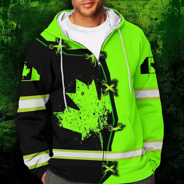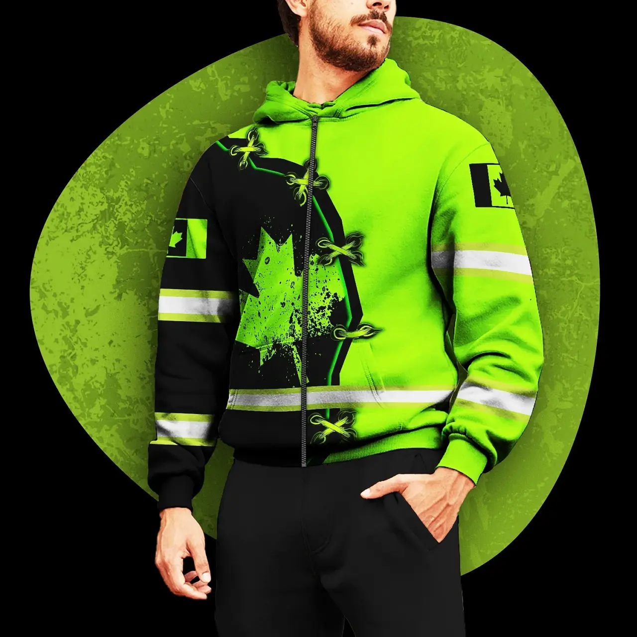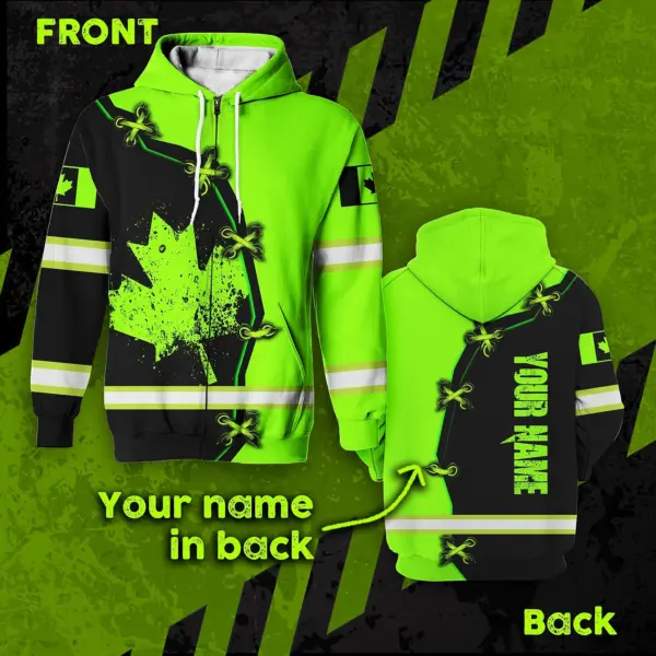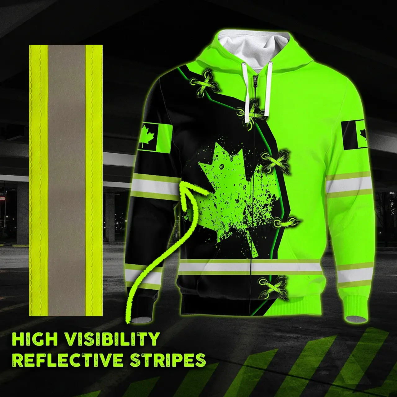 Hi Vis Jacket Reflective Green Neon Scratch Canada Flag Custom Name Safety Workwear For Worker, Operator, Patriotic