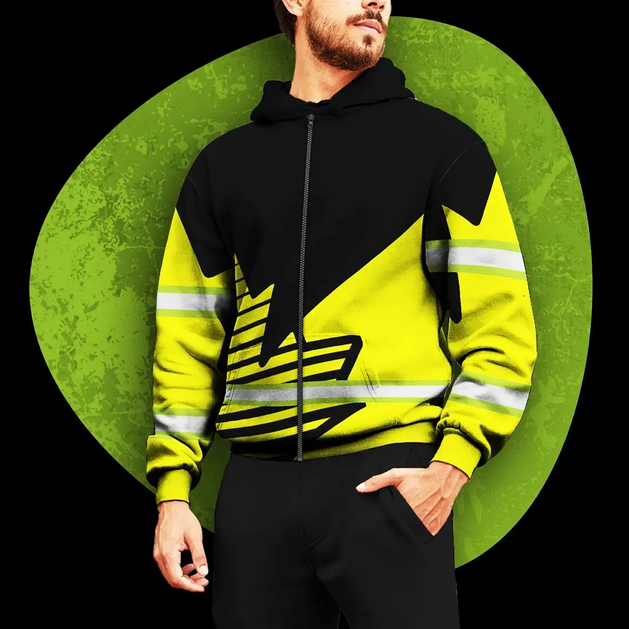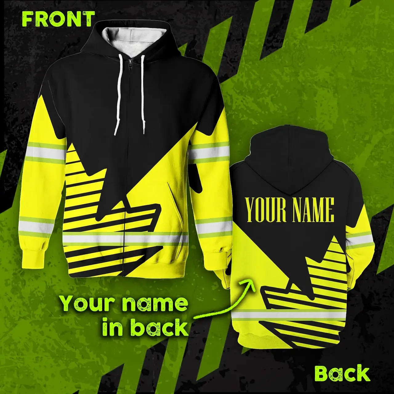Select options This product has multiple variants. The options may be chosen on the product pageHi Vis Hoodie Reflective Tapes Lime Neon Canada Flag Custom Name Safety