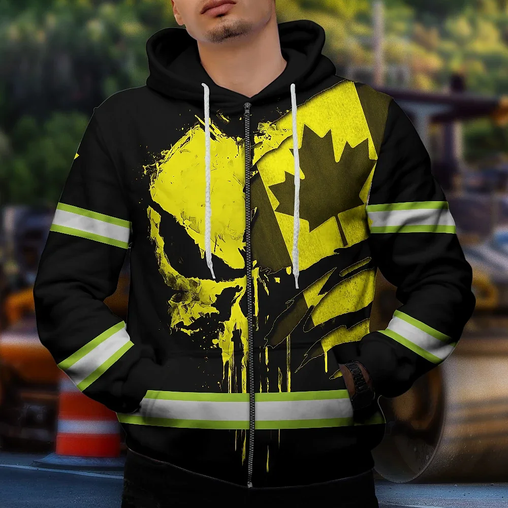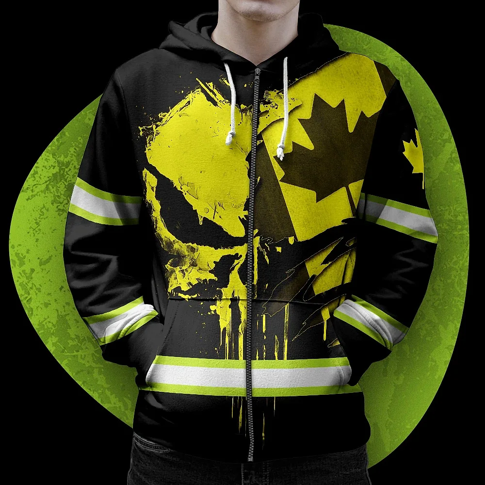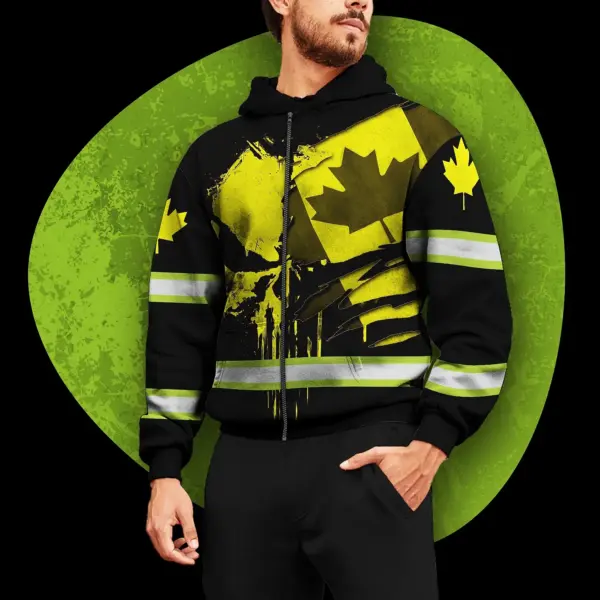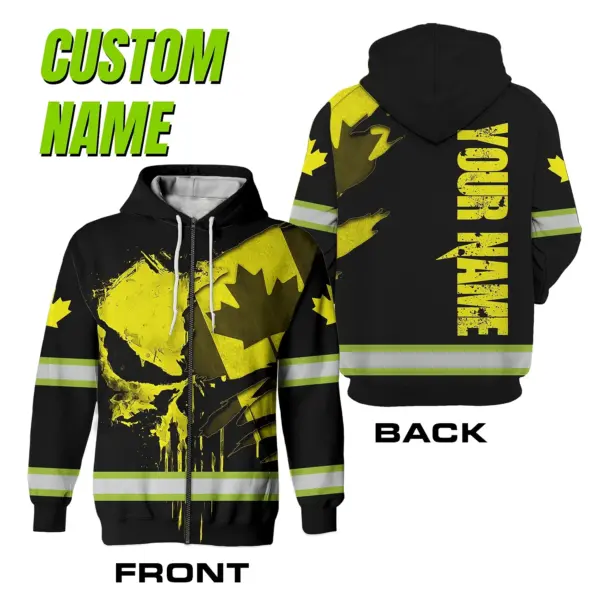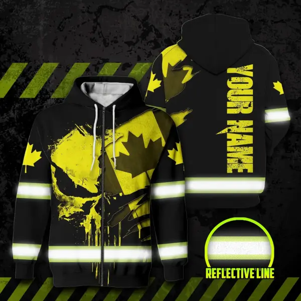 Hi Vis Jacket Reflective Yellow Neon Canada Flag Custom Name Safety Workwear For Worker, Operator, Patriotic