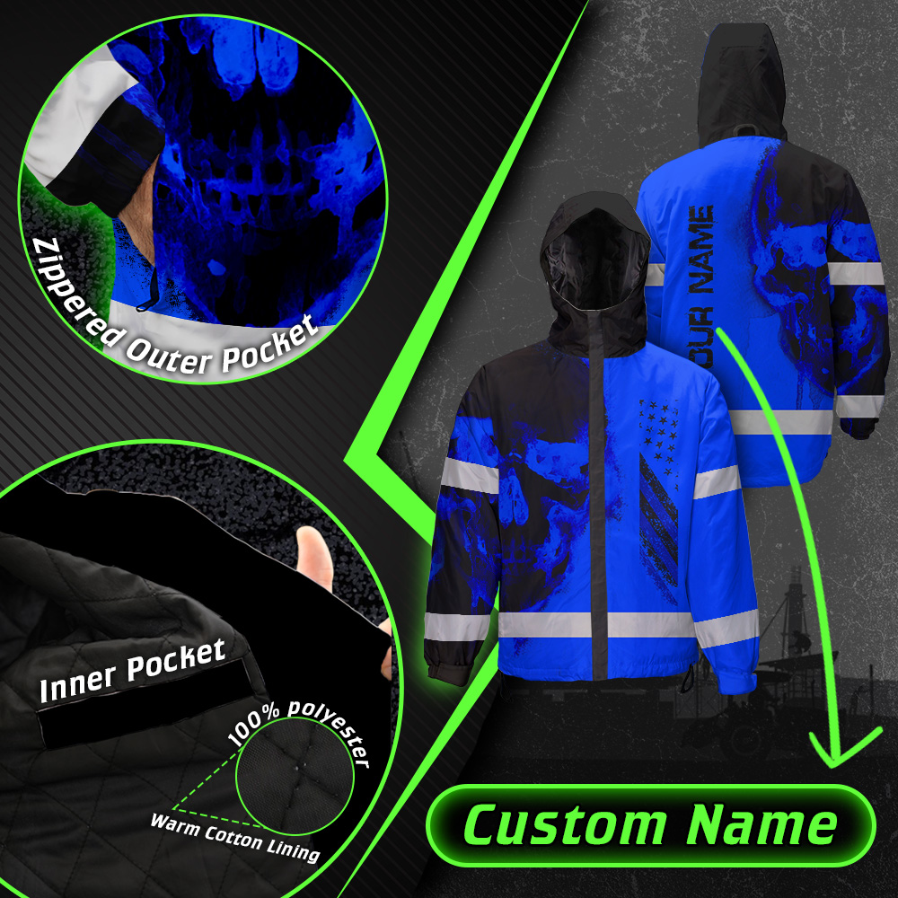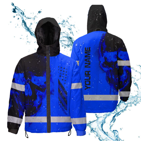 Hi Vis Jacket Waterproof And Windproof Reflective Skull US Flag Blue Neon