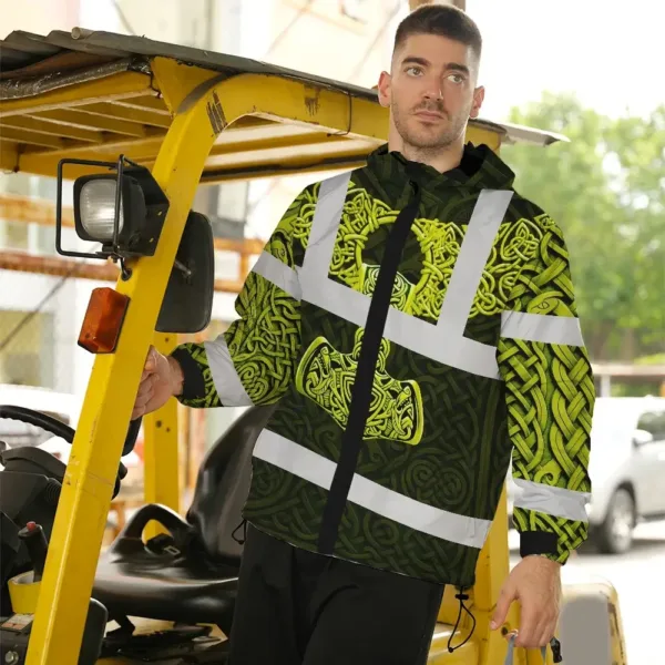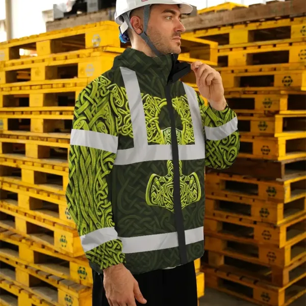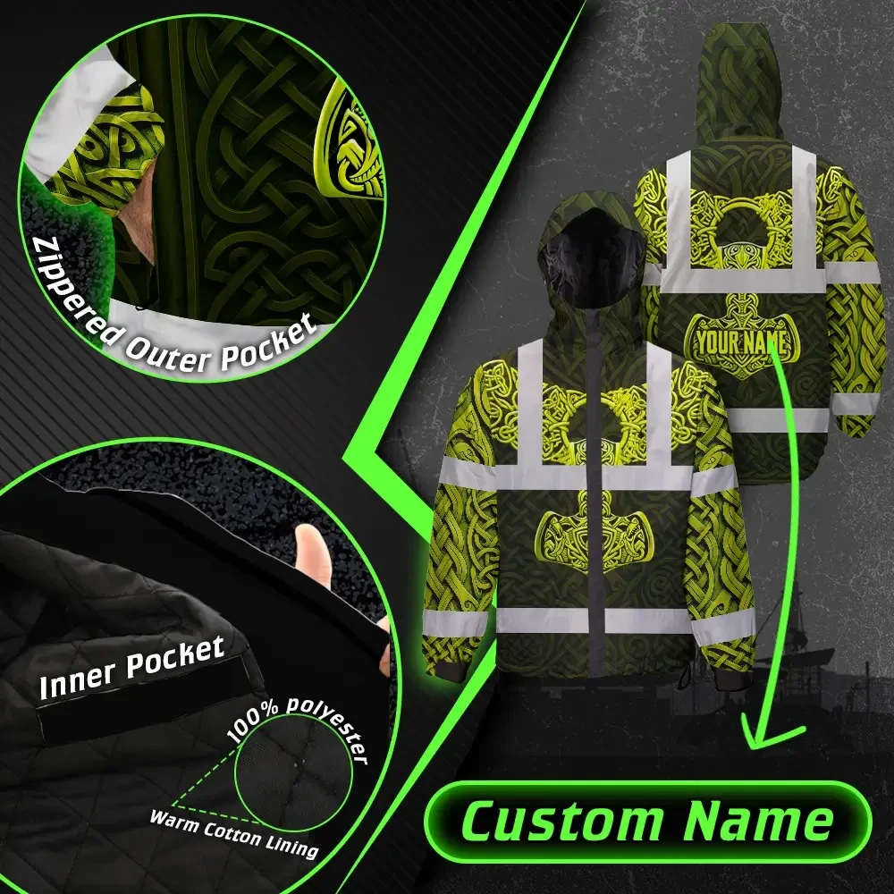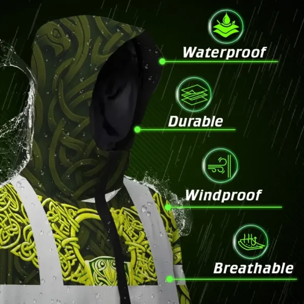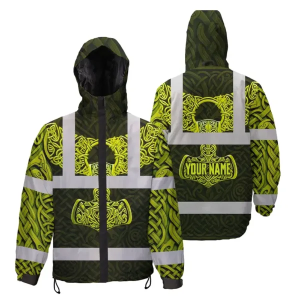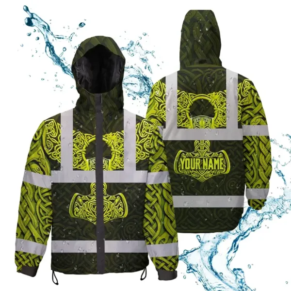 Hi Vis Jacket Waterproof Reflective Tapes Black Lime Neon Viking Custom Name Safety Workwear For Workers, Runners, Cyclists