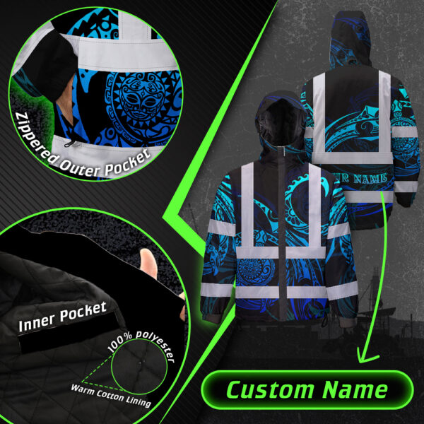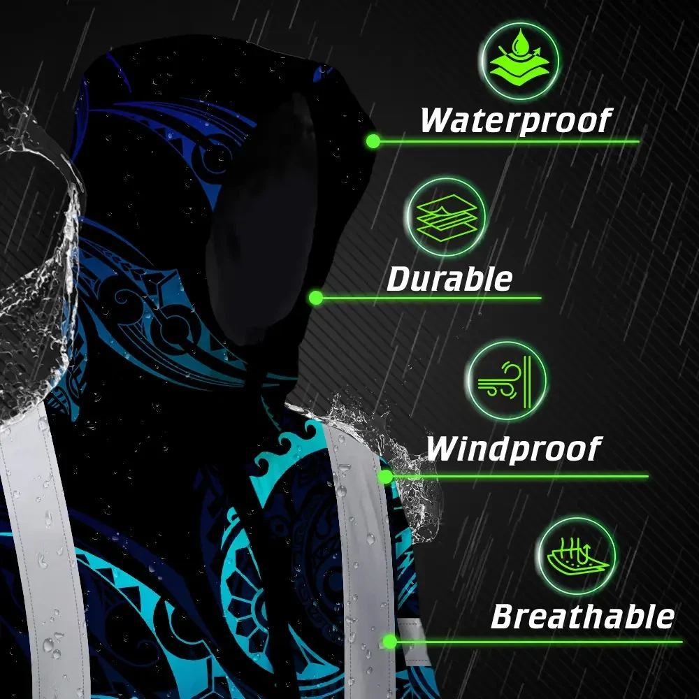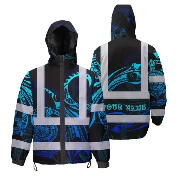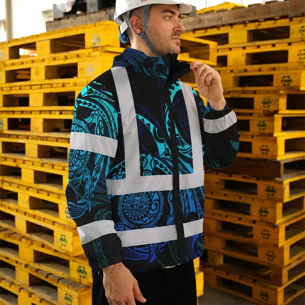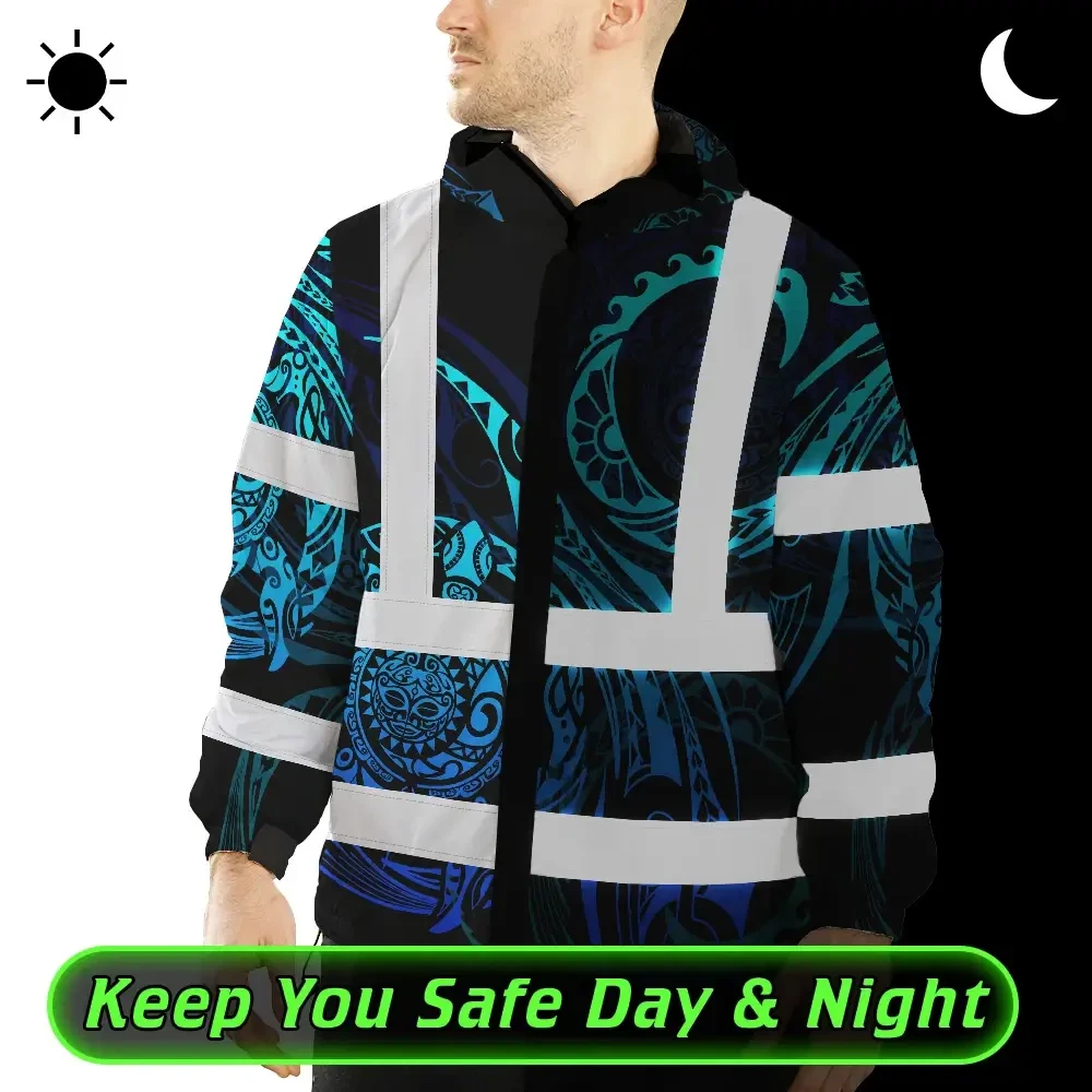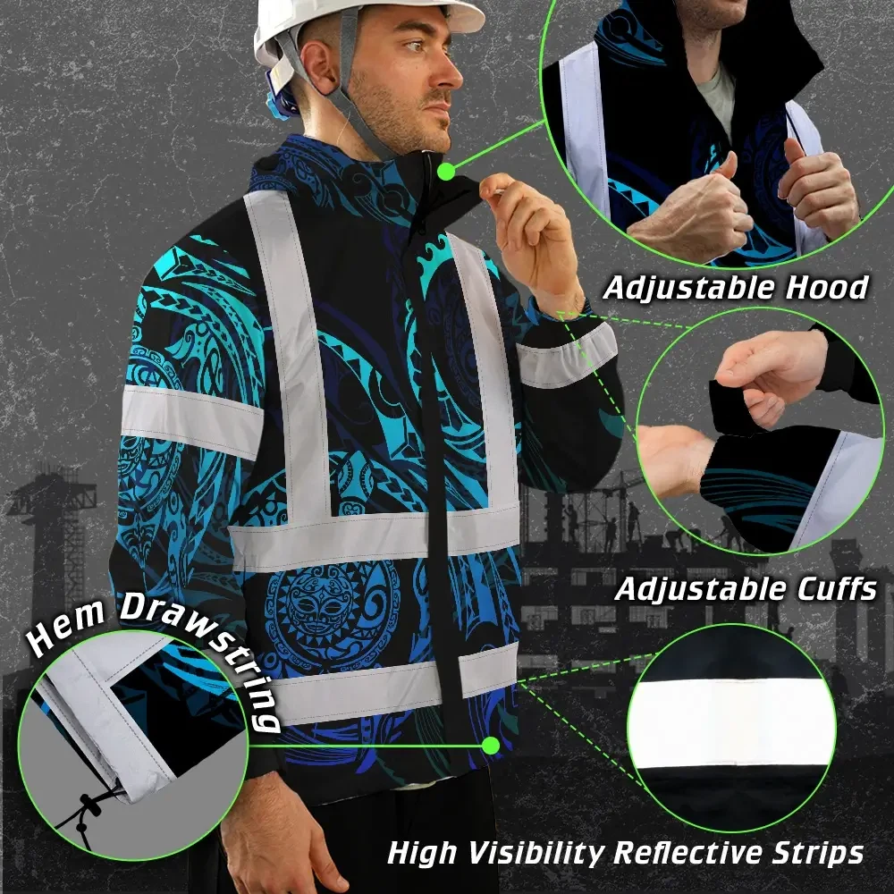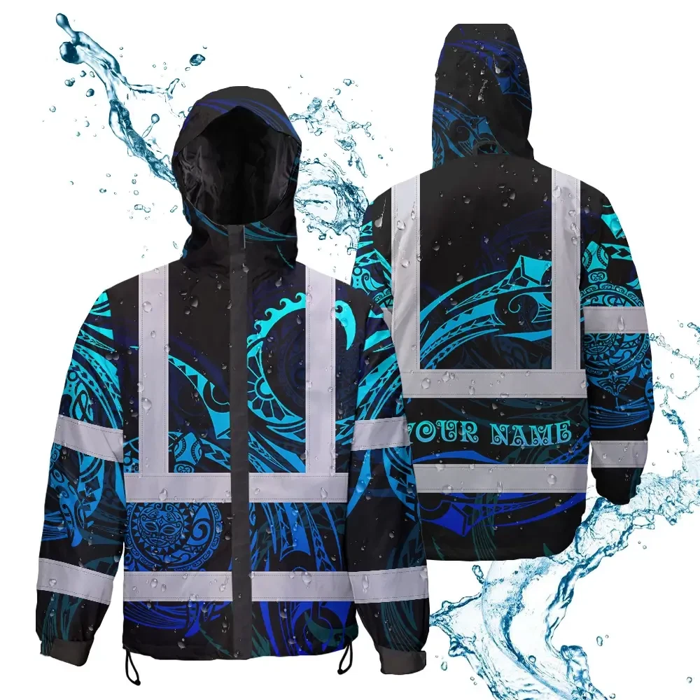 Hi Vis Jacket Waterproof Reflective Tapes Gradient Turtle Hawaiian Polynesian Tribal Custom Name Safety Workwear For Workers, Truckers, Operators