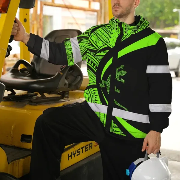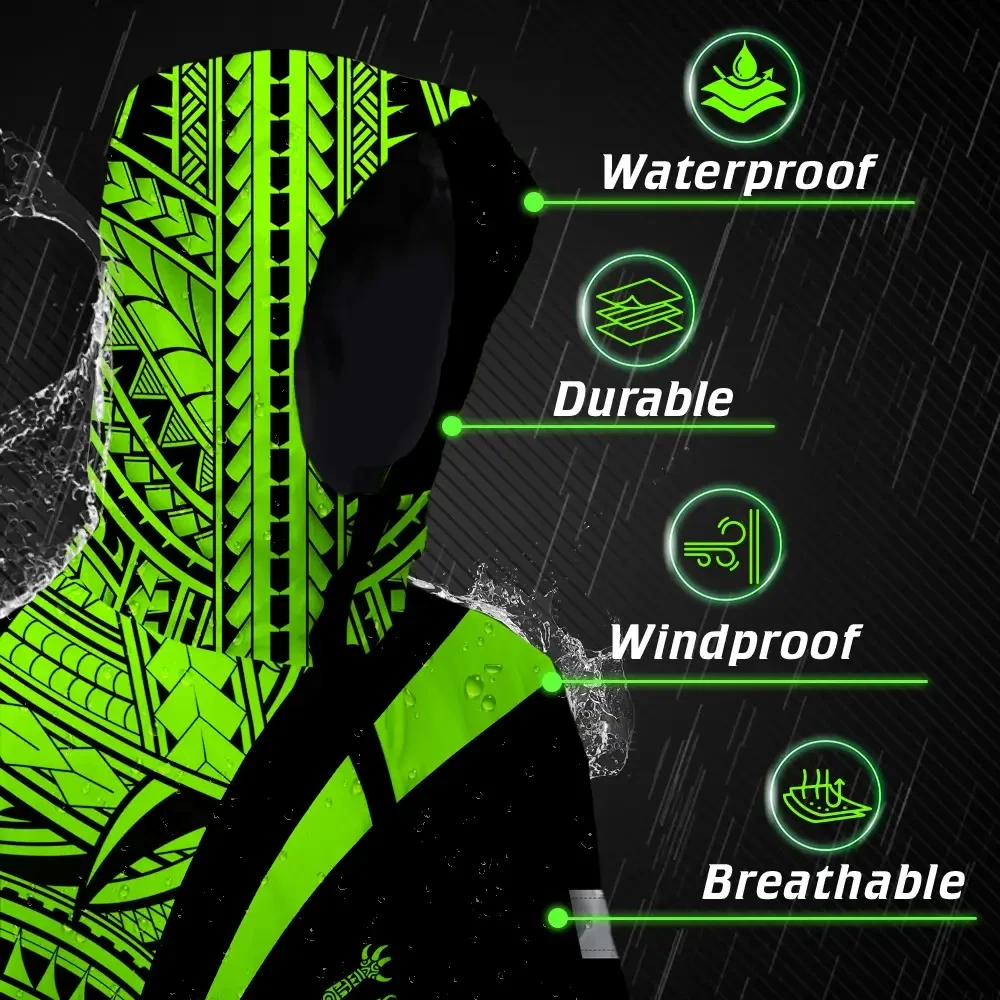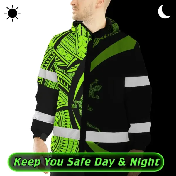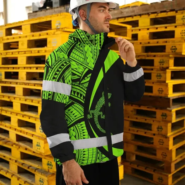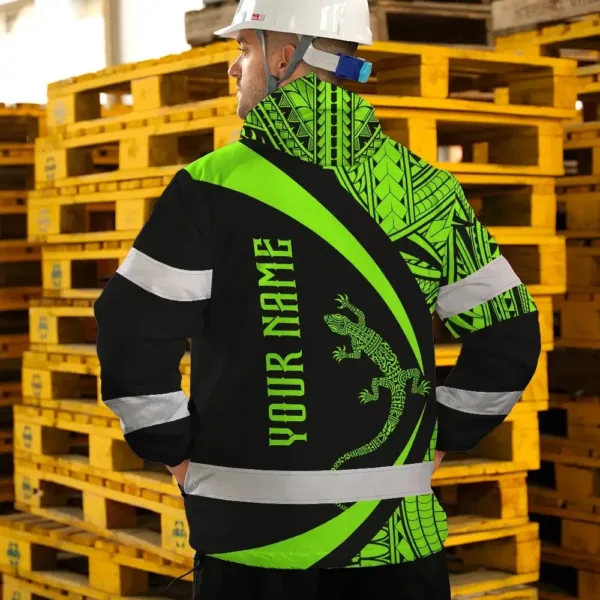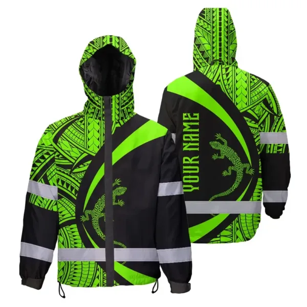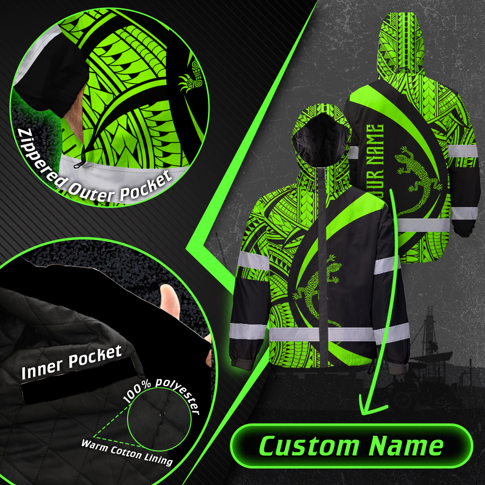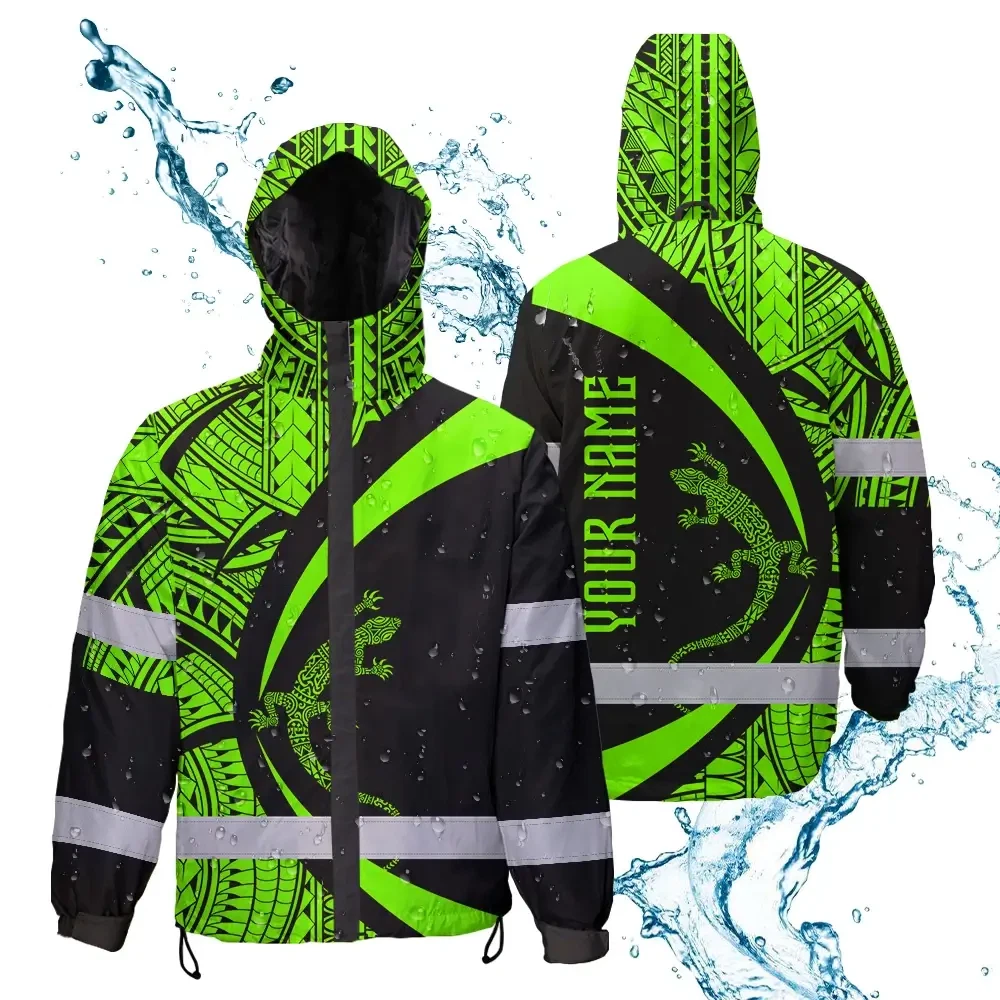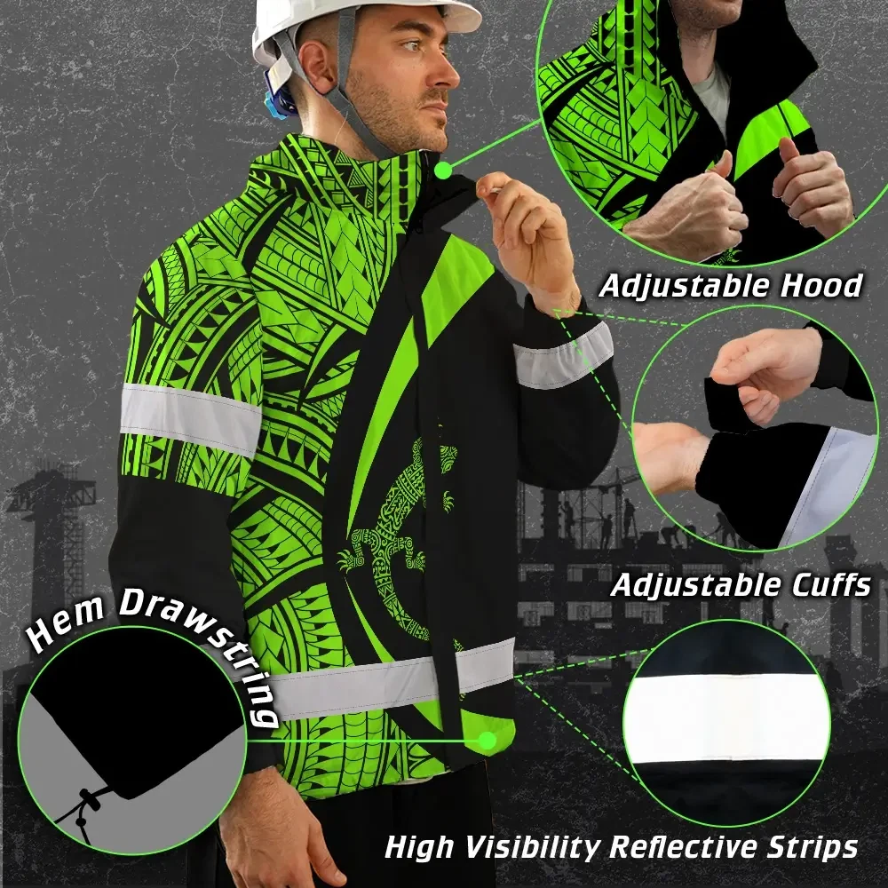 Hi Vis Jacket Waterproof Reflective Tapes Green Neon Hawaii Custom Name Safety Workwear For Workers, Truckers, Operators