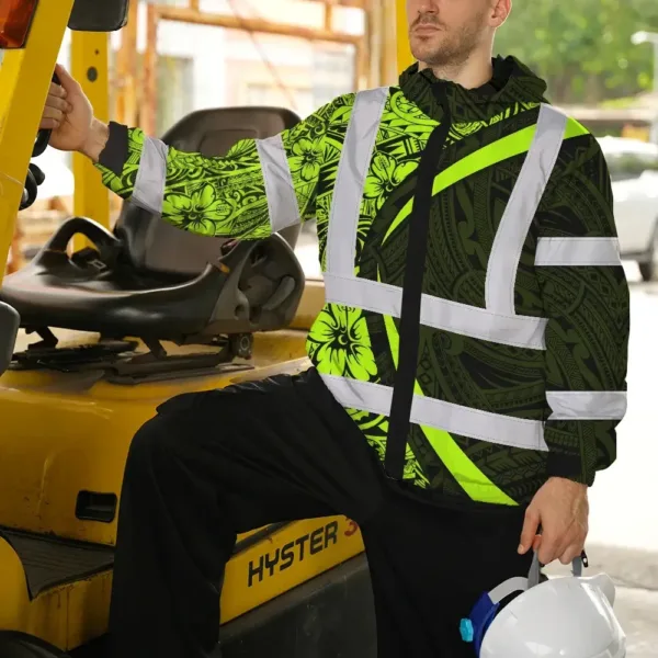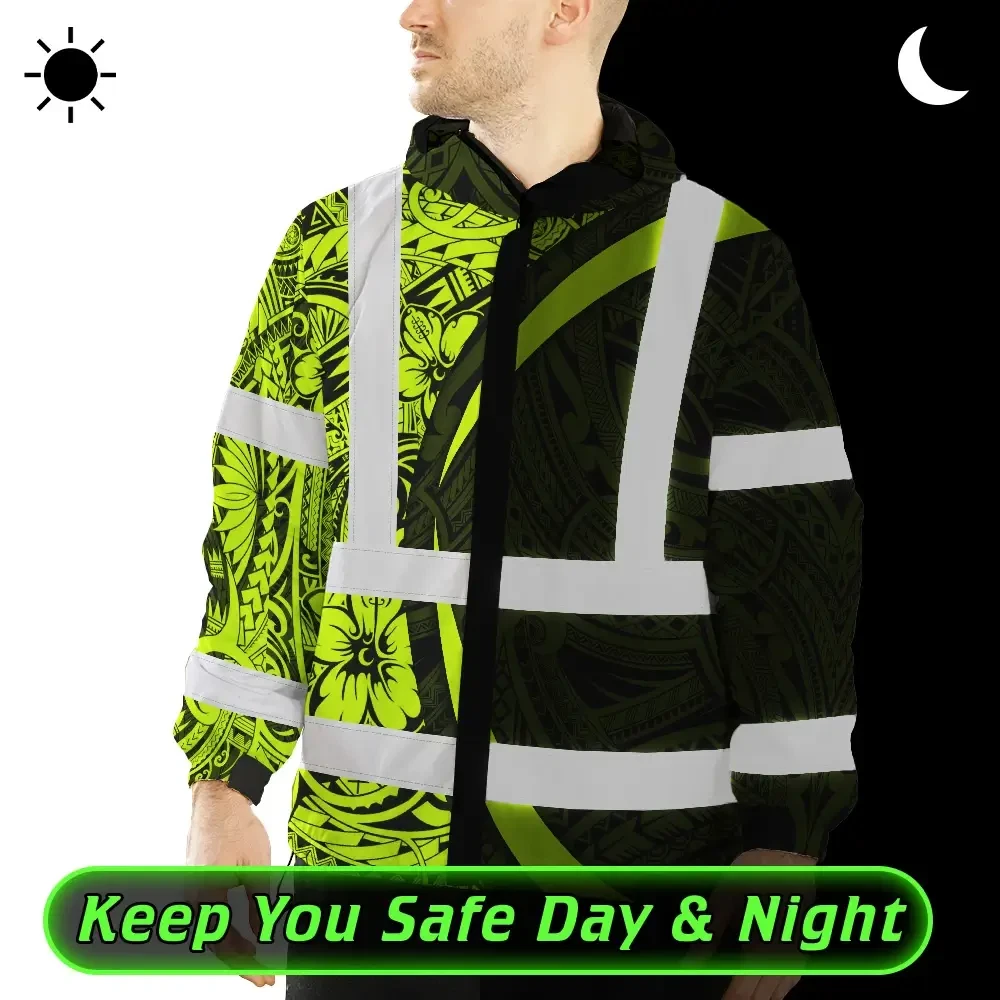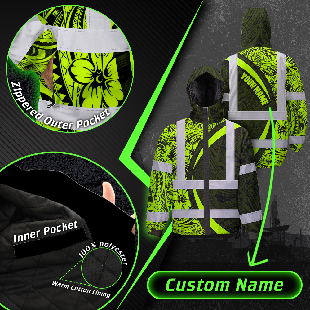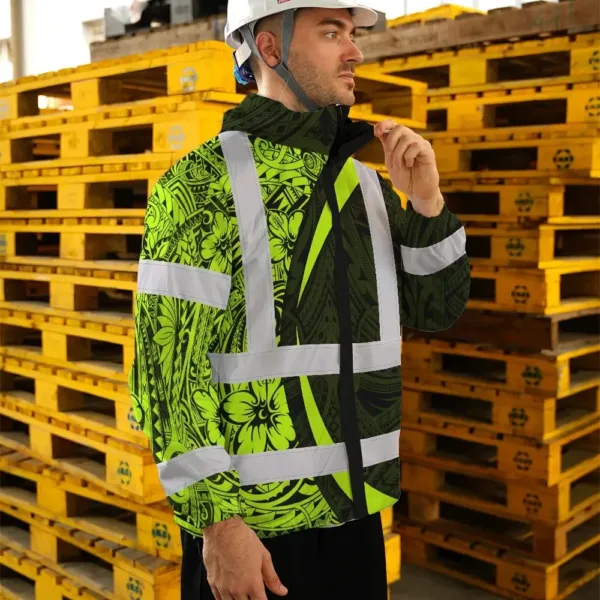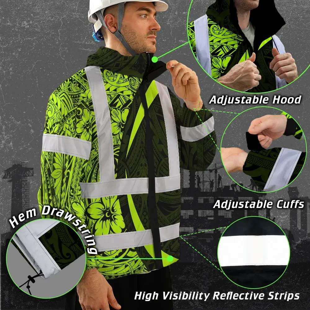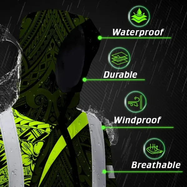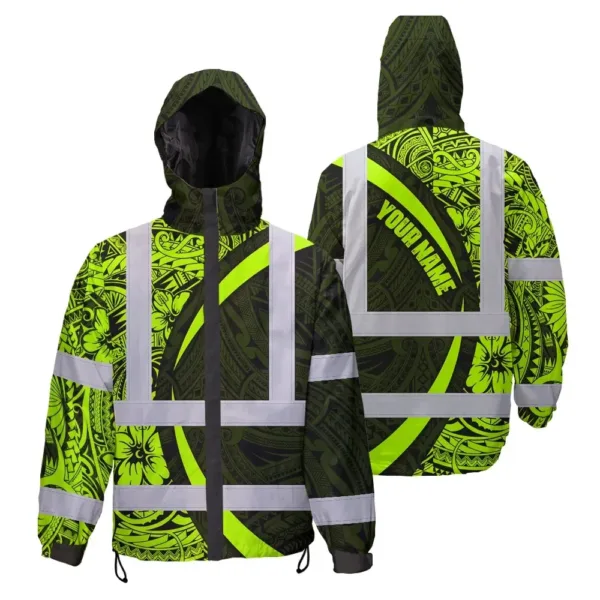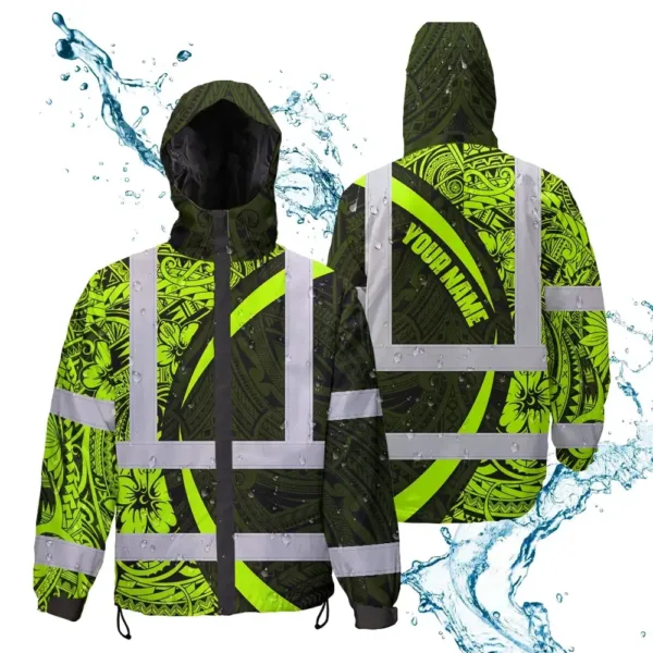 Hi Vis Jacket Waterproof Reflective Tapes Hawaiian Polynesian Tribal Custom Name Safety Workwear For Workers, Truckers, Operators