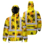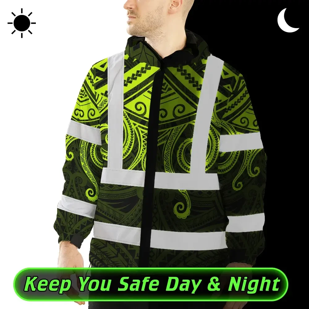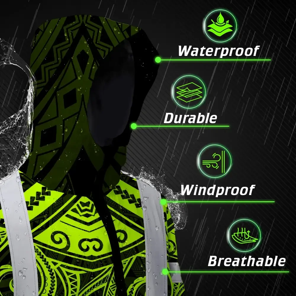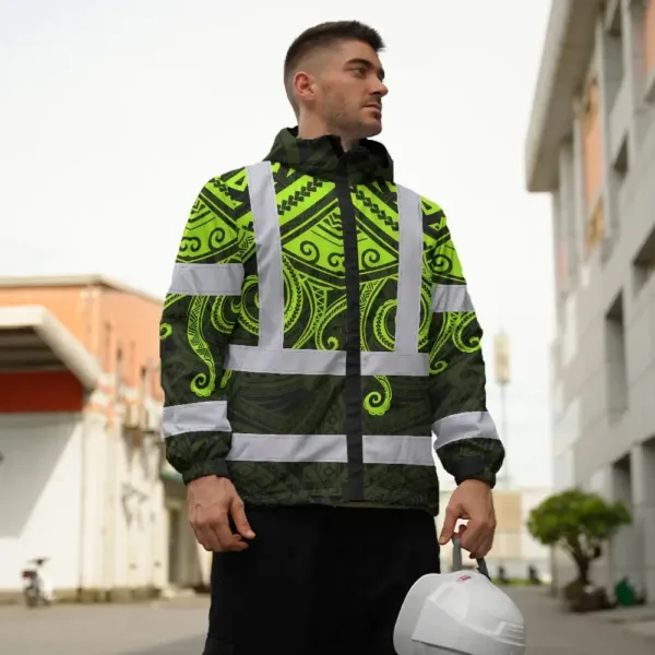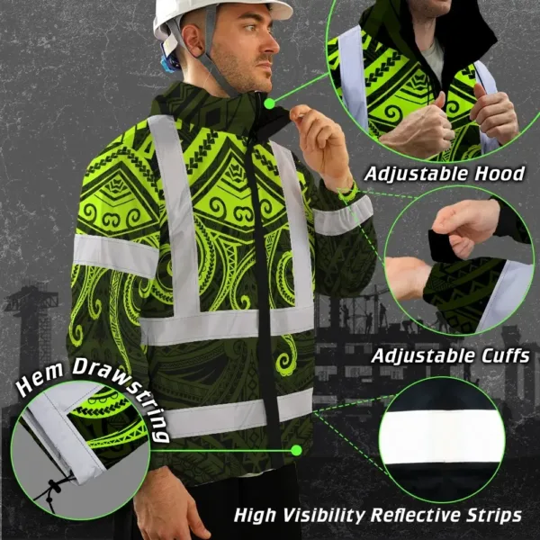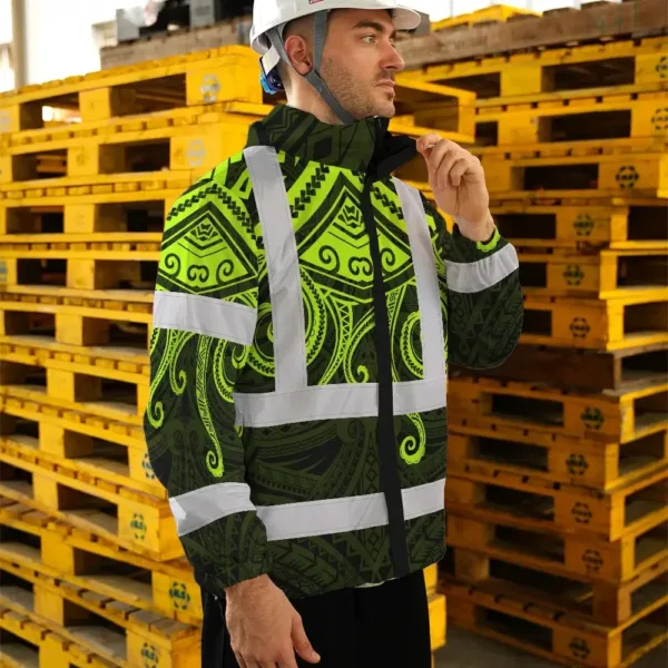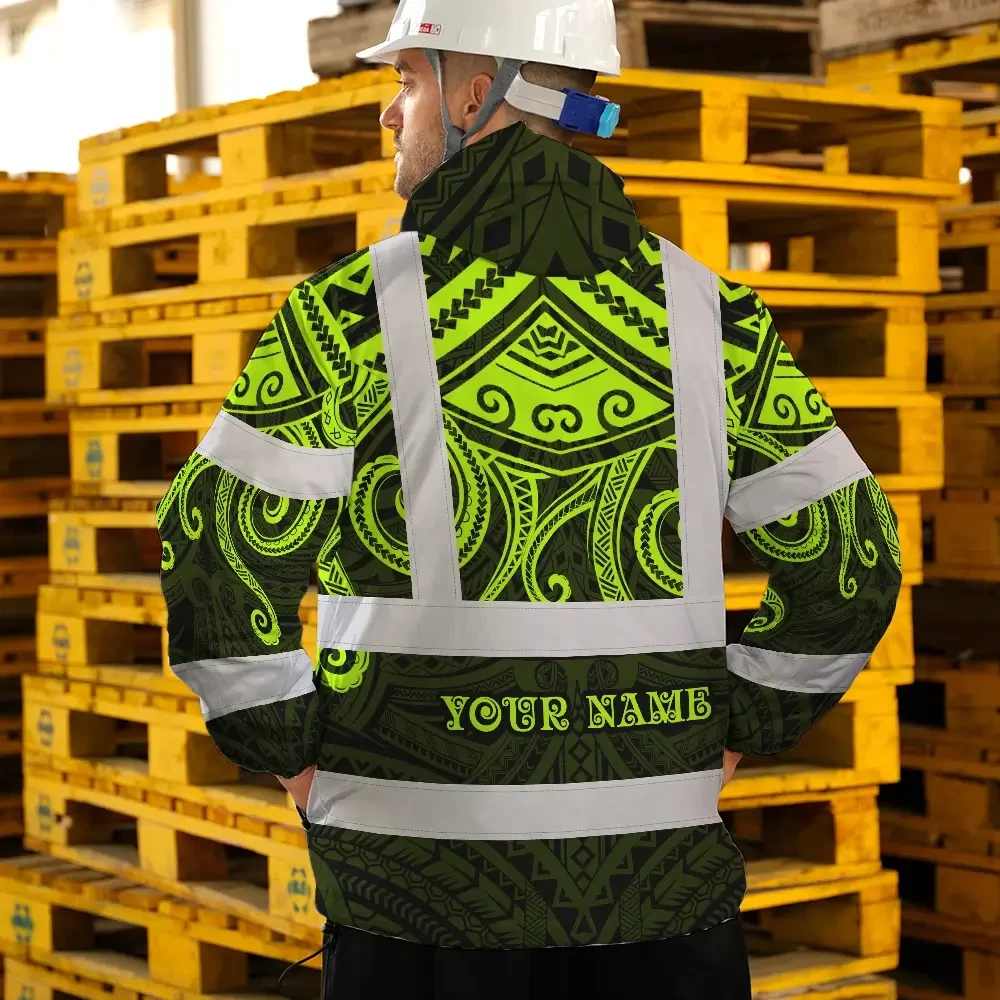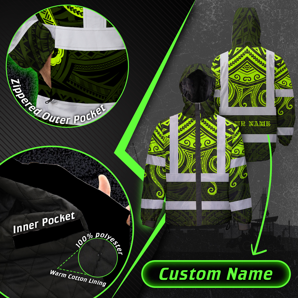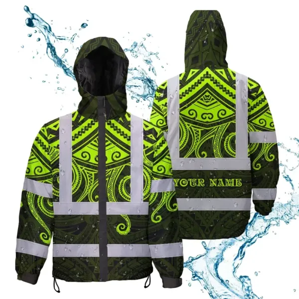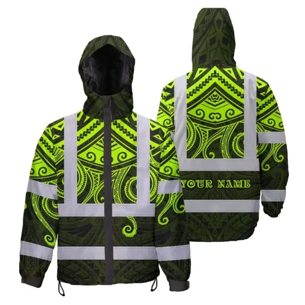 Hi Vis Jacket Waterproof Reflective Tapes Octopus Hawaiian Polynesian Tribal Custom Name Safety Workwear For Workers, Truckers, Operators