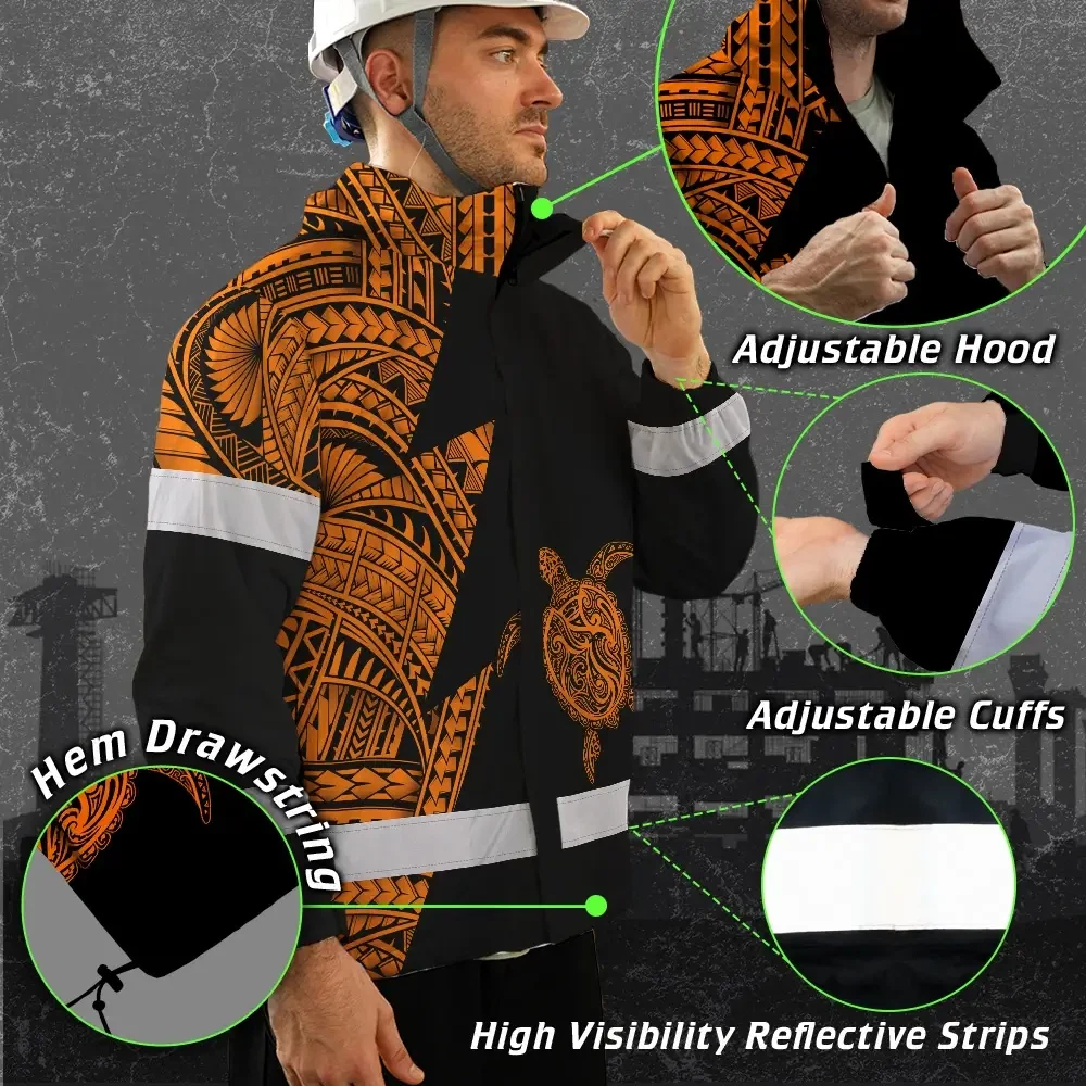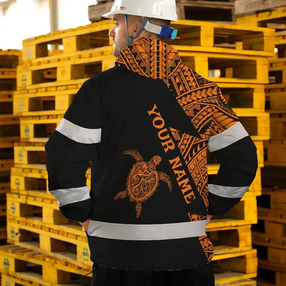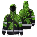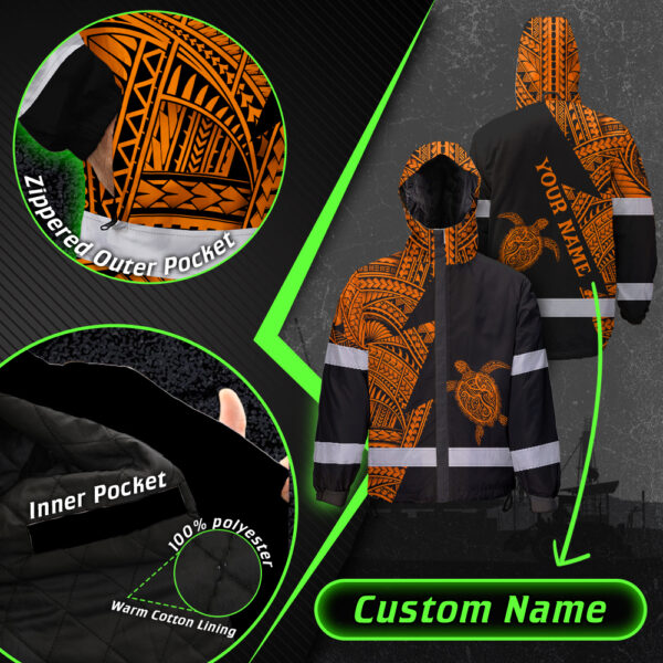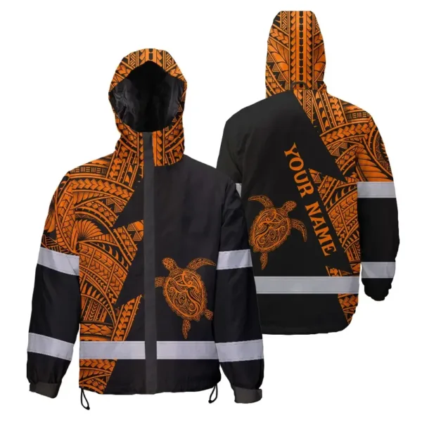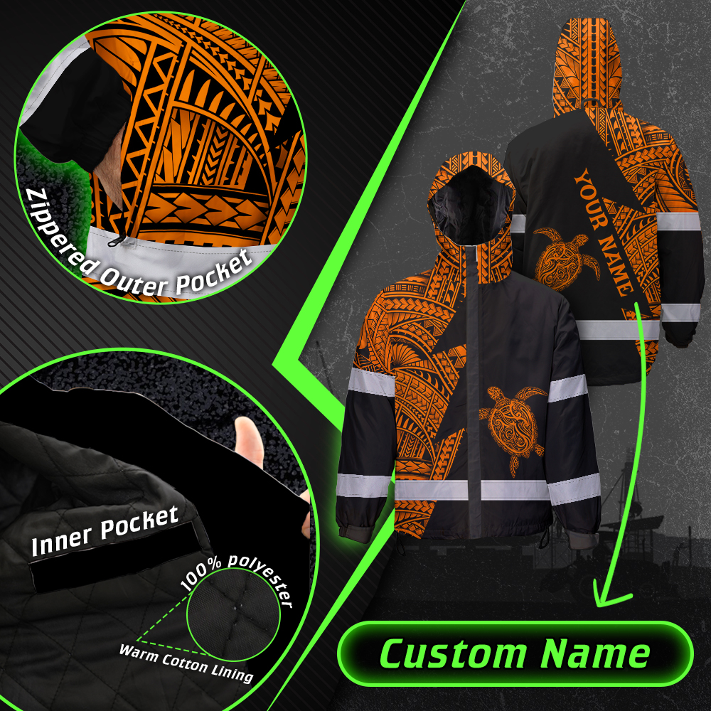 Hi Vis Jacket Waterproof Reflective Tapes Orange Neon Turtle Hawaii Custom Name Safety Workwear For Workers, Truckers, Operators